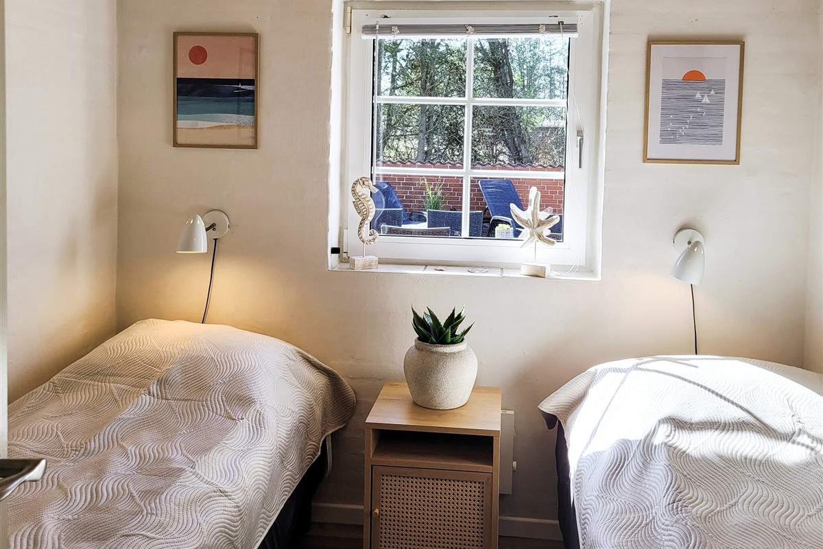Das Ferienhaus ist mit zwei separaten Schlafbereichen mit je drei Schlafzimmern und einem dazugehörigen Bad eingerichtet. Insgesamt verfügen vier der Schlafzimmer über ein Doppelbett sowie Flachbildfernseher an der Wand, zudem zwei Schlafzimmer mit je zwei Einzelbetten und Flachbildfernseher. In allen Zimmern ist Holzfußboden verlegt.