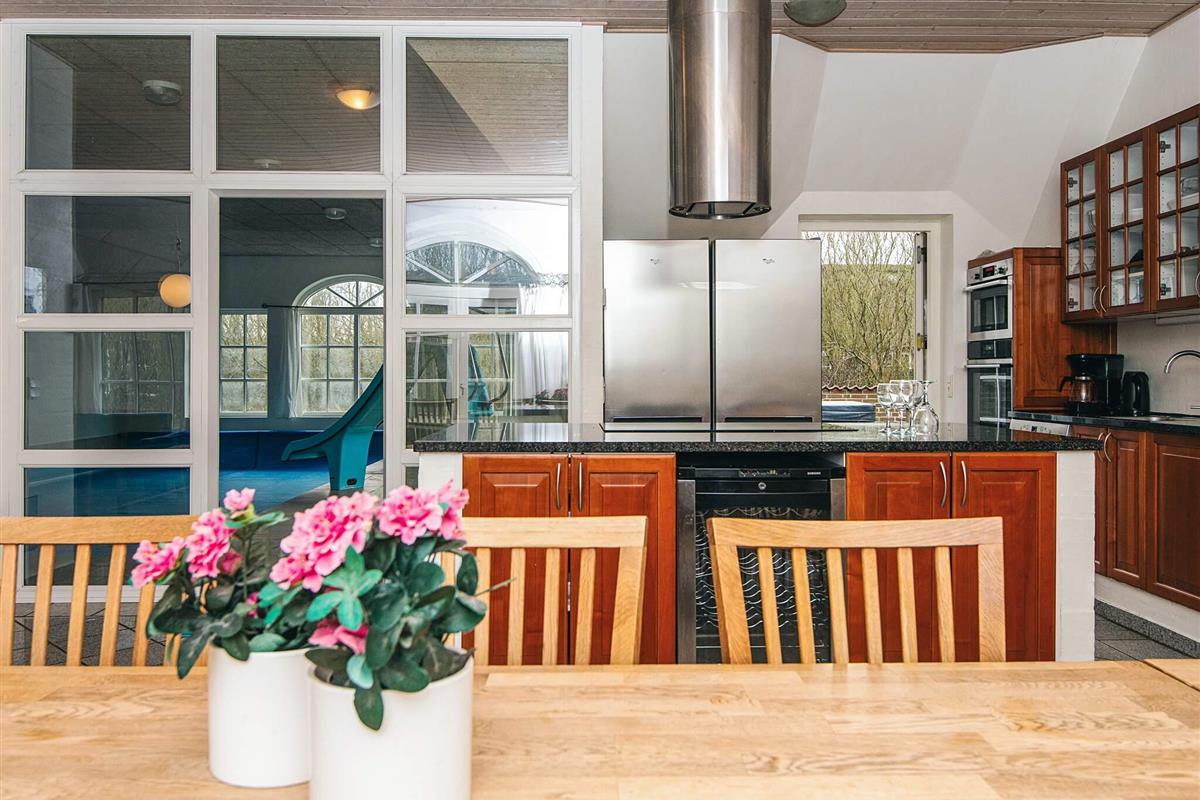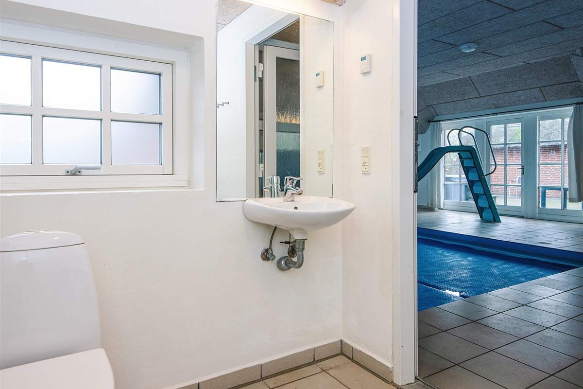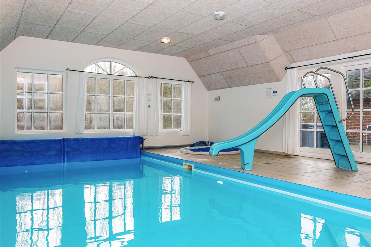 Das 2009 erbaute Haus liegt in einem erschlossenen Ferienhausgebiet mit Fußwegen zur etwa 2 km entfernten Nordsee. In diesem Poolhaus gibt es 3 Badezimmer mit Toilette, Waschbecken, Dusche und Fußbodenheizung. Eine Wärmepumpe und der gemütliche Pelletofen beheizen das Haus. Im Luxushaus gibt es 18 Schlafplätze: 4 Zimmer mit Doppelbett, 2 Zimmer mit je 4 Kojen in Etagenbetten, 1 Zimmer mit 2 Einzelbetten. Max. 2 Haustiere erlaubt. Im Haus gibt es keine TV-Bezahlsender.