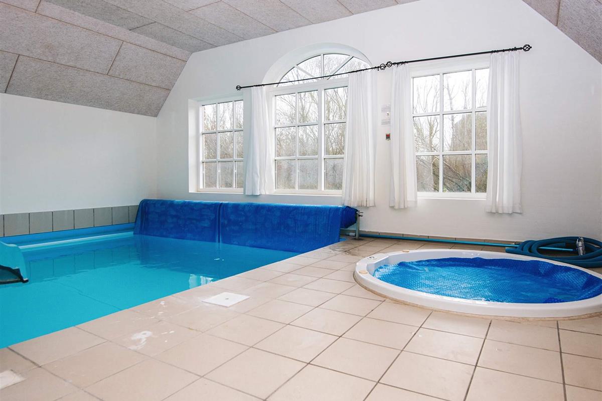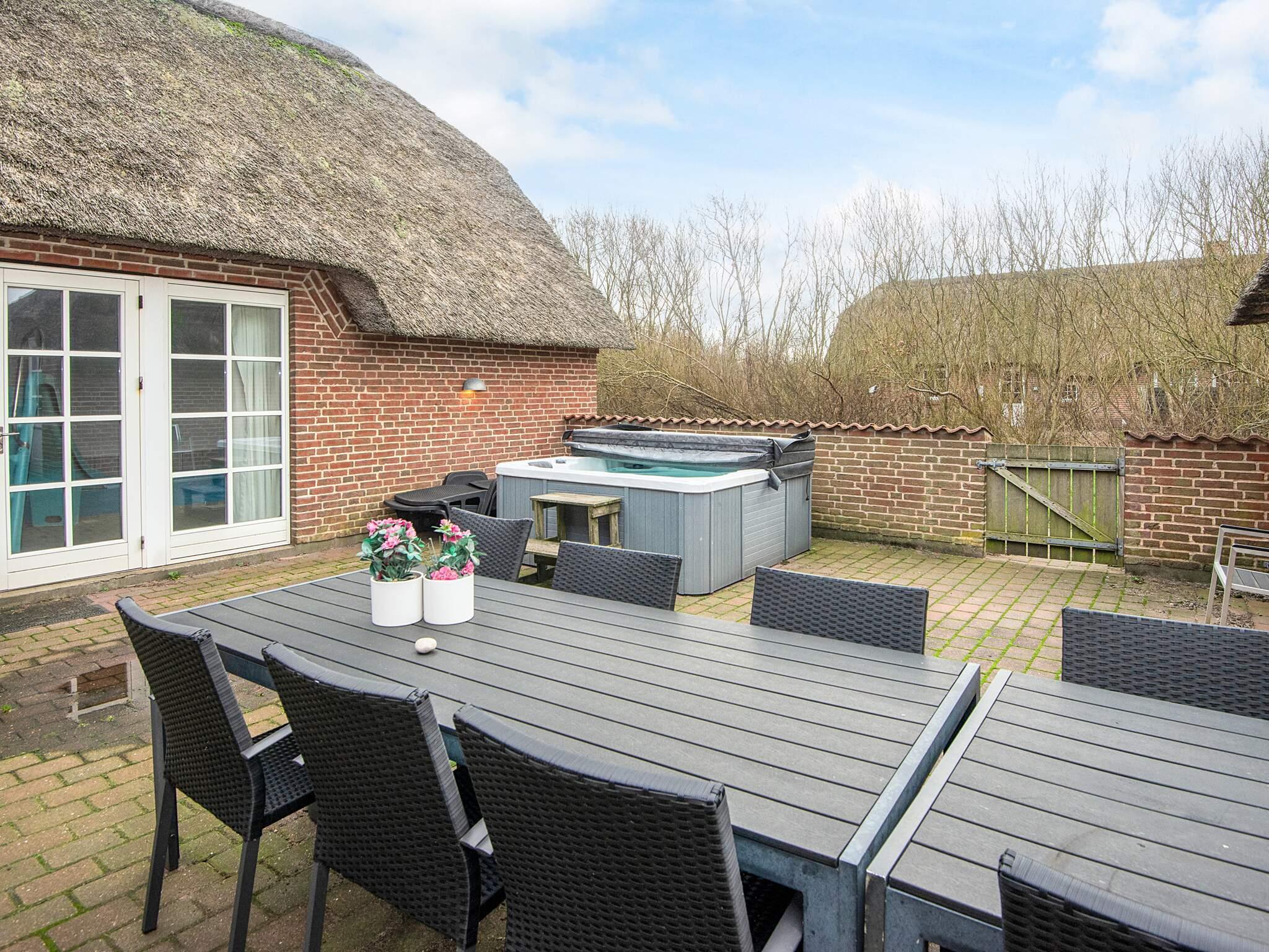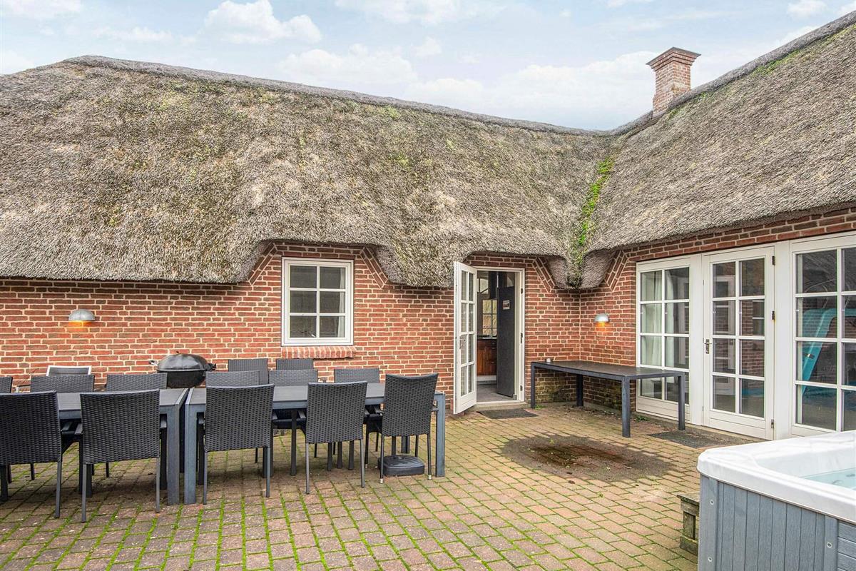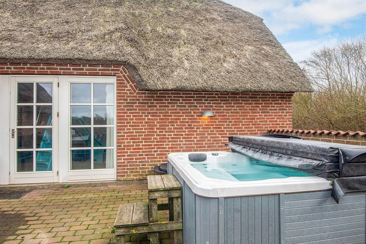 Dieses 250 m² große, reetgedeckte Backsteinhaus liegt auf einem 3.500 m² großen Naturgrundstück, wo es einen Whirlpool im Freien, Schaukeln und einen Sandkasten für die Kinder gibt. Im herrlichen Poolraum kann sich die ganze Familie im großen Pool, auf der Wasserrutsche oder im eingelassenen Whirlpool vergnügen. Und draußen auf der Terrasse befindet sich der große Whirlpool für 7 Personen, den Sie das ganze Jahr über genießen können. Auf der geschlossenen Terrasse gibt es Gartenmöbel und einen Grill.