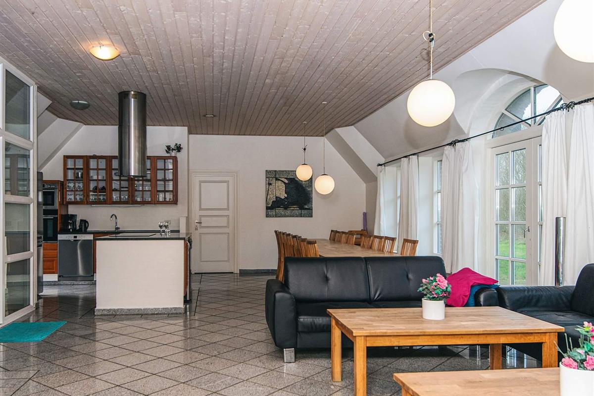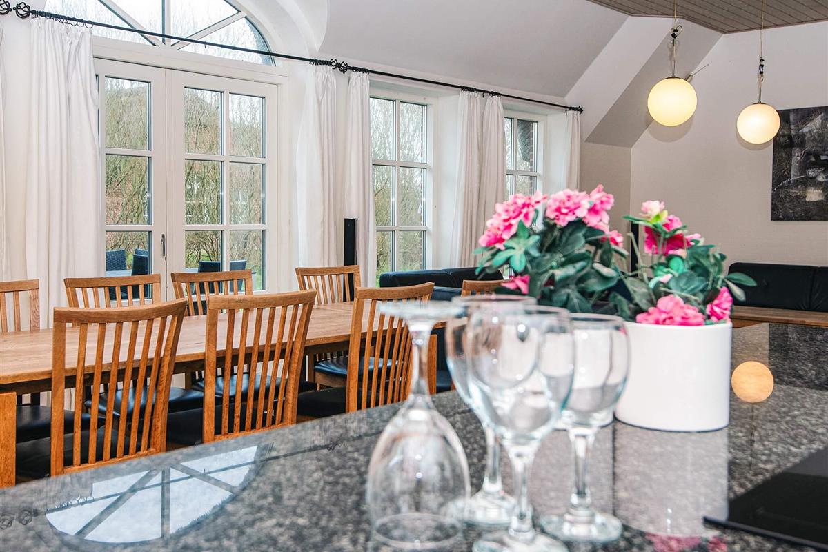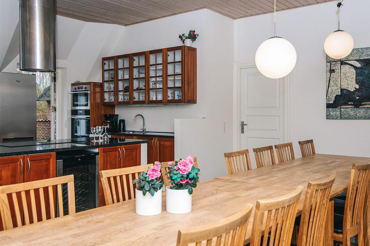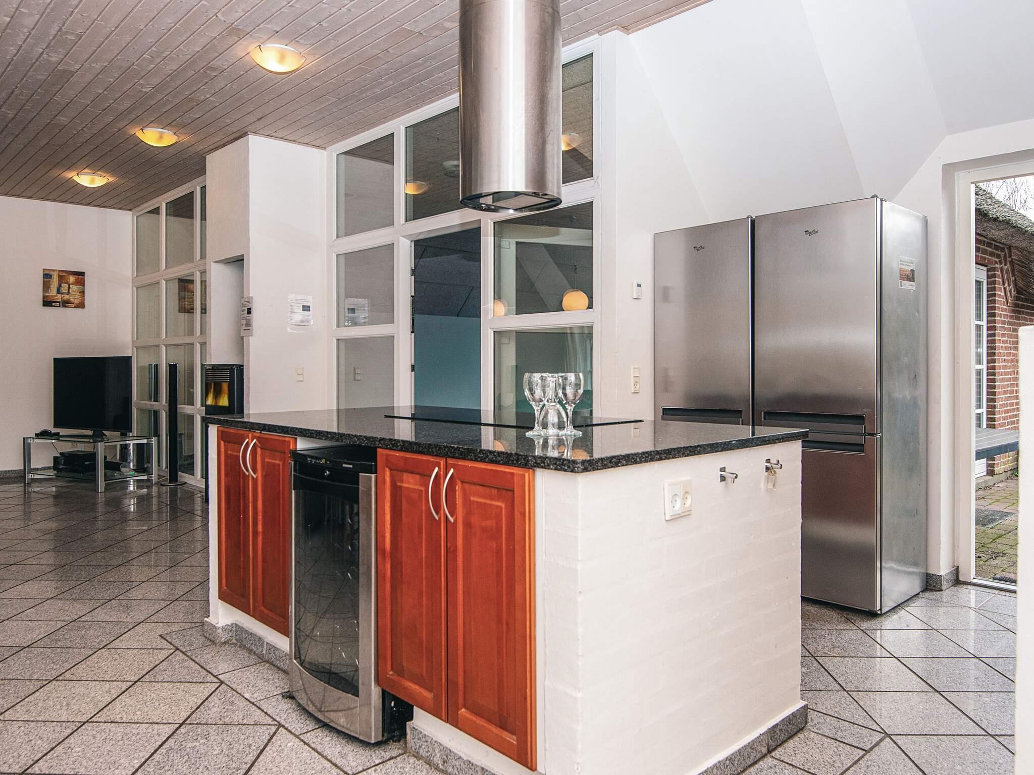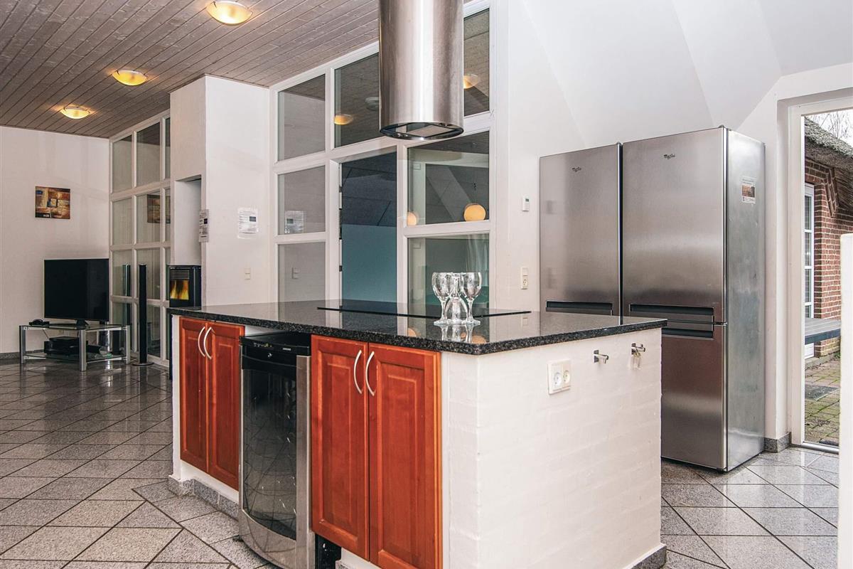 Dieses 250 m² große, reetgedeckte Backsteinhaus liegt auf einem 3.500 m² großen Naturgrundstück, wo es einen Whirlpool im Freien, Schaukeln und einen Sandkasten für die Kinder gibt. Im herrlichen Poolraum kann sich die ganze Familie im großen Pool, auf der Wasserrutsche oder im eingelassenen Whirlpool vergnügen. Und draußen auf der Terrasse befindet sich der große Whirlpool für 7 Personen, den Sie das ganze Jahr über genießen können. Auf der geschlossenen Terrasse gibt es Gartenmöbel und einen Grill.