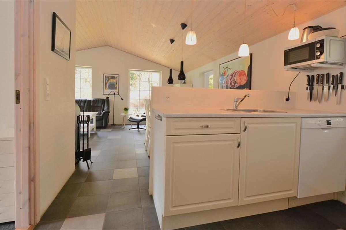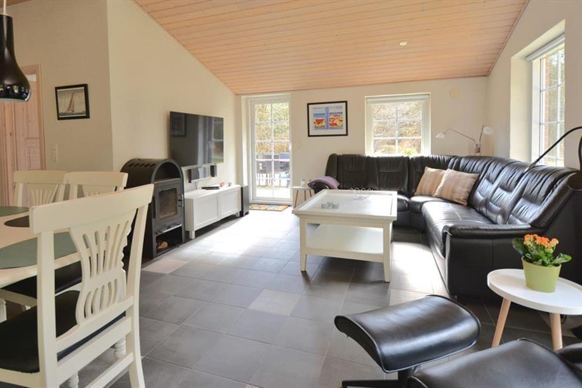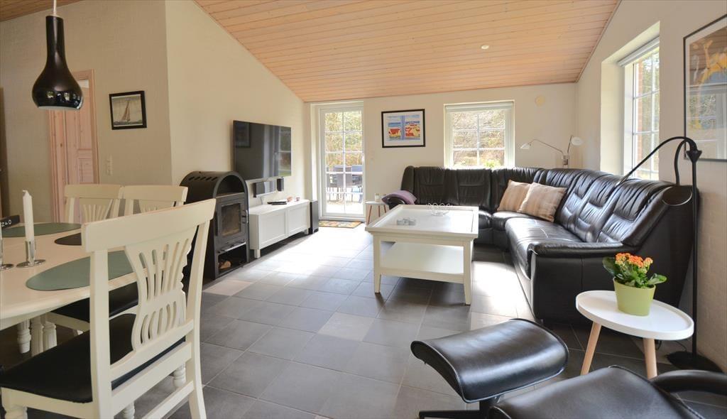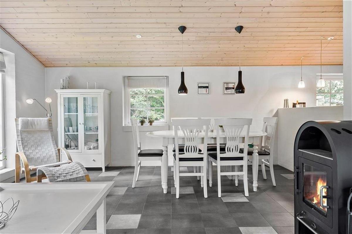 Die helle und einladende Wohnküche ist der natürliche Treffpunkt des Ferienhauses – ein Ort, an dem die ganze Familie zusammen sein kann, auch euer Hund. Hier lebt man im ruhigen Tempo, spielt Karten am Esstisch, genießt die Wärme des Holzofens oder unterhält sich beim Kochen, während sich der Duft des Abendessens im Raum verbreitet. Die offene Gestaltung schafft viel Platz und macht es einfach, gemeinsam Zeit zu verbringen – egal, ob man spielt, liest oder einfach nur entspannt. Das Hundebett oder die Decke findet leicht einen Platz in der Ecke, wo der Hund alles beobachten – und vielleicht mitten in der gemütlichen Atmosphäre ein Nickerchen machen kann. In den Schlafzimmern des Hauses kann man sich zurückziehen und zur Ruhe kommen, ohne sich von der Familie entfernt zu fühlen. Hier gibt es Raum für Nähe und Gemütlichkeit, wo sich Kinder, Erwachsene und der Hund gleichermaßen in Ferienstimmung fühlen können – ganz gleich, ob es der erste oder der fünfte Besuch im Haus ist.