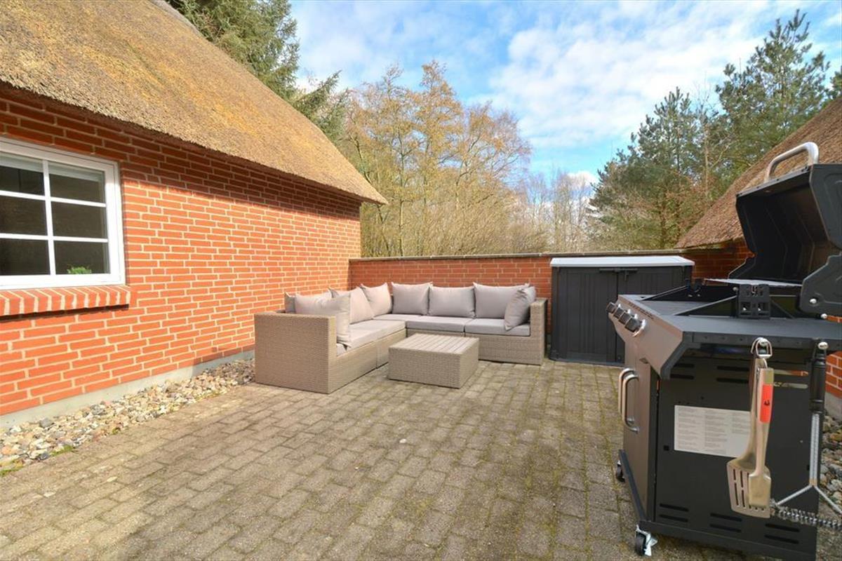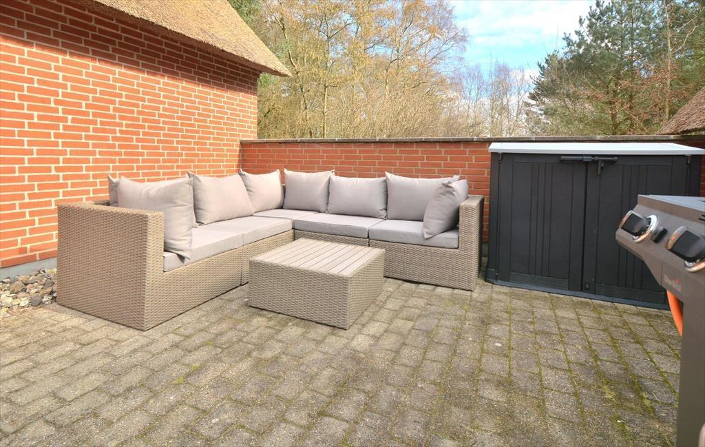 Draußen erwartet euch ein großes, ungestörtes Naturgrundstück, umgeben von Bäumen, die sowohl Windschutz als auch Privatsphäre bieten. Der Himmel ist weit, und es gibt viel Platz, damit sich Kinder und Hunde frei und sicher bewegen können. Die offene Rasenfläche lädt zum Spielen ein, während schattige Plätze unter den Bäumen Gelegenheit für eine Pause in der Mittagszeit bieten. Während die Kinder Ball spielen oder die Umgebung erkunden, kann der Hund mitlaufen, herumschnüffeln und Teil des Spiels sein – oder einfach im Gras zu Füßen der Familie zur Ruhe kommen. Die große Holzterrasse bietet Raum für entspannte Stunden in der Sonne, gemeinsame Mahlzeiten unter freiem Himmel und lange Sommerabende mit viel Zeit. Ihr könnt lange sitzen und die letzten Sonnenstrahlen des Tages genießen, während langsam die Geräusche der Natur übernehmen. Es gibt keine nahen Nachbarn und keine Störungen – nur euch, die Stille und einen Ort, an dem die ganze Familie frei atmen, sie selbst sein und einfach zusammen sein kann – auch mit eurem Hund an eurer Seite.