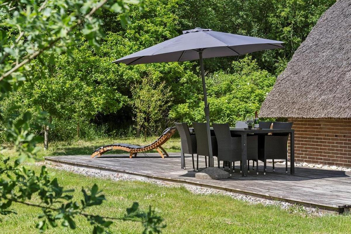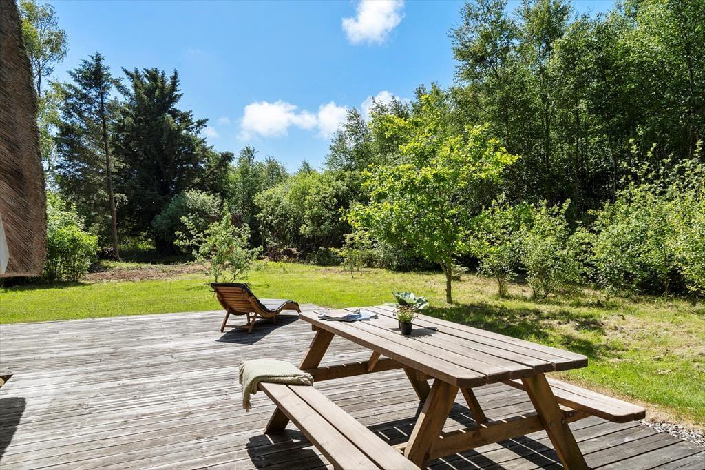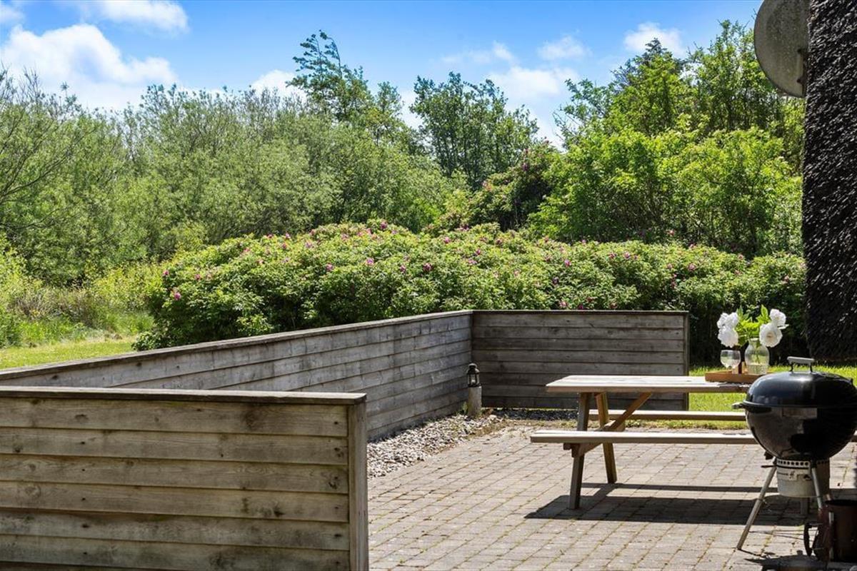 An sonnigen Sommertagen solltest du bereits früh am Morgen aufstehen und dich hinaus auf die gen Westen weisende Terrasse begeben. Mit einem frischen Kaffee in den Händen macht du es dir auf einem der Gartenstühle gemütlich und schaust dabei zu, wie die Sonne langsam aufgeht. Du genießt dabei die unglaublich friedvolle Atmosphäre, viel frische Seeluft und das liebliche Zwitschern der Vögel. Dein Ferienhaus befindet sich auf einem großen, sehr gut abgeschirmten Grundstück. Lediglich 2 Kilometer trennen dich von der Nordsee. Deine gesamte Familie kann sich auf dem Grundstück bestens entspannen und viele aktive Momente auf dem Rasen genießen. Neben der Grasfläche prägen Bäume und Heckenrosen das Naturgrundstück. Letztgenannte sorgen mit ihren hübschen, wunderbar duftenden Blüten im Sommer und ihren leuchtend roten Früchten im Herbst ringsum für bezaubernde Farbtupfer.