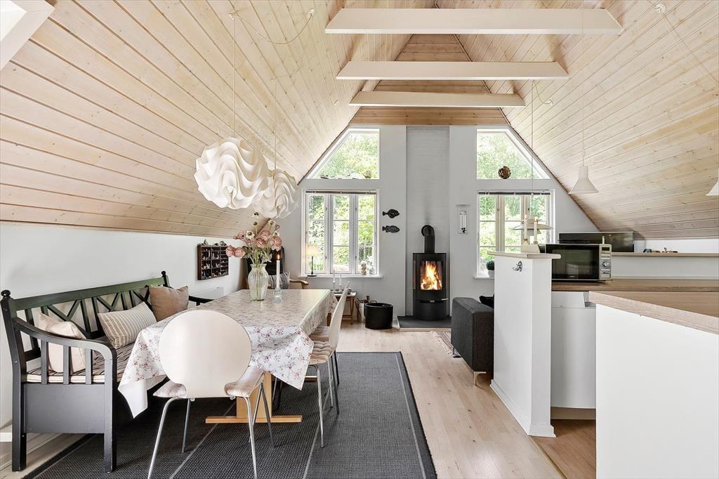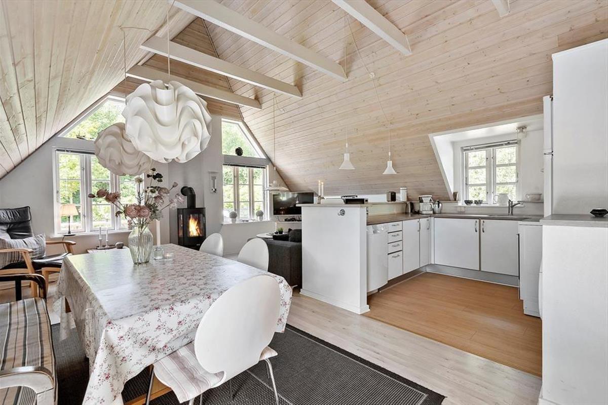 Sobald du dieses ansprechende Ferienhaus betrittst, spürst du dessen schöne, klassische Ferienhausatmosphäre. Das Reetdachhaus ist angenehm geräumig und bietet dir vielfältige Möglichkeiten, gemütliche und gesellige Stunden im Kreise deiner Lieben zu genießen. Dank des offenen Grundrisses könnt ihr euch unterhalten, selbst wenn ihr gerade verschiedenen Beschäftigungen nachgeht, also du beispielweise in der Küche kulinarische Hochgenüsse zauberst und der Rest deiner Familie am Esstisch oder in der Polstersitzgruppe vergnügte Gesellschaftsspiele spielt. Herrlich entspannte Momenten genießt ihr gemeinsam, wenn die Sonne langsam untergeht und den Wohnraum in unterschiedlichste Orangerote Farbtöne taucht. Nach Einbruch der Dunkelheit sorgt der knisternde Kaminofen für ein Maximum an Stimmung und Gemütlichkeit - die perfekte Zeit für ein gemütliches Abendessen oder eine ruhige Stunde mit einem guten Buch.