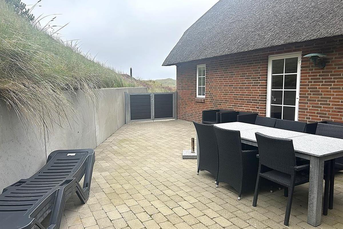 An das Urlaubsdomizil schmiegen sich zwei schöne Terrassen an, die beide durch die Dünen angenehm vor Wind geschützt sind. Gartenmöbel, Liegestühle und ein Grill stehen für Sie bereit. Das Haus befindet sich mitten in den Dünen. Das Grundstück ist daher sehr hügelig.