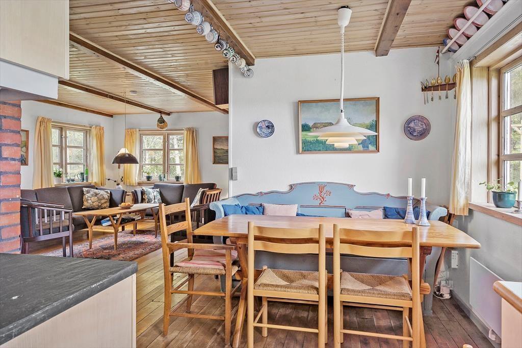 Freuen Sie sich auf dieses schöne, gemütliche und überaus stimmungsvolle Reetdachhaus. Die helle und freundliche Einrichtung mit ansprechenden und guten Möbeln beschränkt sich nicht nur auf den Wohnraum, sondern setzt sich auch in den Schlafräumen fort. Im Wohnraum sorgt ein behaglich wärmender Kaminofen im Winter und an kühlen Sommerabenden für ein Maximum an echter dänischer Ferienhausgemütlichkeit. Die gut ausgestattete Küche ist offen mit dem Wohnraum verbunden. Der Essbereich ist eingerichtet mit einer gemütlichen, antiken Sitzbank, auf der Sie sich sicherlich auch während der Zubereitung der Mahlzeiten schon gerne einmal niederlassen. Vom Wohnraum können Sie zudem auch direkt hinaus ins Grüne treten. Alle drei vorhandenen Schlafräume bieten Ihnen Schrankfläche. Das Ferienhaus beinhaltet ein gutes Badezimmer mit einer Dusche.