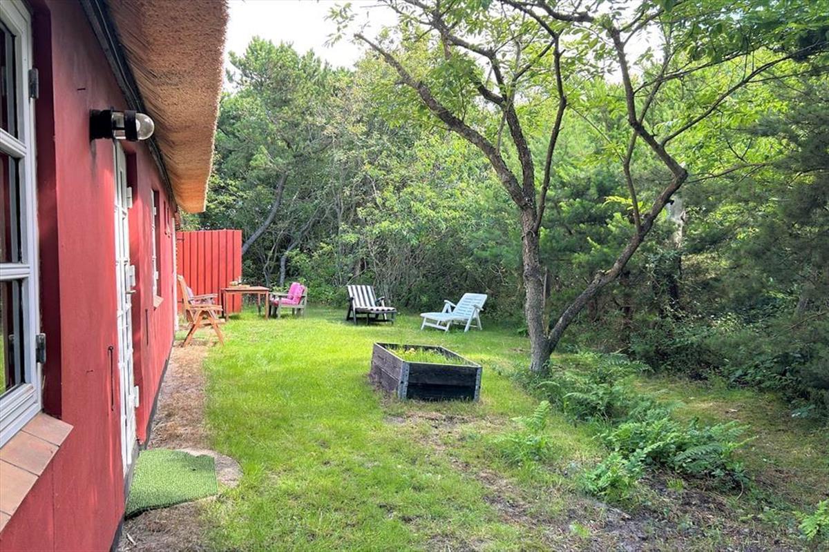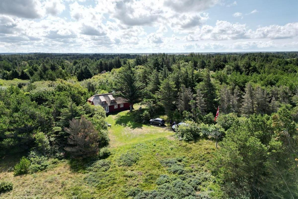 Dieses Haus steht auf einem 16.000 m² großen Naturgrundstück am Ende eines Stichwegs. Sie genießen eine herrliche Aussicht auf die Dünen hinter denen die mächtige Nordsee rauscht. Lediglich 800 Meter trennen Sie vom Strand an dem Sie sehr schön baden und ausgedehnte Strandspaziergänge unternehmen können. Das Ferienhausgebiet, in dem Sie Ihre Urlaubstage verbringen, zählt zu den schönsten Naturgebieten entlang der dänischen Westküste. Alle Grundstücke, auf denen ausschließlich Reetdachferienhäuser errichtet werden dürfen, sind mindestens 5.000 m² groß, sodass daraus optisch ein wunderschönes Gesamtbild resultiert. Zudem wohnen Sie nicht weit vom Waldgebiet Husby Klitplantage entfernt, in dem es einen Hundewald, einen Badesee, einen tollen Aussichtspunkt und zahlreiche Wander- und Fahrradrouten gibt.
