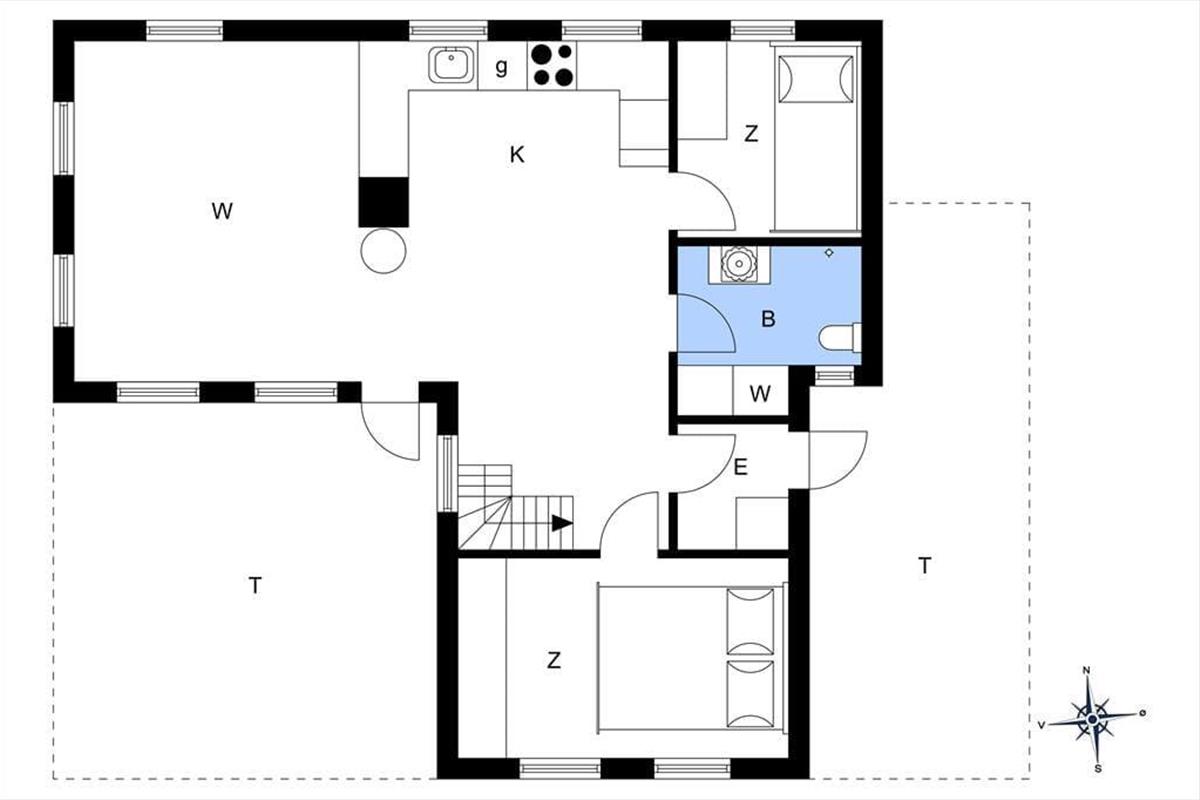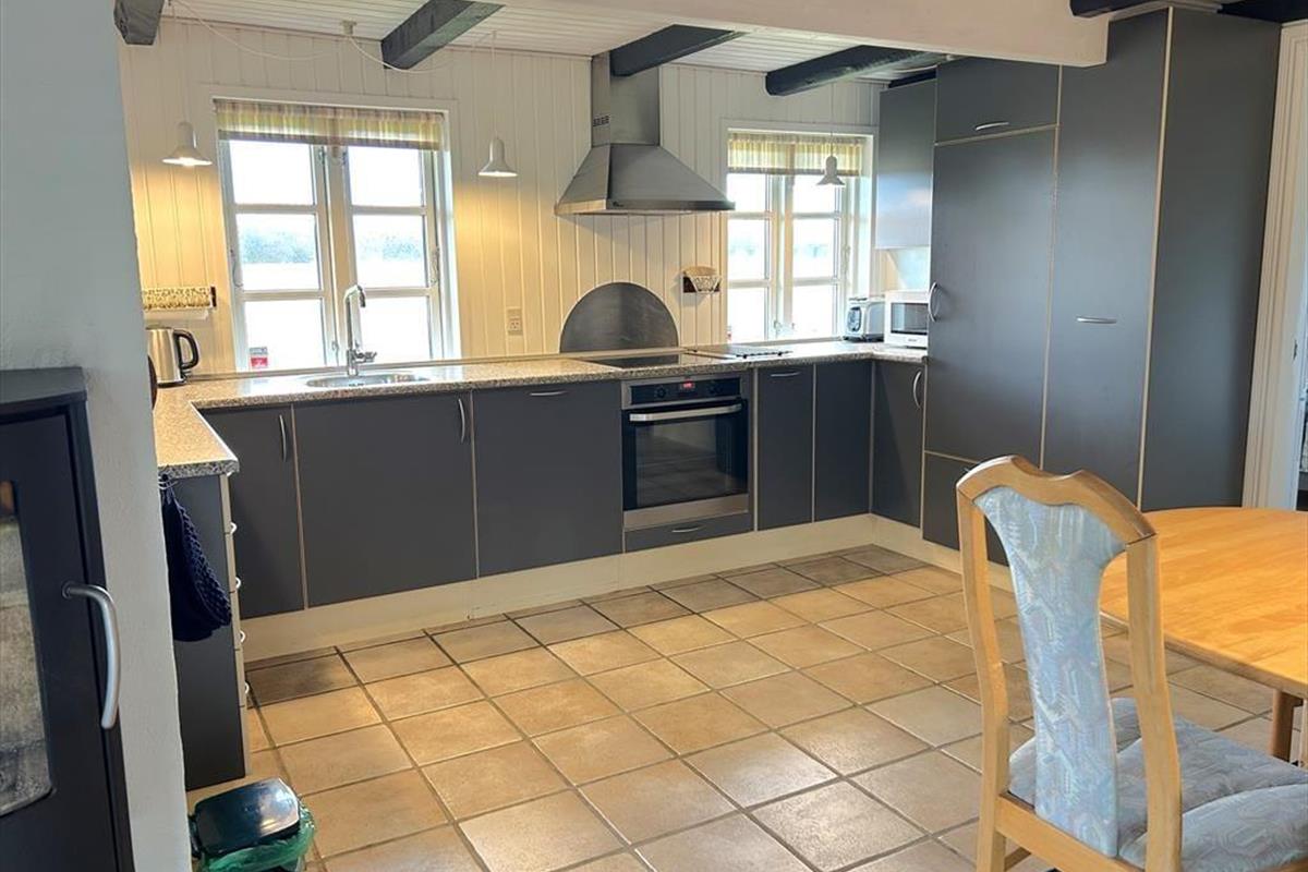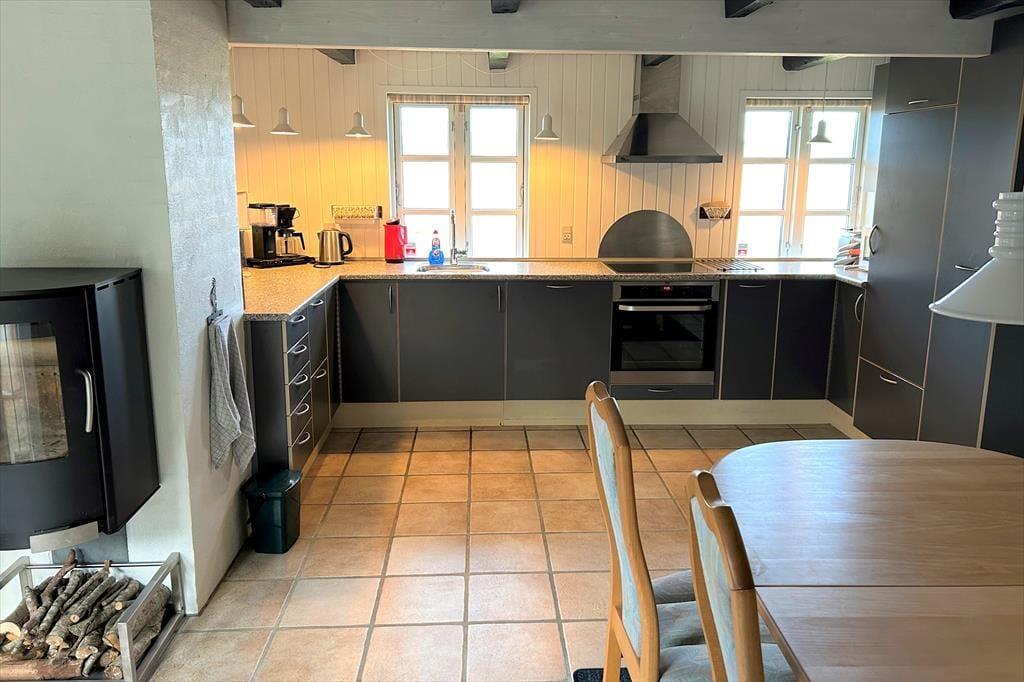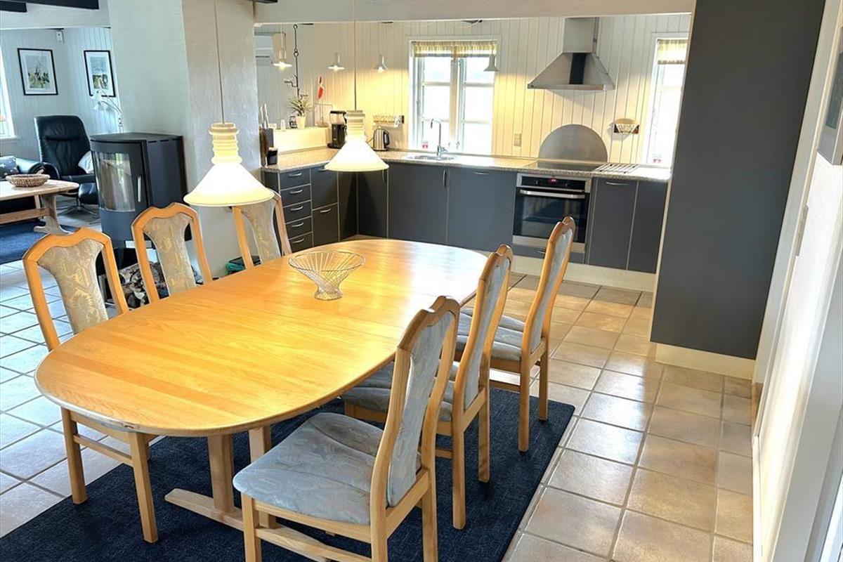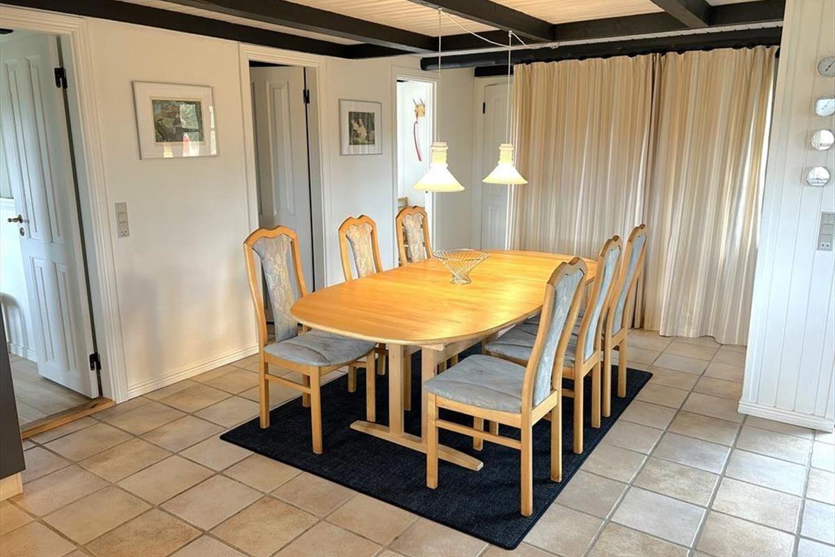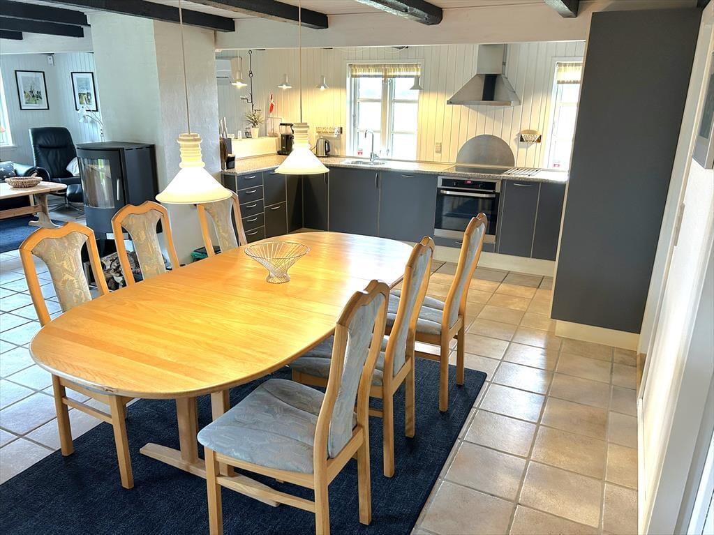 Ein gemütlich eingerichtetes Ferienhaus mit sehr schönem Wohn-Küchen-Ambiente. Die Küche des Hauses ist bestens ausgestattet und liegt in offener Verbindung mit dem Wohn- und Essbereich, in der sich auch der Kaminofen befindet. Der ideale Ort, um Zeit gemeinsam mit der Familie zu verbringen, denn hier ist reichlich Platz für alle vorhanden. Das Badezimmer verfügt über eine Dusche. In dem einen Schlafzimmer ist viel Schrankplatz vorhanden, während sich im anderen ein Einzelbett sowie ein kleiner Gefrierschrank befinden. Im zweiten Stock befinden sich zwei Schlafzimmer und ein Aufenthaltsraum mit Dachschrägen, gut geeignet zum Spielen für die Kinder. Haustiergebühr 28 Euro.