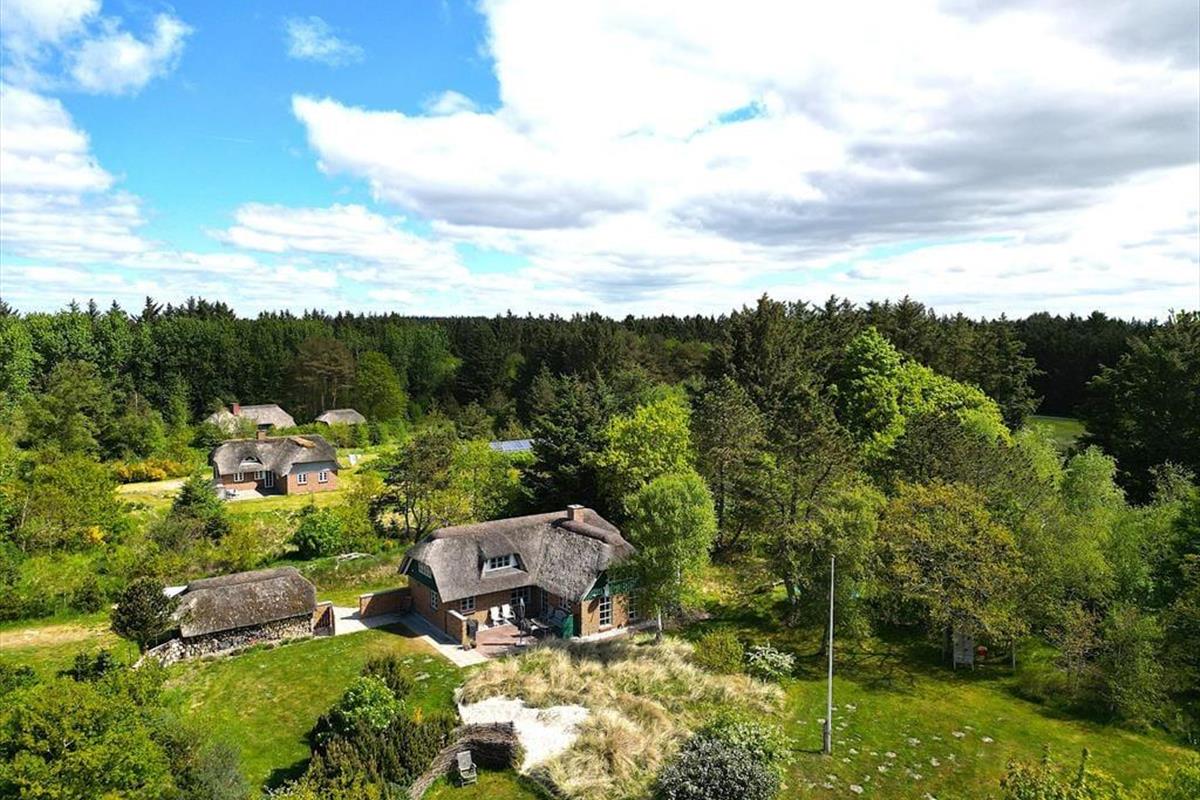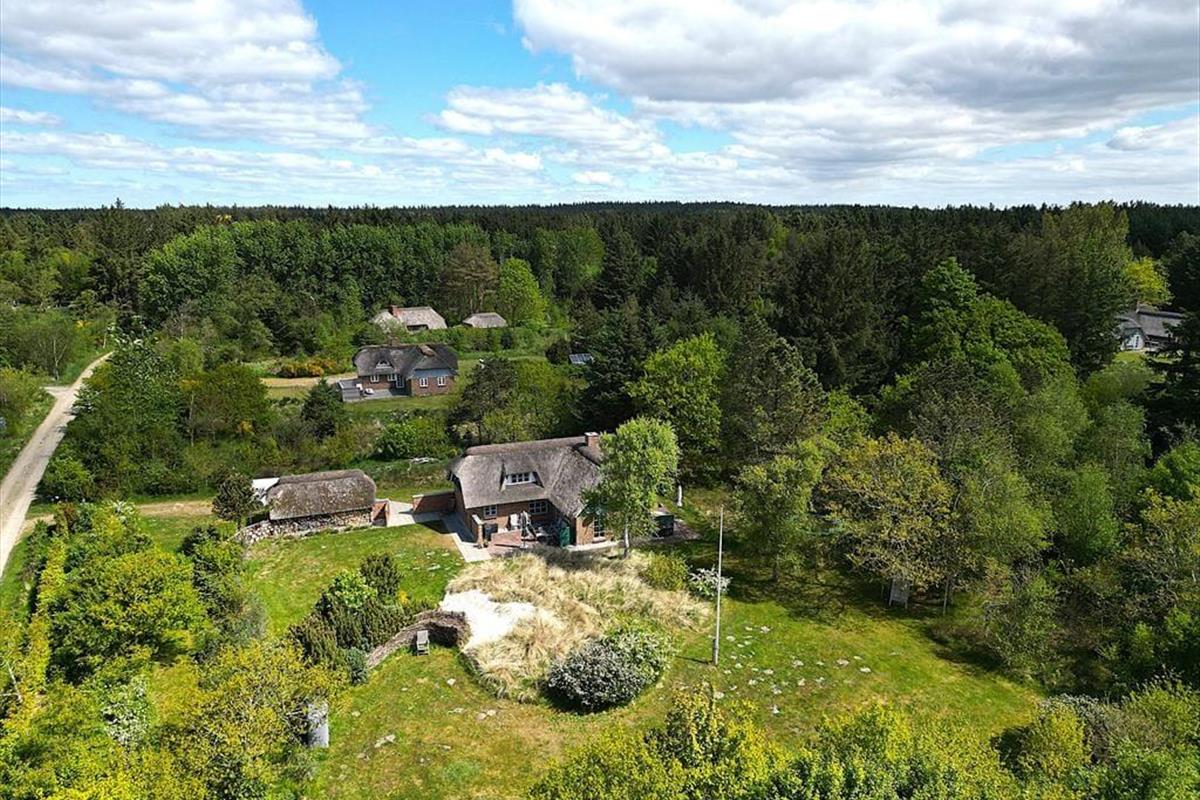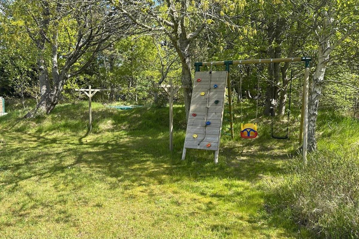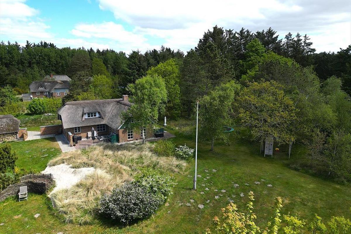 Das Ferienhaus befindet sich auf einem 5.000 m² großen, gepflegten Naturgrundstück in ruhiger Umgebung. Auf dem Grundstück gibt es mehrere lauschige Ecken und eine kleine Sanddüne nicht weit von der Terrasse entfernt, die nach Südwesten ausgerichtet ist und Schutz bietet. Zusätzlich ist eine weitere Terrasse nach Osten ausgerichtet. Die Terrassen sind mit Gartenmöbeln, Liegestühlen und einem Grill ausgestattet. Für Kinder gibt es eine Schaukel und einen Sandkasten sowie viel Platz zum Spielen auf dem Rasen. Parkplätze sind direkt am Ferienhaus vorhanden.