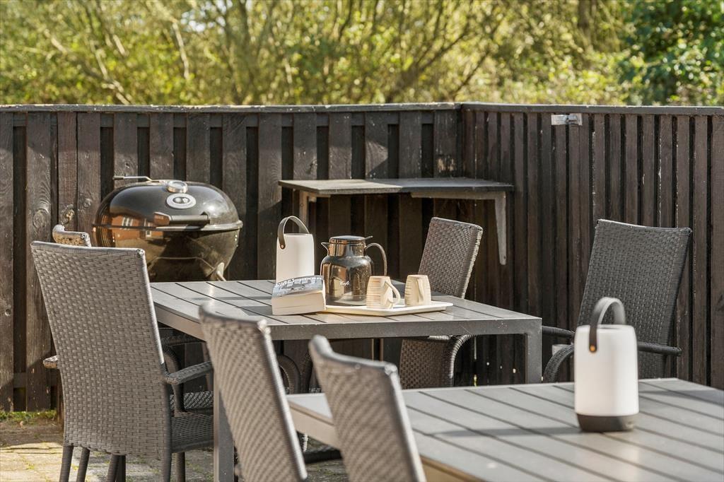 Ein Teil des großen, schönen Grundstücks mit einer Grundfläche von 3.500 m² ist mit einer Grasfläche versehen. Der Rest des Grundstücks ist naturbelassen. Die Grundstücksränder sind mit Büschen und Bäumen bepflanzt, die dem Haus guten Windschutz spenden. Vom Wohnraum treten Sie hinaus auf eine schöne, gepflasterte Terrasse mit guten Gartenmöbeln. Auf dieser Terrasse können Sie viele erholsame Stunden und gesellige Runden verleben. Auf dem wunderschönen Grundstück gibt es ein Shelter, eine Feuerstelle und einen Spielplatz sowie eine größere Holzterrasse mit Wildnisbad, Außendusche und köstlicher Außensauna. Parkplätze stehen am Haus zur Verfügung.