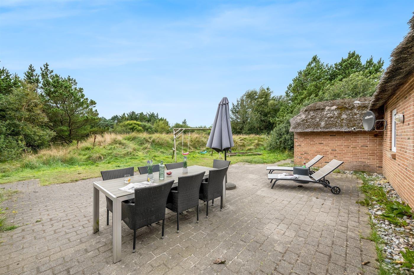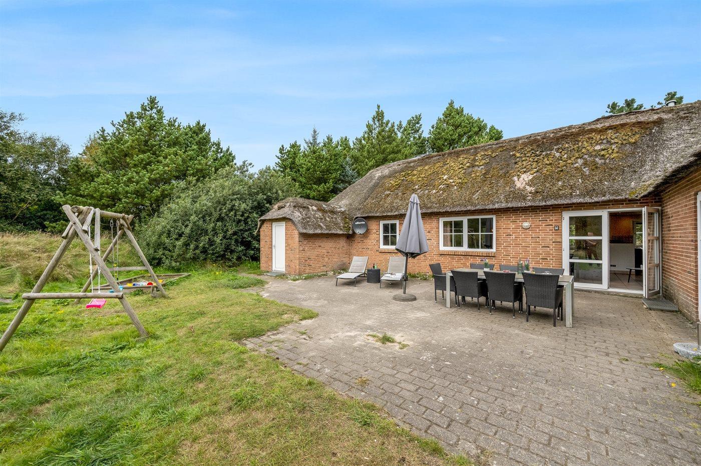 De vakantiewoning is gelegen op een 6200 m² groot natuural grond. Afstand tot de zee 900 m. Dichtstbijzijnde winkel 500 m. Bij de vakantiewoning hoort 50 m² terras. Gereedschapsruimte. Zandbak. Parkeerplaats bij het huis.