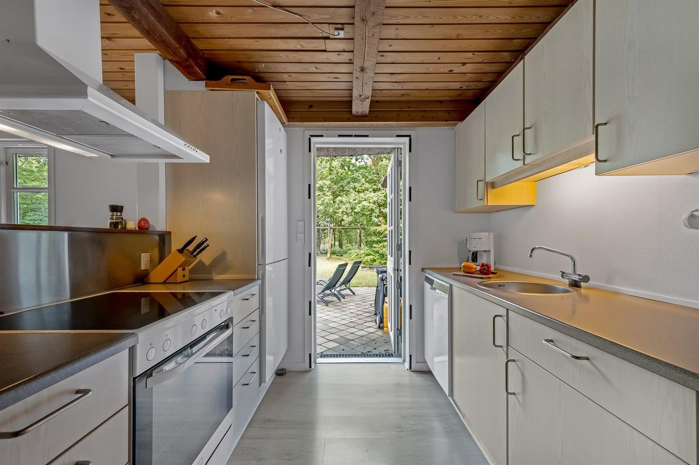 De keuken is uitgerust met koelkast Er is 4 elektrische kookplaten, heteluchtoven, magnetron en vaatwasser.