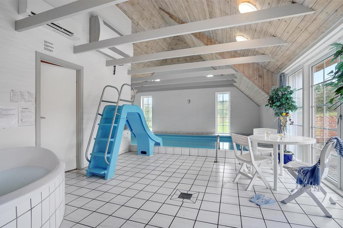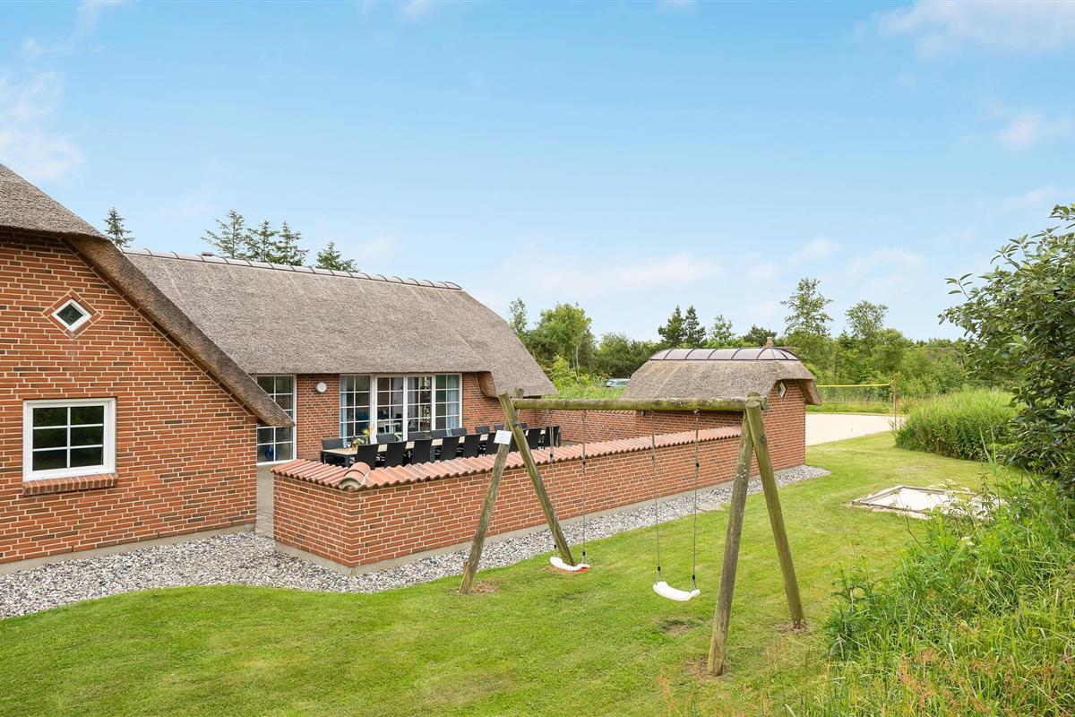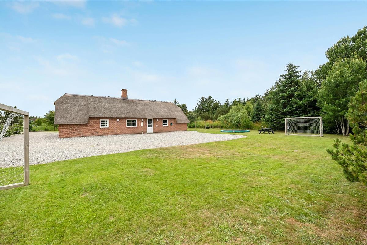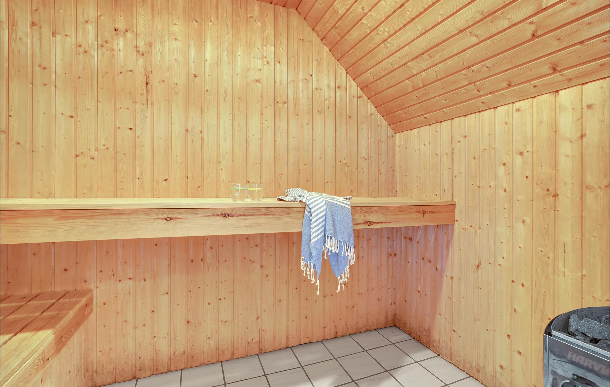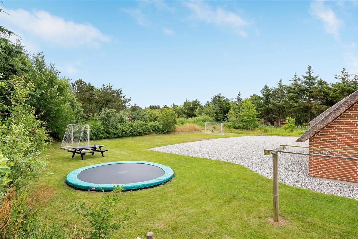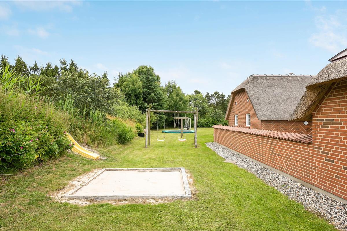 Dit uitnodigende en goed onderhouden vakantiehuis is gelegen in de rustige vakantiehuis nederzetting Bækby, tussen Husby en Vedersø Klit. Het huis is uitgerust met een lichte keuken die open staat voor de woonkamer, die het centrum van het huis vormt. Aan weerszijden bevinden zich drie slaapkamers en een badkamer. In de wellnessruimte is er een zwembad met glijbaan, whirlpool, sauna en een badkamer. In de omgeving van het huis liggen vele kilometers aan wandel- en fietspaden. In het bos Husby Plantage zijn ook wandelpaden die geschikt zijn voor gehandicapten. In het soortenrijke bos staan ook 90 jaar oude naaldbomen. De familiehond verheugt zich zeker op het Husby Hondenbos, dat niet ver van het huis ligt. Er zijn ook kleine havens in de omgeving waar de lokale bevolking hun boten aanlegt. U kunt een originele vakantiesfeer ervaren in Søndervig, in dit stadje kunt u ook winkelen in gespecialiseerde winkels en recreatieve sporten vinden (minigolf, overdekt zwembad, zandsculpturen op het strand). Maak ook een uitstapje naar Thorsminde, dat prachtig gelegen is op de landtong tussen de zee en de fjord. De haven heeft een mooie flair en u kunt vissen vanaf de pier. Hier bevindt zich ook het St. Georges jetsamuseum. Wanneer u 's avonds terugkeert naar het vakantiehuis, kunt u op het terras genieten van de laatste zonnestralen en daarna samenkomen voor de knisperende open haard.