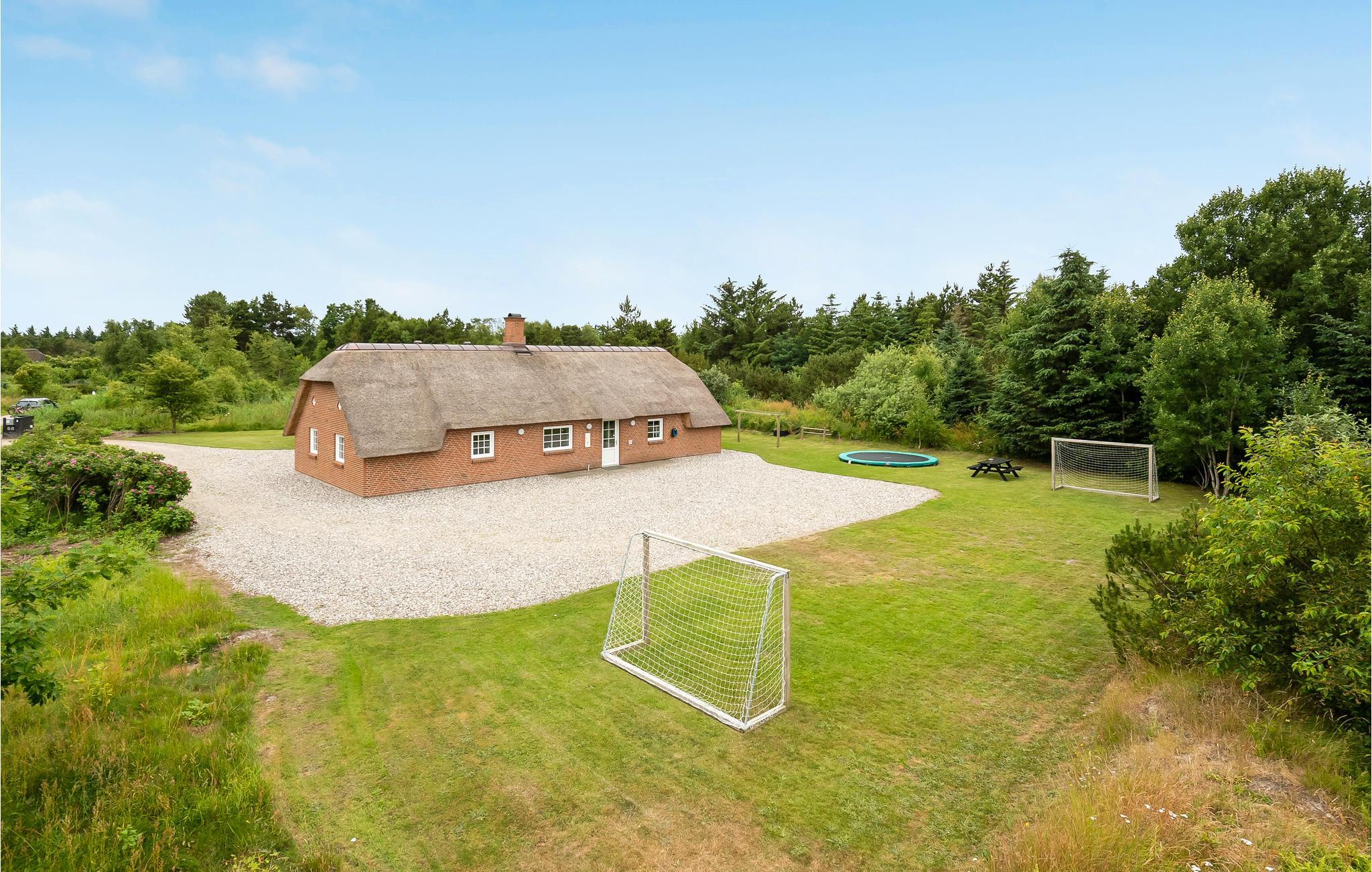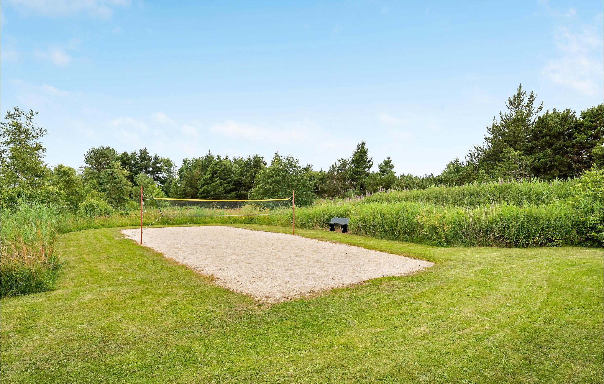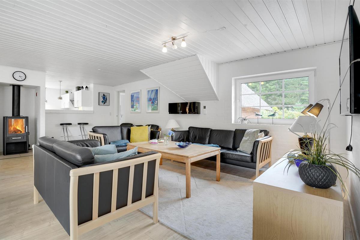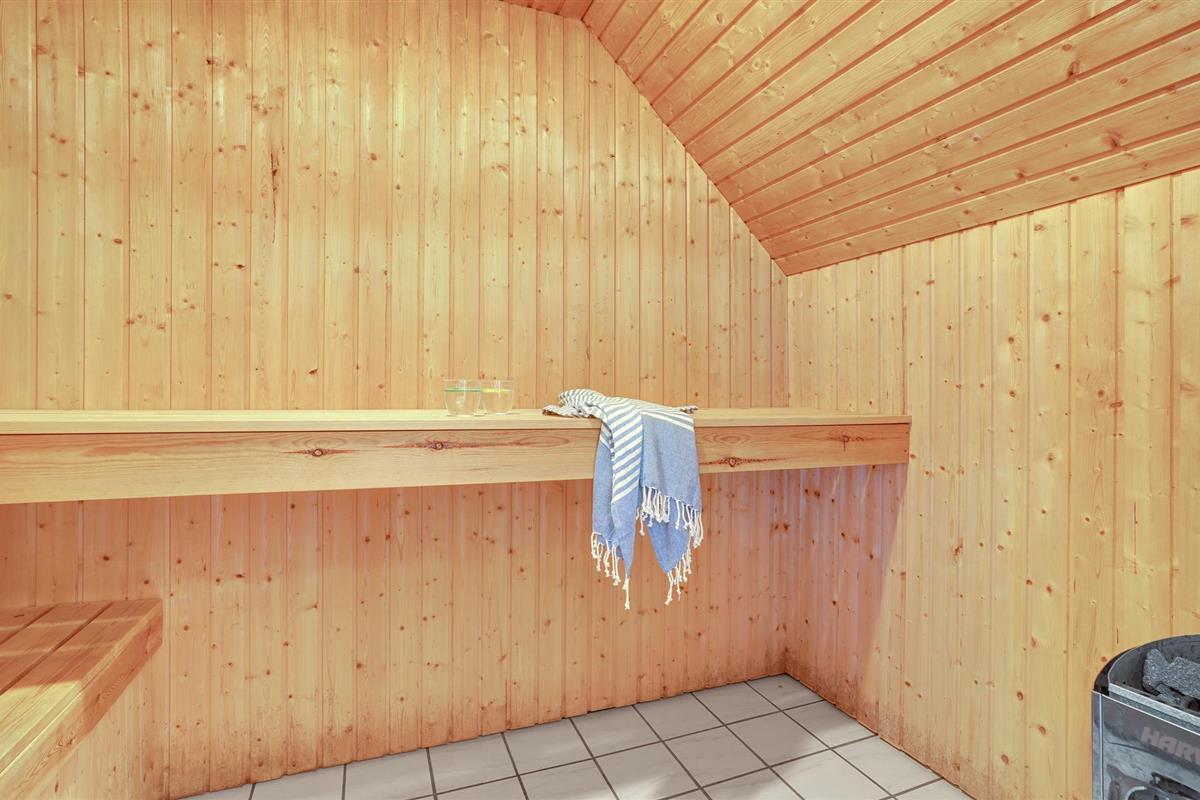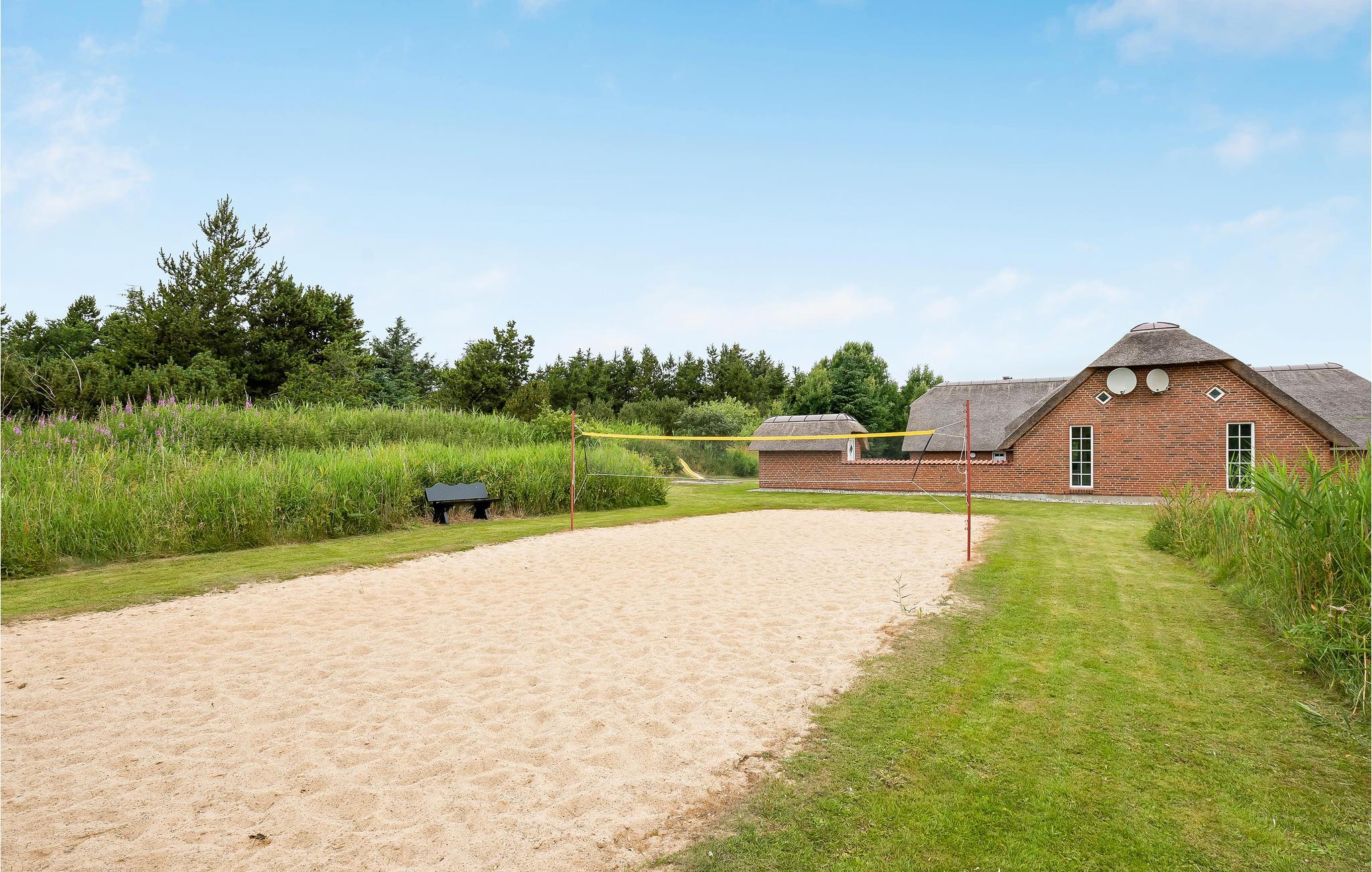 Dit uitnodigende en goed onderhouden vakantiehuis is gelegen in de rustige vakantiehuis nederzetting Bækby, tussen Husby en Vedersø Klit. Het huis is uitgerust met een lichte keuken die open staat voor de woonkamer, die het centrum van het huis vormt. Aan weerszijden bevinden zich drie slaapkamers en een badkamer. In de wellnessruimte is er een zwembad met glijbaan, whirlpool, sauna en een badkamer. In de omgeving van het huis liggen vele kilometers aan wandel- en fietspaden. In het bos Husby Plantage zijn ook wandelpaden die geschikt zijn voor gehandicapten. In het soortenrijke bos staan ook 90 jaar oude naaldbomen. De familiehond verheugt zich zeker op het Husby Hondenbos, dat niet ver van het huis ligt. Er zijn ook kleine havens in de omgeving waar de lokale bevolking hun boten aanlegt. U kunt een originele vakantiesfeer ervaren in Søndervig, in dit stadje kunt u ook winkelen in gespecialiseerde winkels en recreatieve sporten vinden (minigolf, overdekt zwembad, zandsculpturen op het strand). Maak ook een uitstapje naar Thorsminde, dat prachtig gelegen is op de landtong tussen de zee en de fjord. De haven heeft een mooie flair en u kunt vissen vanaf de pier. Hier bevindt zich ook het St. Georges jetsamuseum. Wanneer u 's avonds terugkeert naar het vakantiehuis, kunt u op het terras genieten van de laatste zonnestralen en daarna samenkomen voor de knisperende open haard.