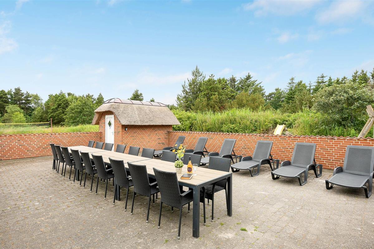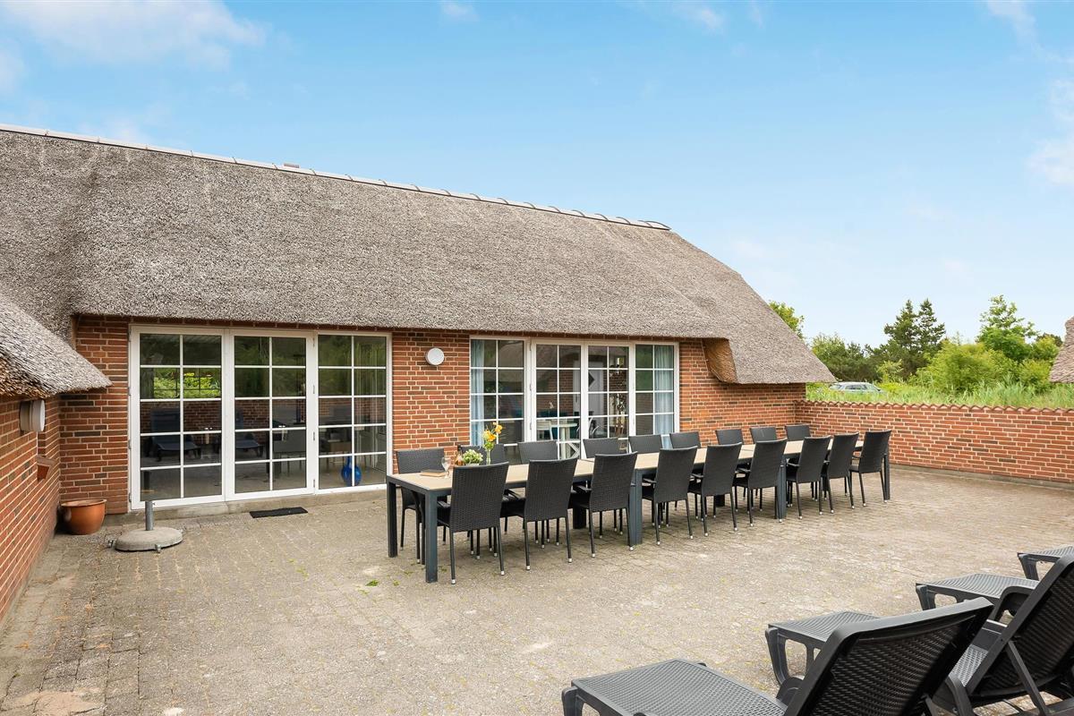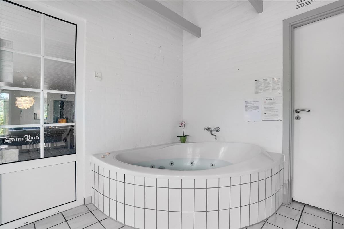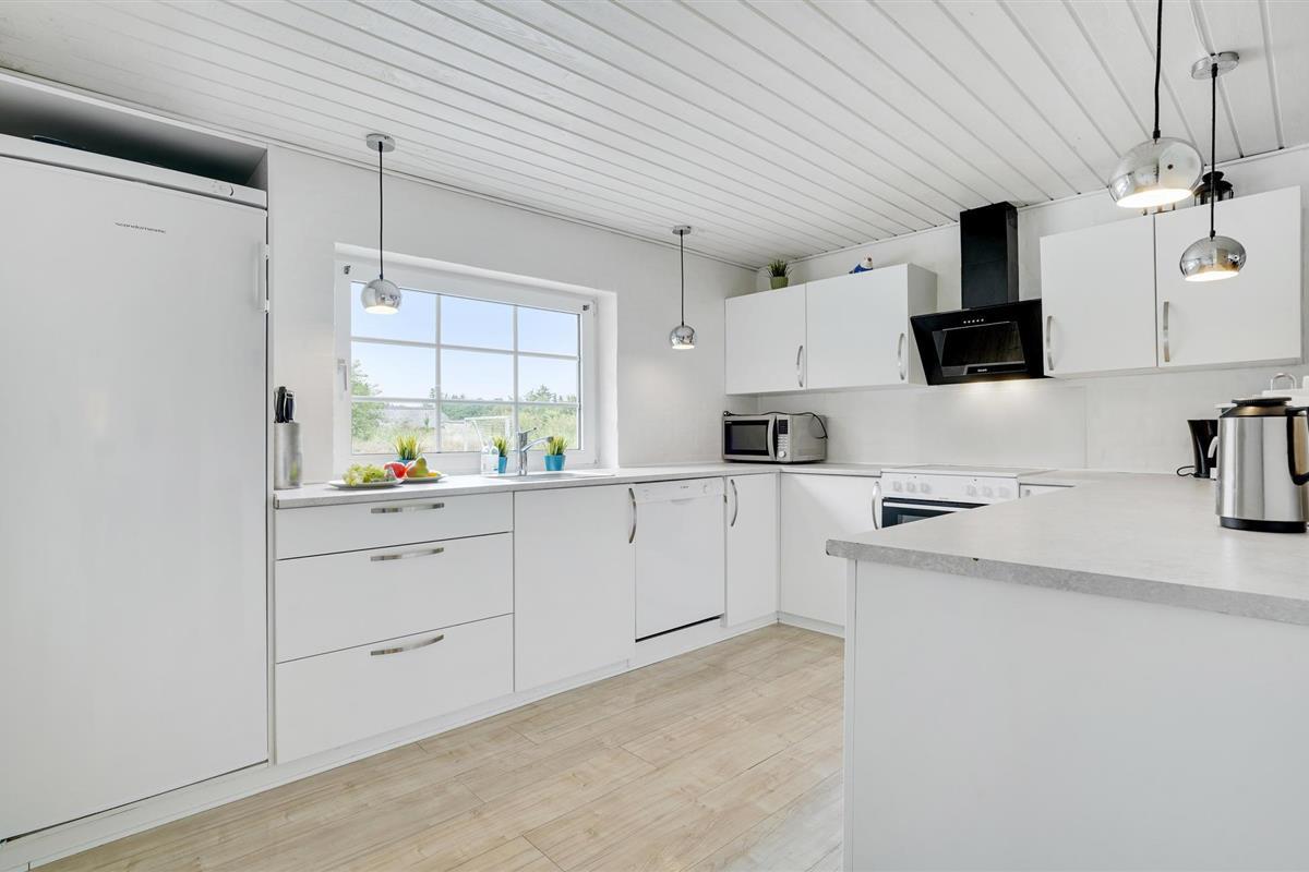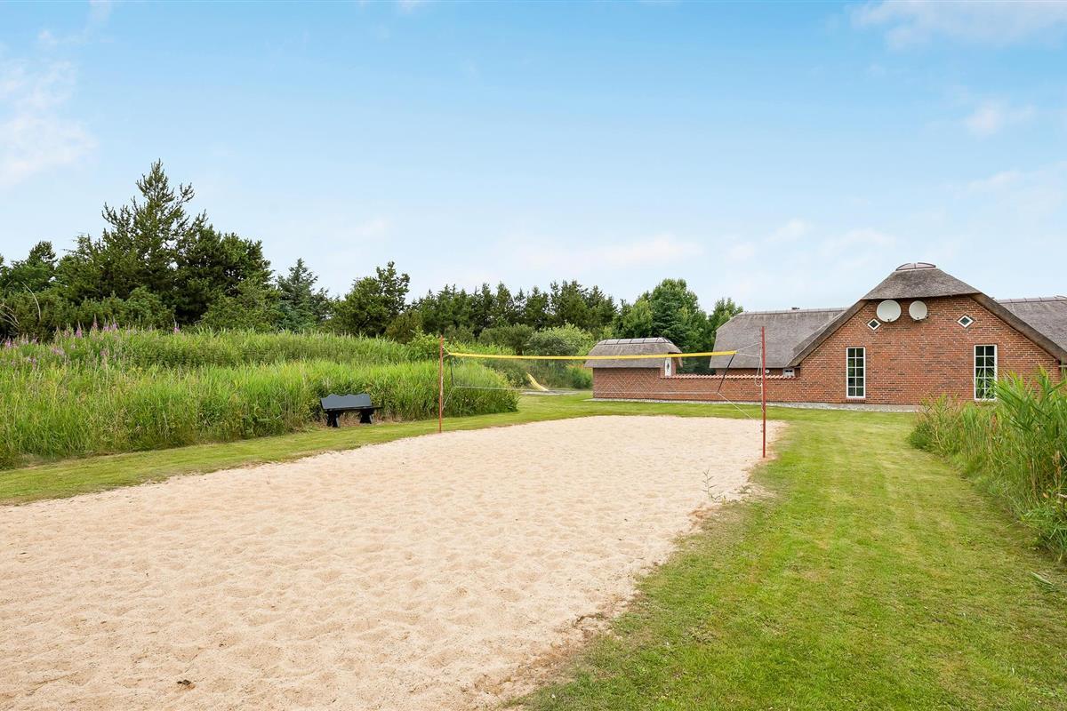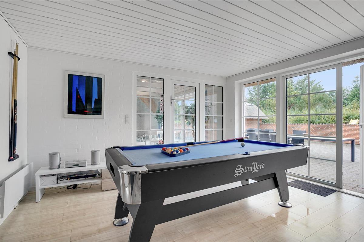 Dit uitnodigende en goed onderhouden vakantiehuis is gelegen in de rustige vakantiehuis nederzetting Bækby, tussen Husby en Vedersø Klit. Het huis is uitgerust met een lichte keuken die open staat voor de woonkamer, die het centrum van het huis vormt. Aan weerszijden bevinden zich drie slaapkamers en een badkamer. In de wellnessruimte is er een zwembad met glijbaan, whirlpool, sauna en een badkamer. In de omgeving van het huis liggen vele kilometers aan wandel- en fietspaden. In het bos Husby Plantage zijn ook wandelpaden die geschikt zijn voor gehandicapten. In het soortenrijke bos staan ook 90 jaar oude naaldbomen. De familiehond verheugt zich zeker op het Husby Hondenbos, dat niet ver van het huis ligt. Er zijn ook kleine havens in de omgeving waar de lokale bevolking hun boten aanlegt. U kunt een originele vakantiesfeer ervaren in Søndervig, in dit stadje kunt u ook winkelen in gespecialiseerde winkels en recreatieve sporten vinden (minigolf, overdekt zwembad, zandsculpturen op het strand). Maak ook een uitstapje naar Thorsminde, dat prachtig gelegen is op de landtong tussen de zee en de fjord. De haven heeft een mooie flair en u kunt vissen vanaf de pier. Hier bevindt zich ook het St. Georges jetsamuseum. Wanneer u 's avonds terugkeert naar het vakantiehuis, kunt u op het terras genieten van de laatste zonnestralen en daarna samenkomen voor de knisperende open haard.