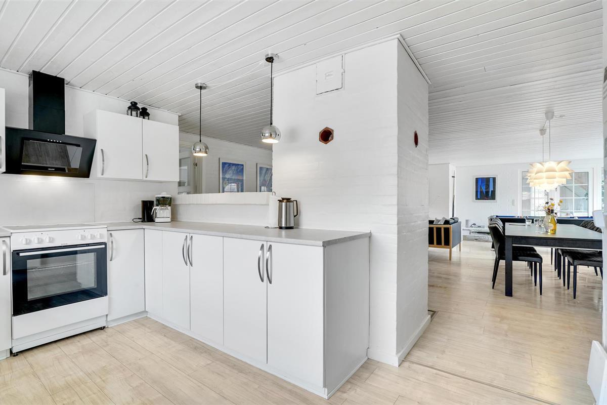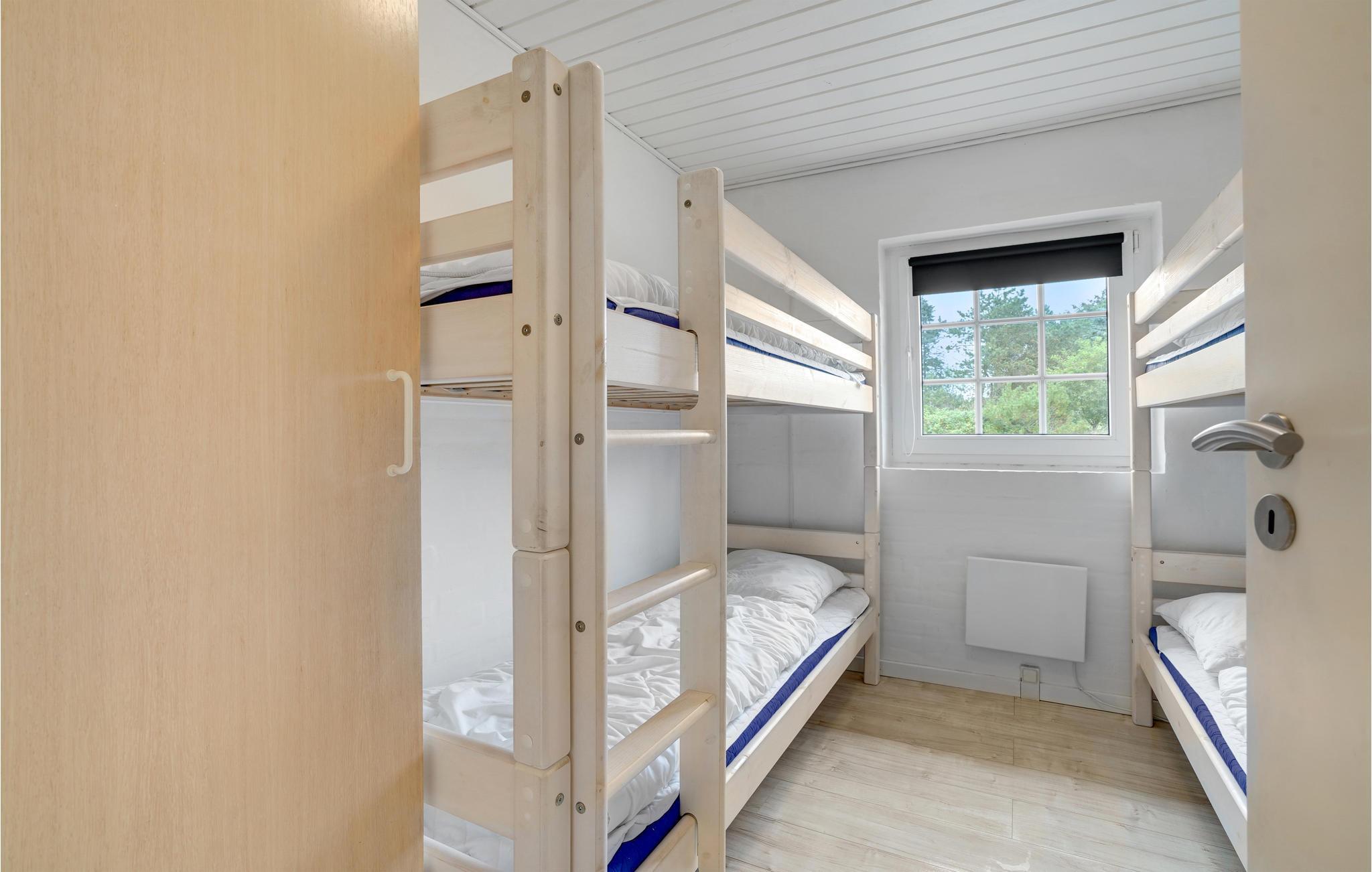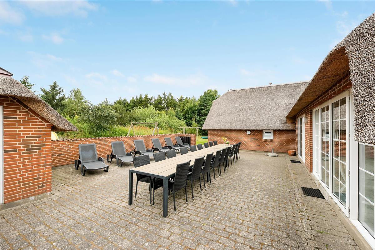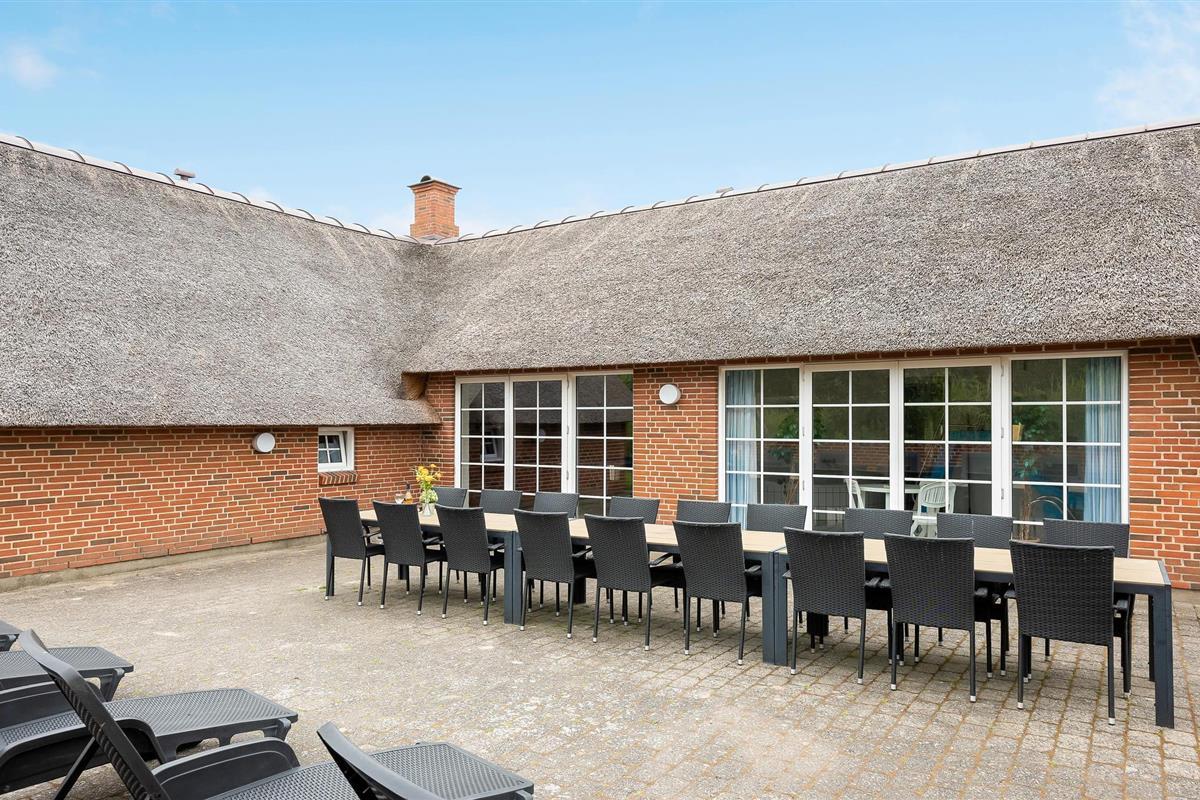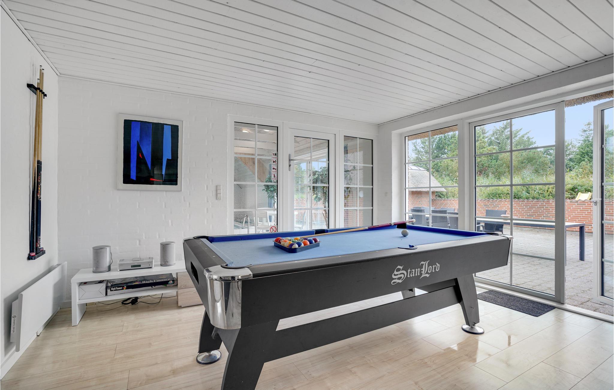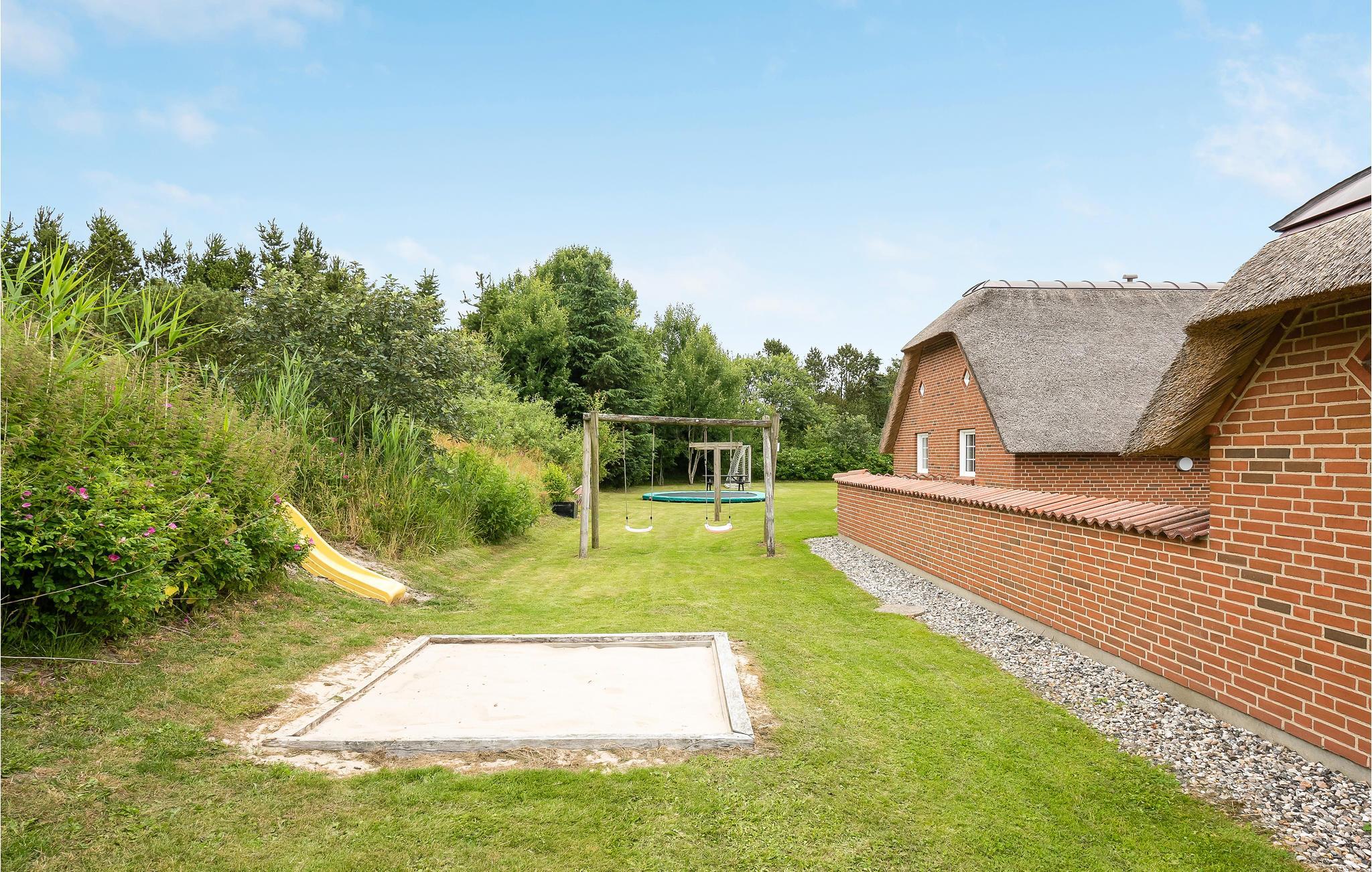 Dit uitnodigende en goed onderhouden vakantiehuis is gelegen in de rustige vakantiehuis nederzetting Bækby, tussen Husby en Vedersø Klit. Het huis is uitgerust met een lichte keuken die open staat voor de woonkamer, die het centrum van het huis vormt. Aan weerszijden bevinden zich drie slaapkamers en een badkamer. In de wellnessruimte is er een zwembad met glijbaan, whirlpool, sauna en een badkamer. In de omgeving van het huis liggen vele kilometers aan wandel- en fietspaden. In het bos Husby Plantage zijn ook wandelpaden die geschikt zijn voor gehandicapten. In het soortenrijke bos staan ook 90 jaar oude naaldbomen. De familiehond verheugt zich zeker op het Husby Hondenbos, dat niet ver van het huis ligt. Er zijn ook kleine havens in de omgeving waar de lokale bevolking hun boten aanlegt. U kunt een originele vakantiesfeer ervaren in Søndervig, in dit stadje kunt u ook winkelen in gespecialiseerde winkels en recreatieve sporten vinden (minigolf, overdekt zwembad, zandsculpturen op het strand). Maak ook een uitstapje naar Thorsminde, dat prachtig gelegen is op de landtong tussen de zee en de fjord. De haven heeft een mooie flair en u kunt vissen vanaf de pier. Hier bevindt zich ook het St. Georges jetsamuseum. Wanneer u 's avonds terugkeert naar het vakantiehuis, kunt u op het terras genieten van de laatste zonnestralen en daarna samenkomen voor de knisperende open haard.