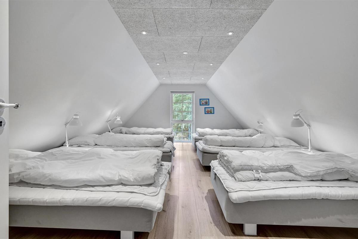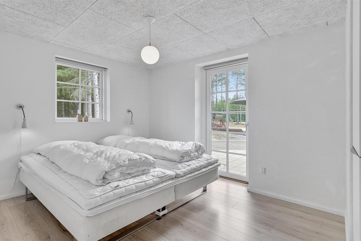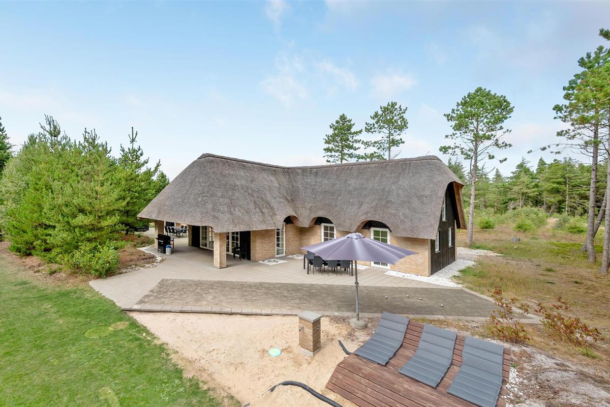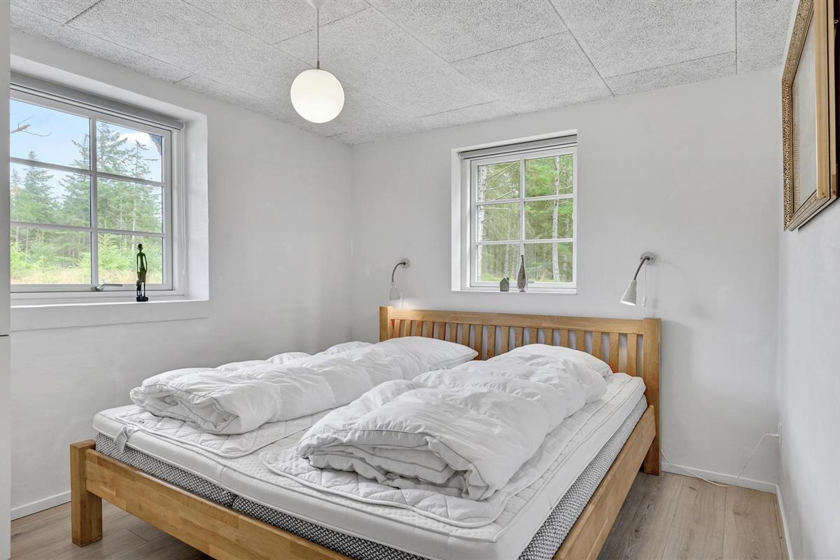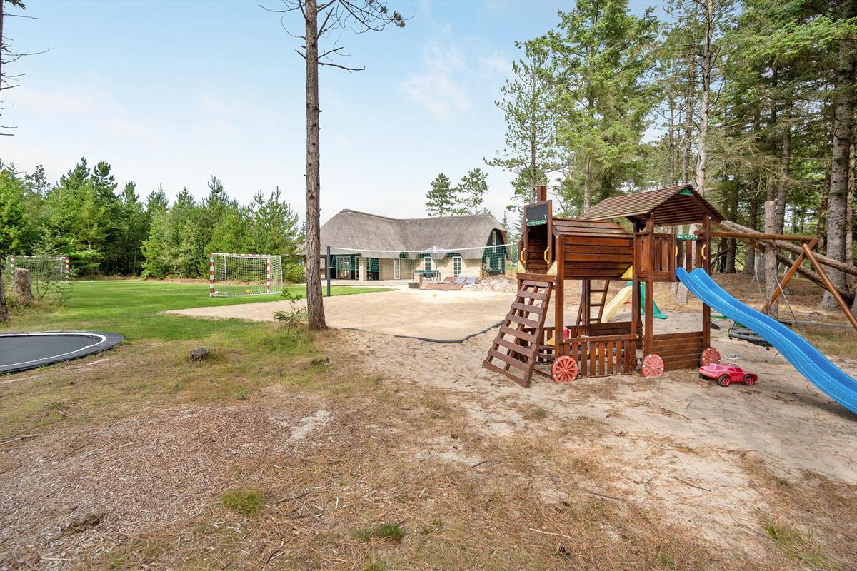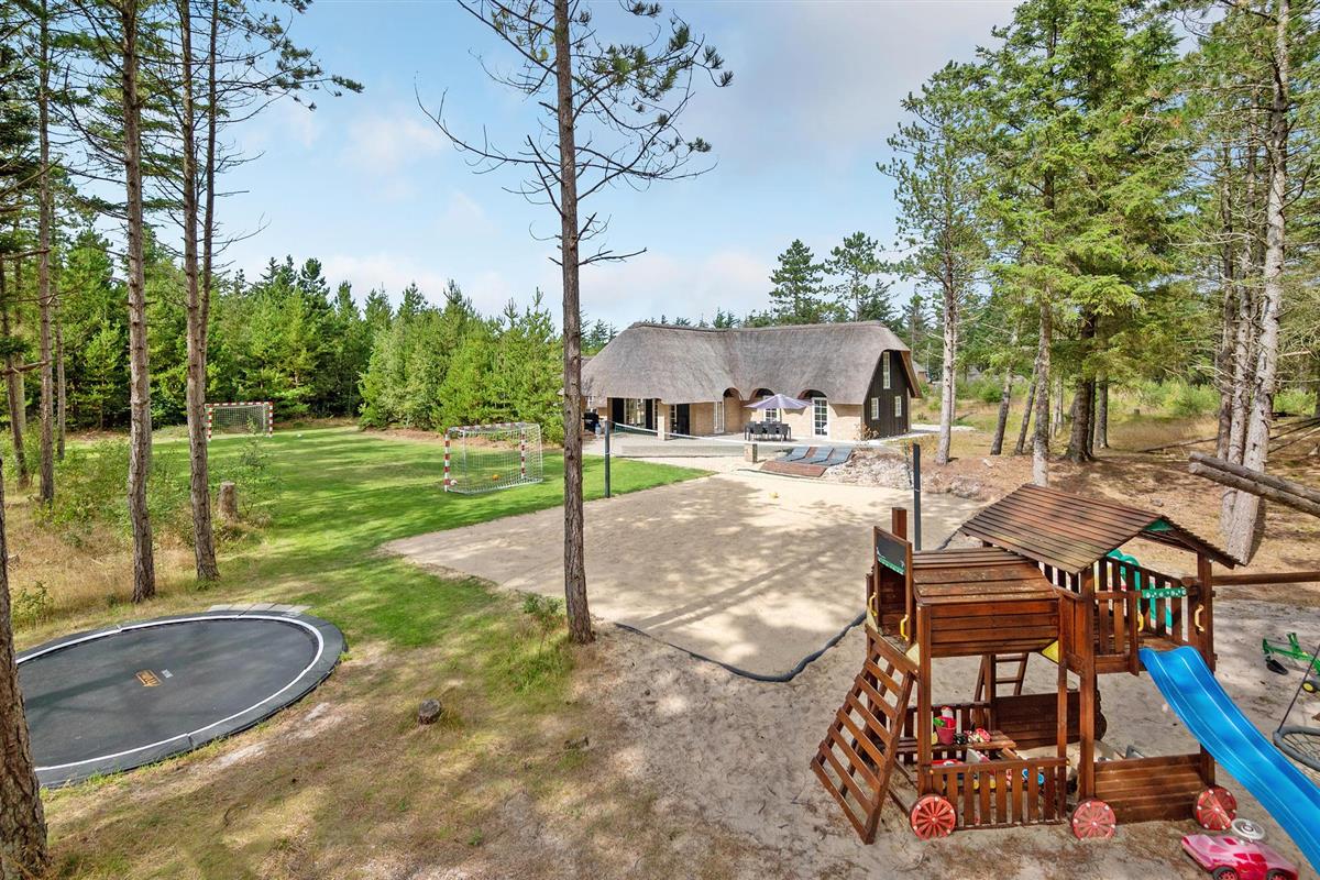 Het vakantiehuis ligt op een groot natuurperceel, in de natuurschone omgeving van Vester Husby. Er is plaats voor 16 gasten, dus genoeg ruimte voor een groot gezin, of zelfs meerdere families. Het domicilie is uitgerust met een grote gecombineerde keuken en woonkamer met warmtepomp, 6 slaapkamers plus een vide met nog eens 6 bedden, 2 goede badkamers, waarvan één met infrarood sauna, een grote activiteitenruimte en meer. Het huis wordt verwarmd met geothermische energie. Buiten kunt u genieten van het leven op het gedeeltelijk overdekte terras, misschien de barbecue aansteken of een balletje slaan op het gazon? Niet ver van het huis ligt Husby Plantation, een uniek gebied met gevarieerde beplanting, waaronder indrukwekkende naaldbomen en prachtige beuken, er zijn gemarkeerde routes, een bosmeer en meer. In de omgeving vindt u ook verschillende, gezellige havens, bijvoorbeeld bij Nørhedevej en Felstedvej. In de havens zijn kleine speeltuintjes en tafels en banken waar een hapje gegeten kan worden. De Noordzee moet u ervaren, zowel in de zomer als in de winter. Het strand strekt zich hier uit tot aan de horizon. Thorsminde ligt 18 km naar het noorden, een oud, mooi vissersdorp op de landtong, met aan de ene kant de Noordzee en aan de andere kant de Nissum Fjord. Bezoek daar het St. George jetsamuseum. Ten zuiden van het vakantiehuis ligt de levendige zomerbadplaats Søndervig. Hier vindt u alles en kunt u surfen in Ringkøbing Fjord.