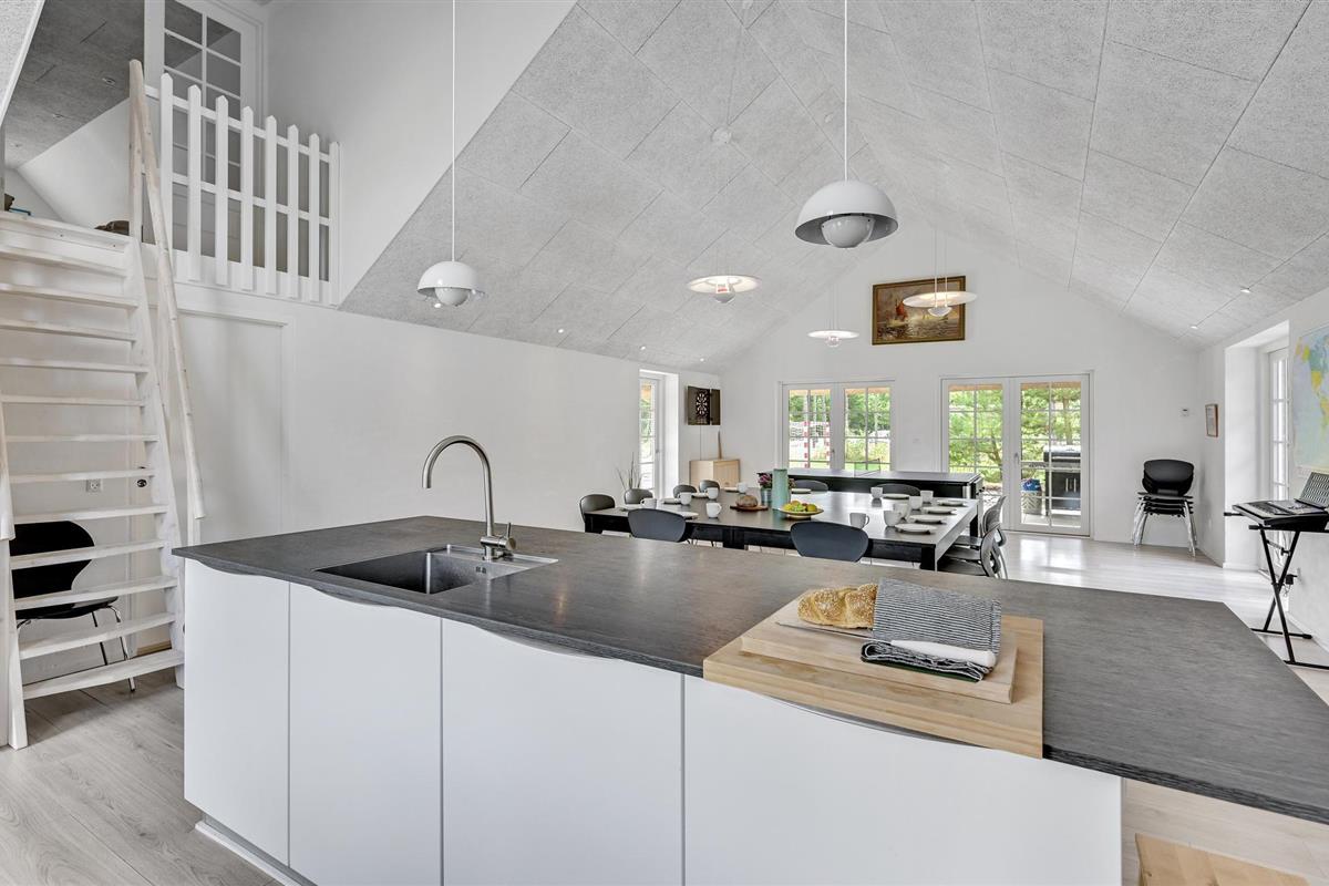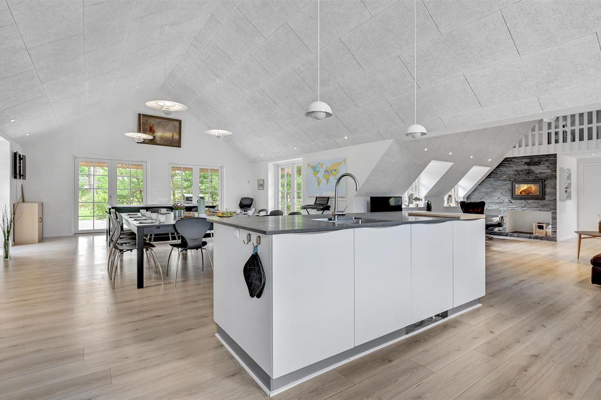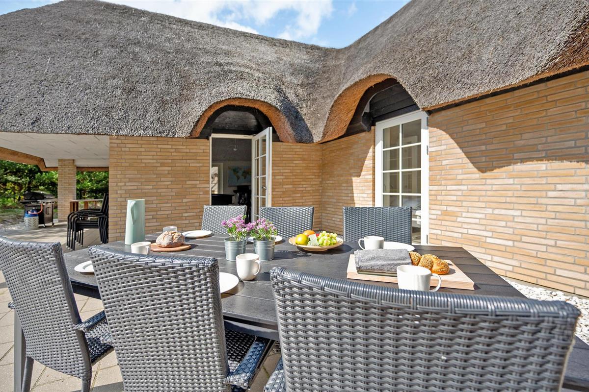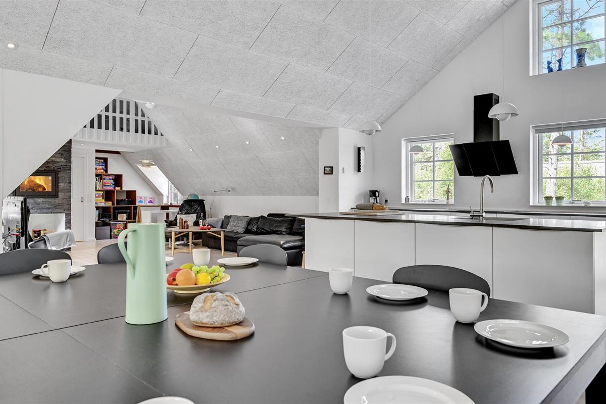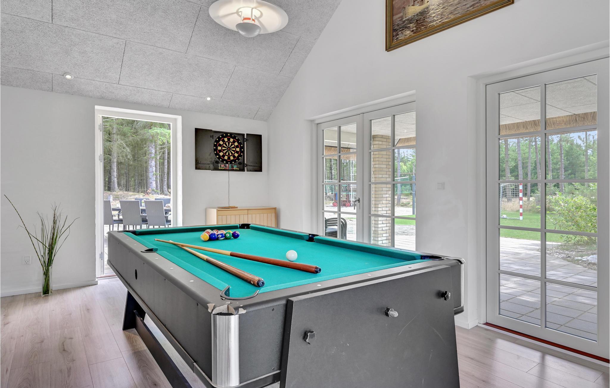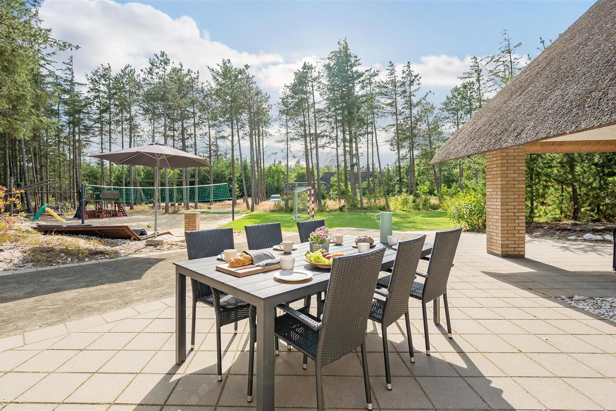 Het vakantiehuis ligt op een groot natuurperceel, in de natuurschone omgeving van Vester Husby. Er is plaats voor 16 gasten, dus genoeg ruimte voor een groot gezin, of zelfs meerdere families. Het domicilie is uitgerust met een grote gecombineerde keuken en woonkamer met warmtepomp, 6 slaapkamers plus een vide met nog eens 6 bedden, 2 goede badkamers, waarvan één met infrarood sauna, een grote activiteitenruimte en meer. Het huis wordt verwarmd met geothermische energie. Buiten kunt u genieten van het leven op het gedeeltelijk overdekte terras, misschien de barbecue aansteken of een balletje slaan op het gazon? Niet ver van het huis ligt Husby Plantation, een uniek gebied met gevarieerde beplanting, waaronder indrukwekkende naaldbomen en prachtige beuken, er zijn gemarkeerde routes, een bosmeer en meer. In de omgeving vindt u ook verschillende, gezellige havens, bijvoorbeeld bij Nørhedevej en Felstedvej. In de havens zijn kleine speeltuintjes en tafels en banken waar een hapje gegeten kan worden. De Noordzee moet u ervaren, zowel in de zomer als in de winter. Het strand strekt zich hier uit tot aan de horizon. Thorsminde ligt 18 km naar het noorden, een oud, mooi vissersdorp op de landtong, met aan de ene kant de Noordzee en aan de andere kant de Nissum Fjord. Bezoek daar het St. George jetsamuseum. Ten zuiden van het vakantiehuis ligt de levendige zomerbadplaats Søndervig. Hier vindt u alles en kunt u surfen in Ringkøbing Fjord.