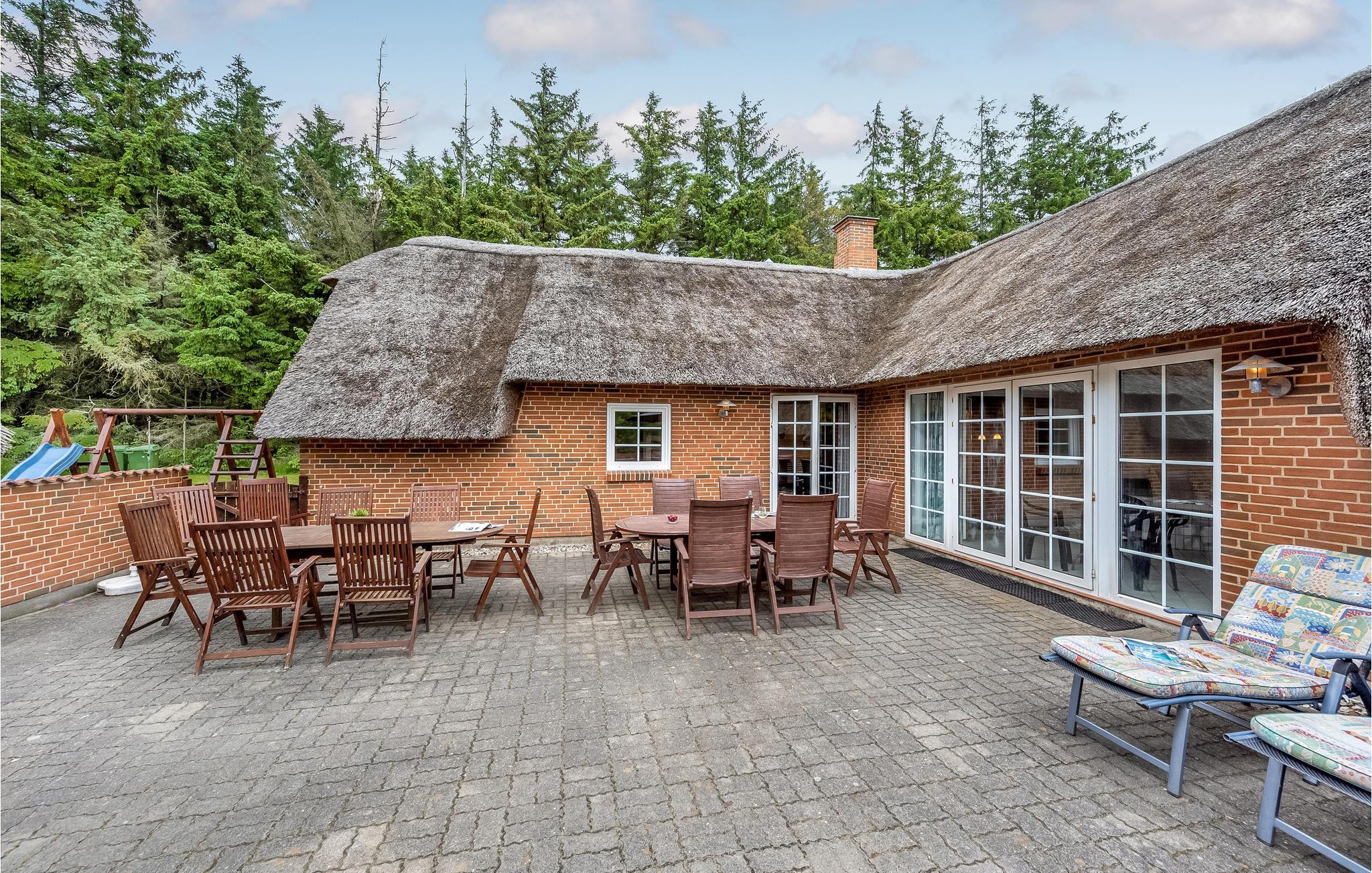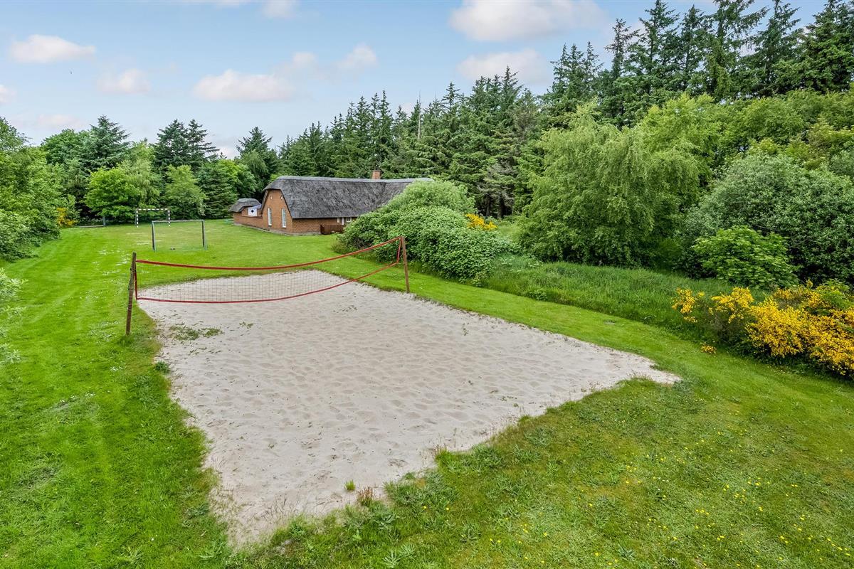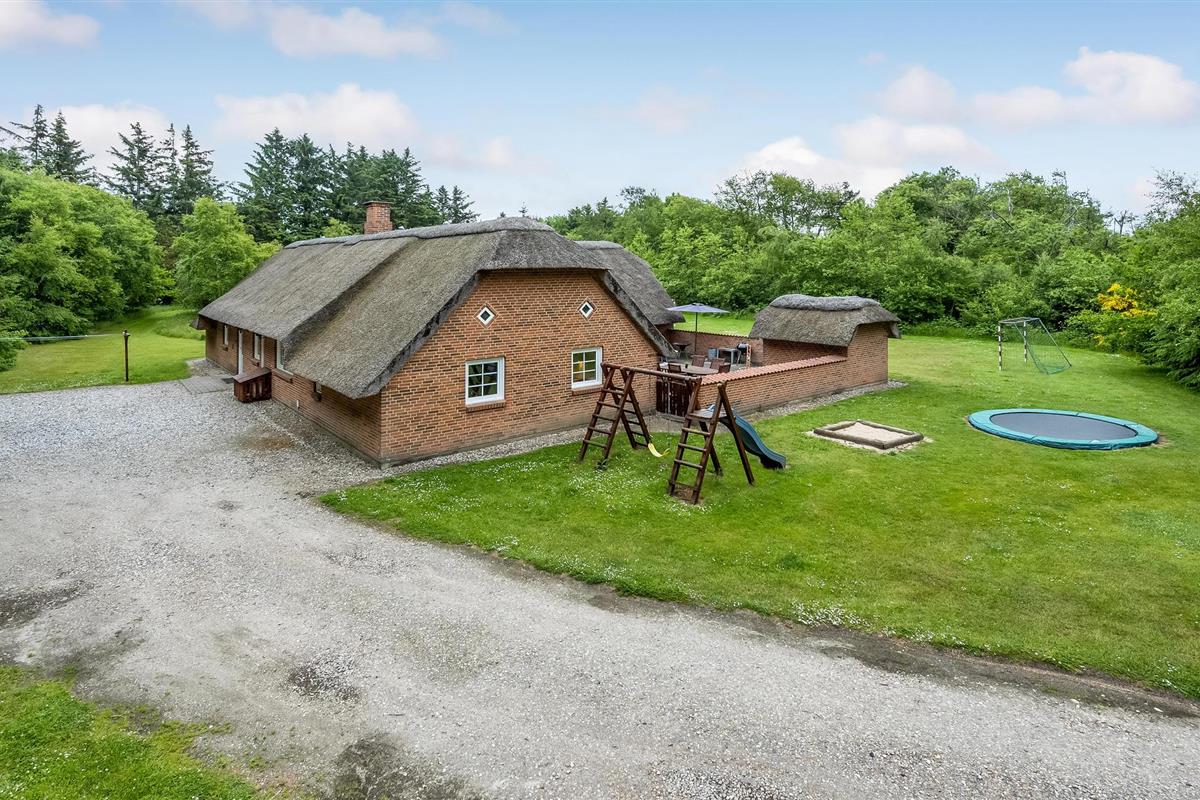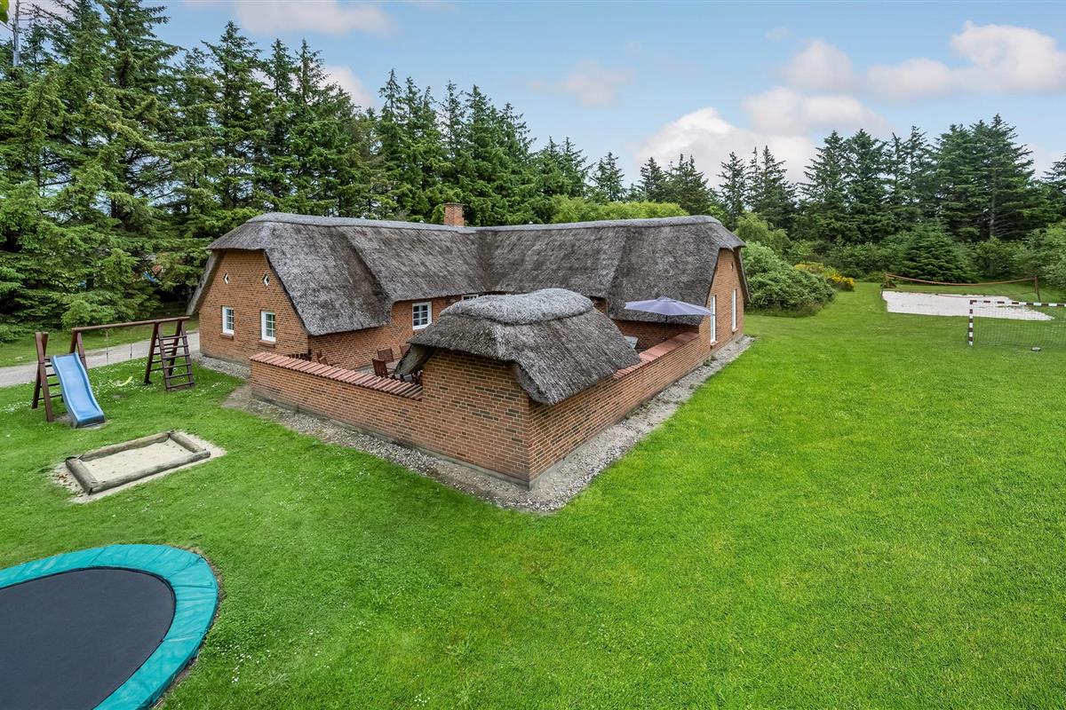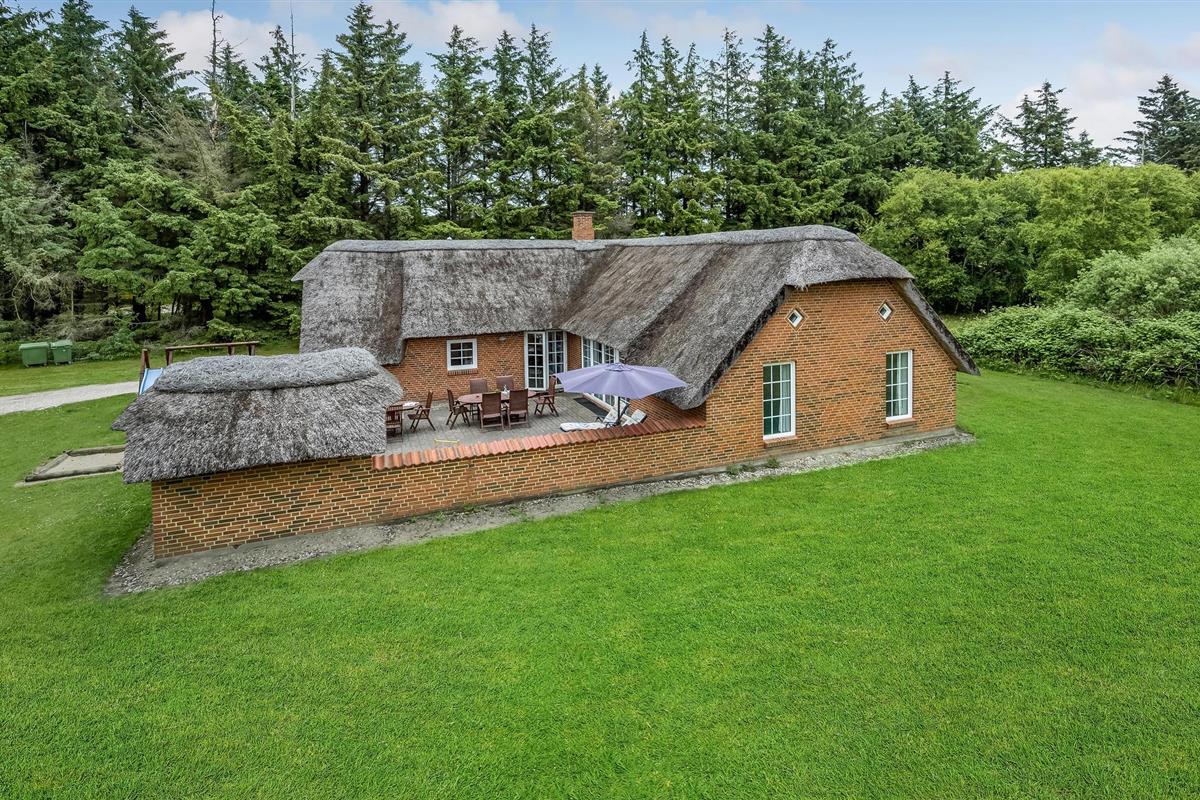 Dit gezellige vakantiehuis met rieten dak en zwembad wacht op u op een natuurgrondstuk van 5000 m². In de tuin heeft u ruimte voor spelletjes, voetbal en meer. Het huis ligt in een rustige omgeving, niet ver van de Noordzee. De omgeving is ideaal om te wandelen en te fietsen. Het huis heeft ook ruimte voor een groot gezin om te ontspannen of actief te zijn. Er zijn 6 slaapkamers, 3 badkamers en het zwembad heeft ook een whirlpool en sauna. De grote keuken-woonkamer is een uitstekende verzamelplaats. U zult het echt gezellig hebben bij de houtkachel, die u zelfs op kille avonden in een goed humeur houdt. Op het grote, beschutte terras staan tuinmeubelen. Husby is perfect voor natuurliefhebbers, er is een wandelgebied, een zwemmeer, zee en duinen. Het vakantieoord Søndervig, dat in de zomer actief is, ligt op slechts 20 km afstand (bowlingcentrum, fitnesscentrum, winkels, supermarkt, restaurants). In de andere richting, op 12 km afstand, ligt Thorsminde, een oud vissersdorp. Neem uw visuitrusting mee, de vis bijt hier goed.