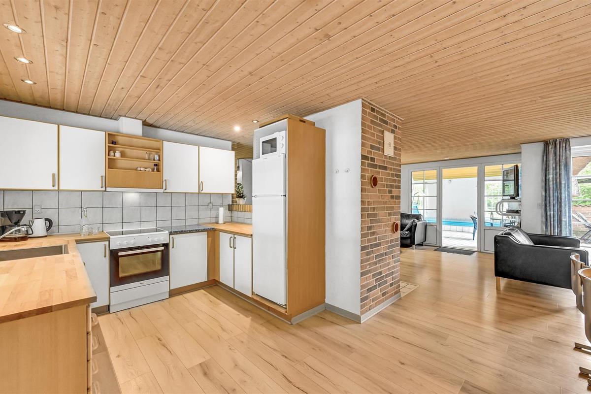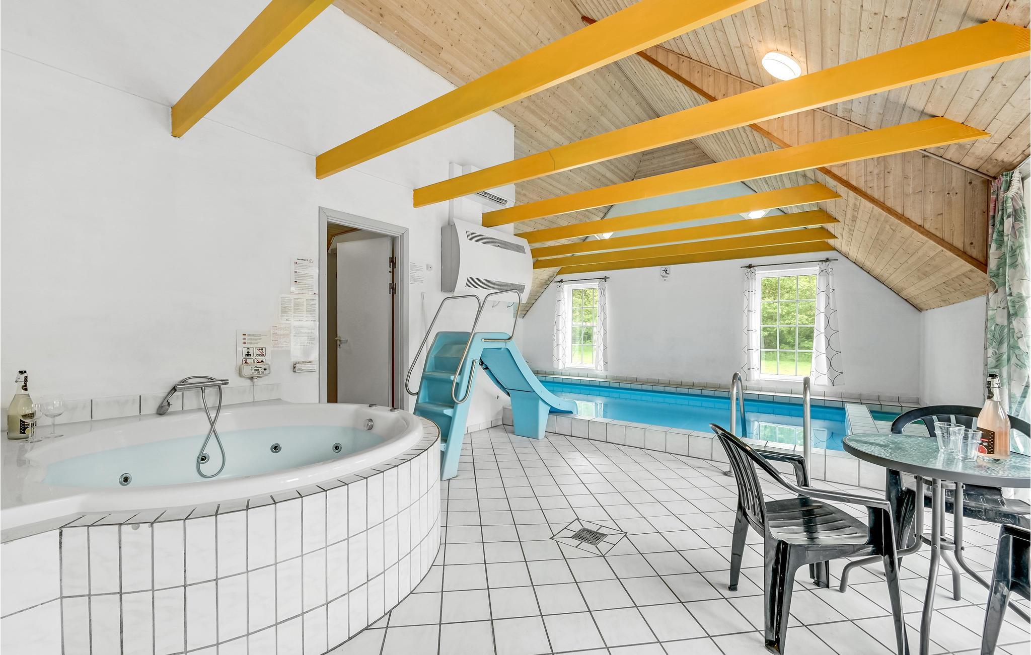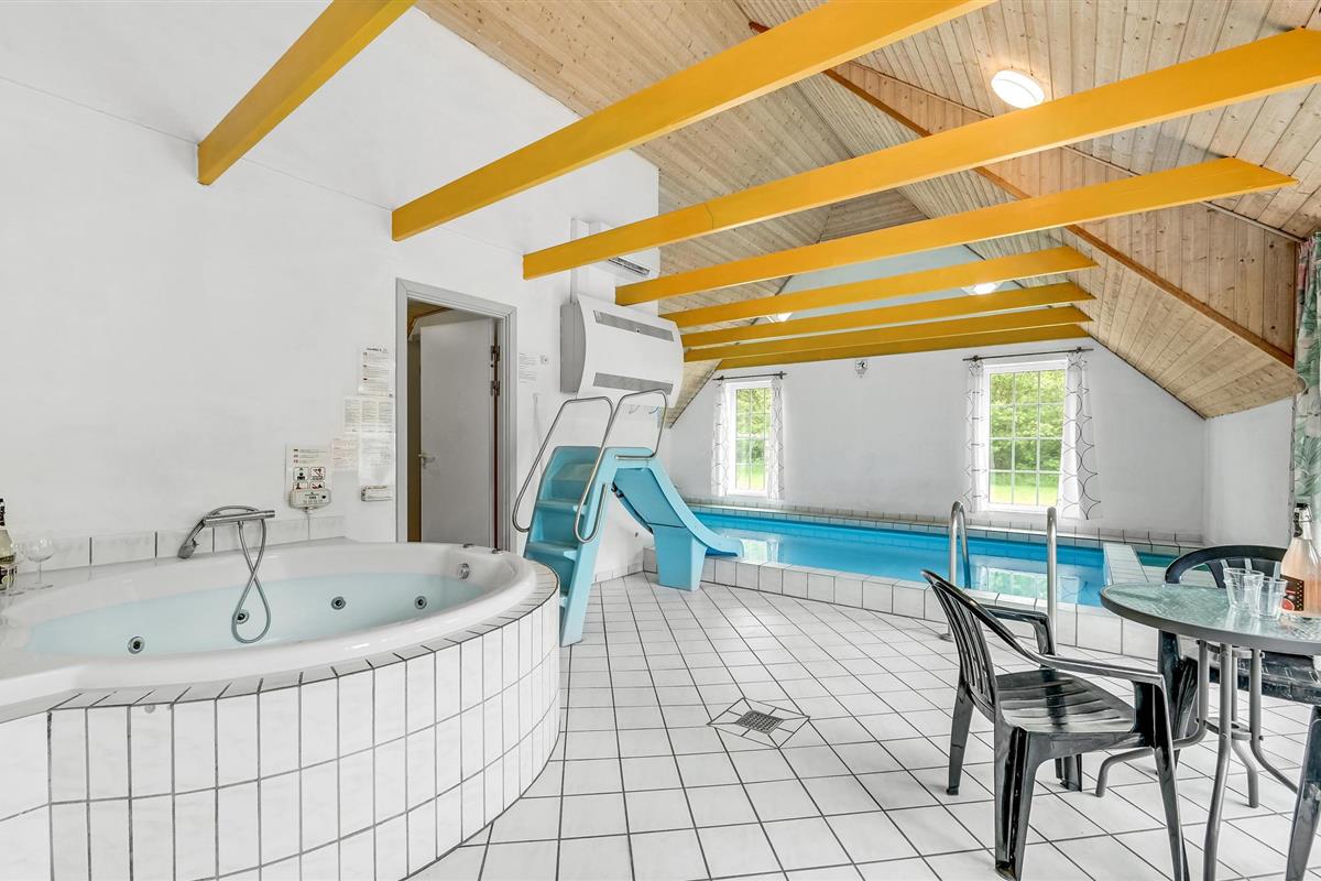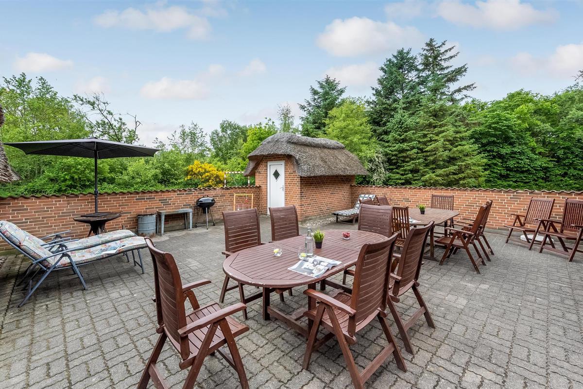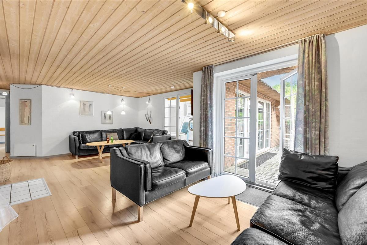 Dit gezellige vakantiehuis met rieten dak en zwembad wacht op u op een natuurgrondstuk van 5000 m². In de tuin heeft u ruimte voor spelletjes, voetbal en meer. Het huis ligt in een rustige omgeving, niet ver van de Noordzee. De omgeving is ideaal om te wandelen en te fietsen. Het huis heeft ook ruimte voor een groot gezin om te ontspannen of actief te zijn. Er zijn 6 slaapkamers, 3 badkamers en het zwembad heeft ook een whirlpool en sauna. De grote keuken-woonkamer is een uitstekende verzamelplaats. U zult het echt gezellig hebben bij de houtkachel, die u zelfs op kille avonden in een goed humeur houdt. Op het grote, beschutte terras staan tuinmeubelen. Husby is perfect voor natuurliefhebbers, er is een wandelgebied, een zwemmeer, zee en duinen. Het vakantieoord Søndervig, dat in de zomer actief is, ligt op slechts 20 km afstand (bowlingcentrum, fitnesscentrum, winkels, supermarkt, restaurants). In de andere richting, op 12 km afstand, ligt Thorsminde, een oud vissersdorp. Neem uw visuitrusting mee, de vis bijt hier goed.