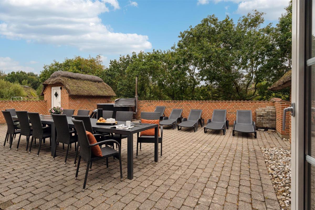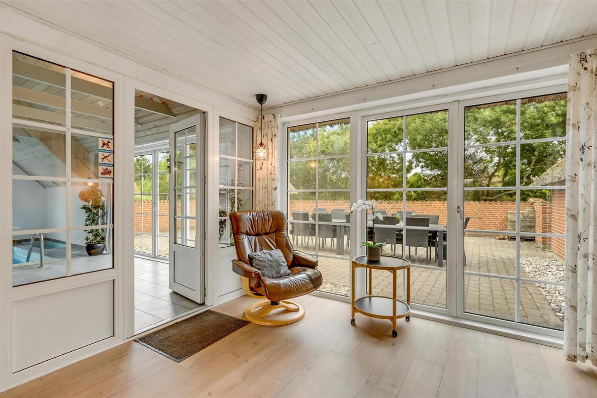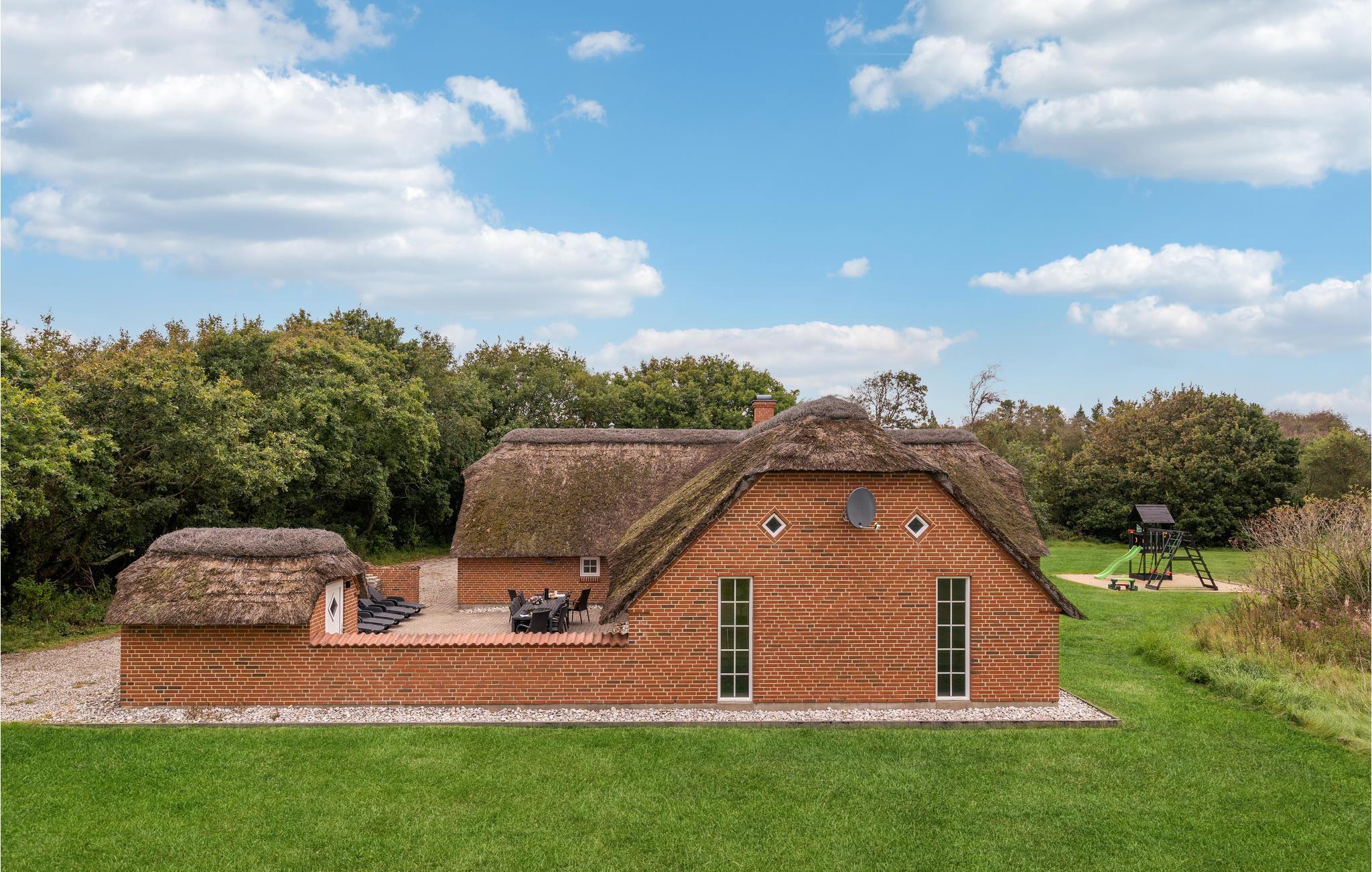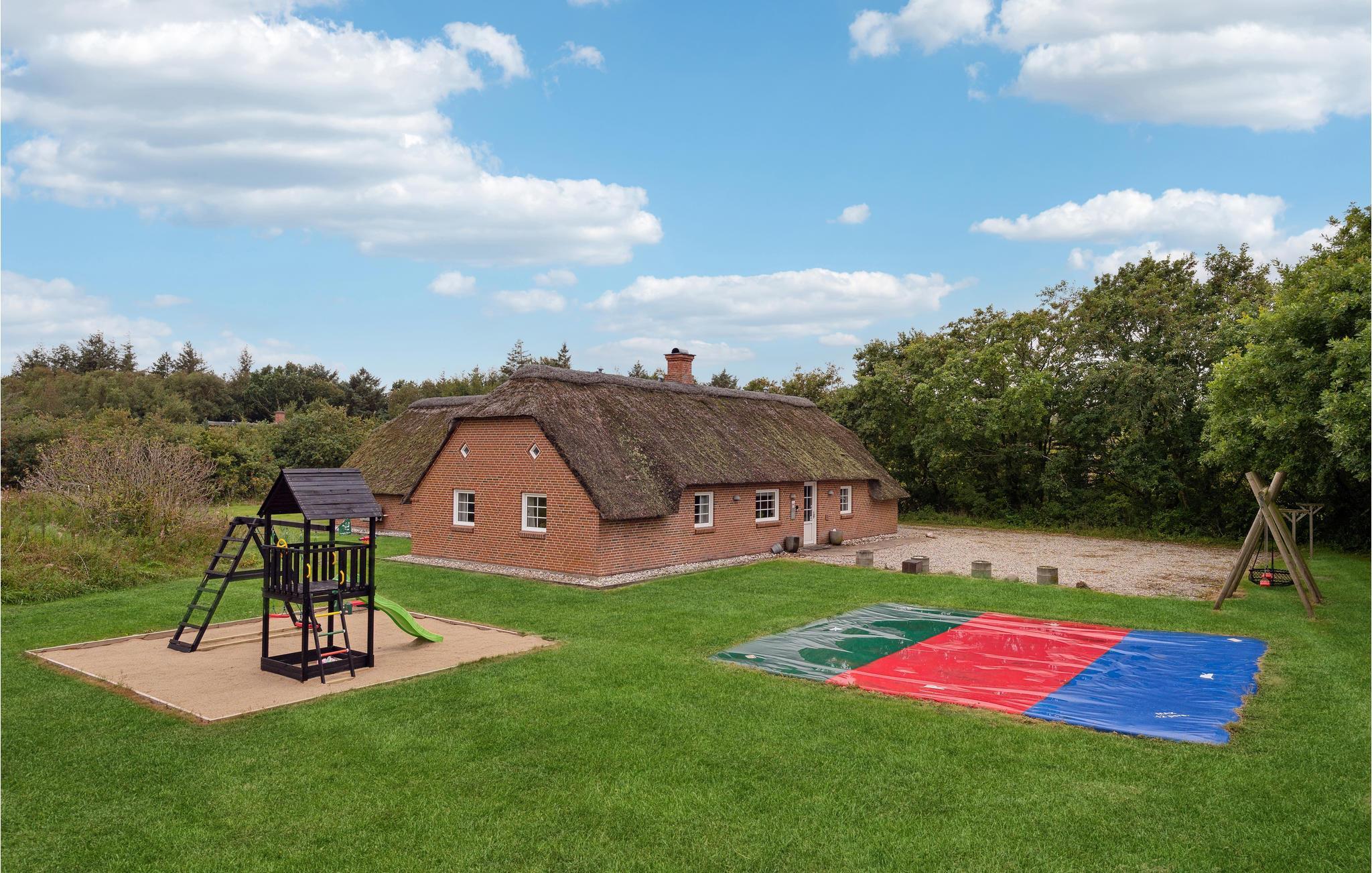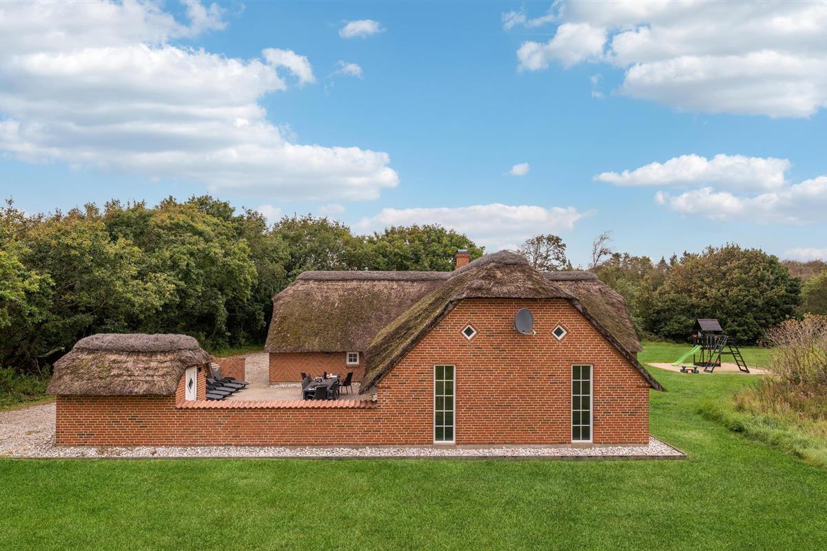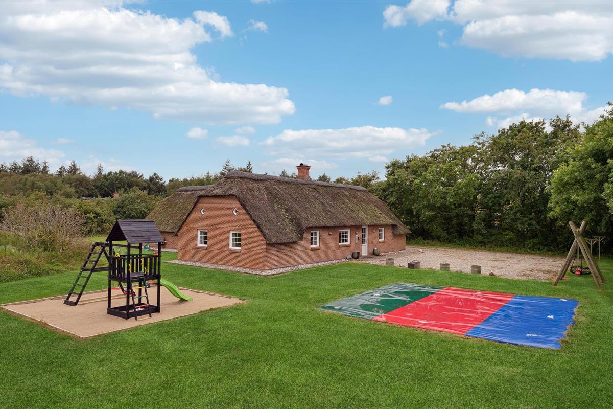 Op een groot perceel in een oud duin- en plantagegebied tussen Søndervig en Thorsminde ligt een rustiek, rietgedekt luxe huis met zwembad, typisch voor het gebied. Het huis heeft zes slaapkamers, drie badkamers en een gezellige keuken die in open verbinding staat met de woonkamer. Direct ervoor ligt het open terras, omgeven door een windscherm. Een zwembad met glijbaan, de sauna en de jacuzzi zullen u ook laten genieten van enkele mooie uren. De omgeving met zijn rijke dierenleven is zeer geschikt voor lange wandel-, fiets- of joggingtochten over de gemarkeerde paden die onder andere leiden naar de Noordzee met een goed badstrand. Direct voor de zee ligt een volledig ongerept duingebied. Er zijn ook kleinere, gevarieerde haventjes in de omgeving waar u van de rust kunt genieten en met de kinderen speeltuinen kunt bezoeken. Er is een hondenbos in Husby. U kunt ook de mooie haven van het vissersdorp Thorsminde bezoeken. Daar vindt u ook het Sct. George jetsam museum.