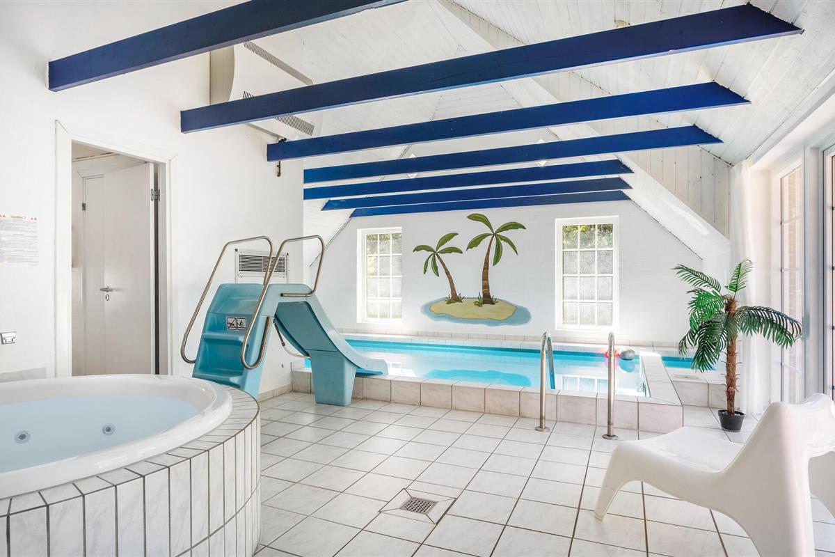 Geniet van een luxe vakantiehuis in Ulfborg met binnenzwembad, sauna, whirlpool en grote tuin.