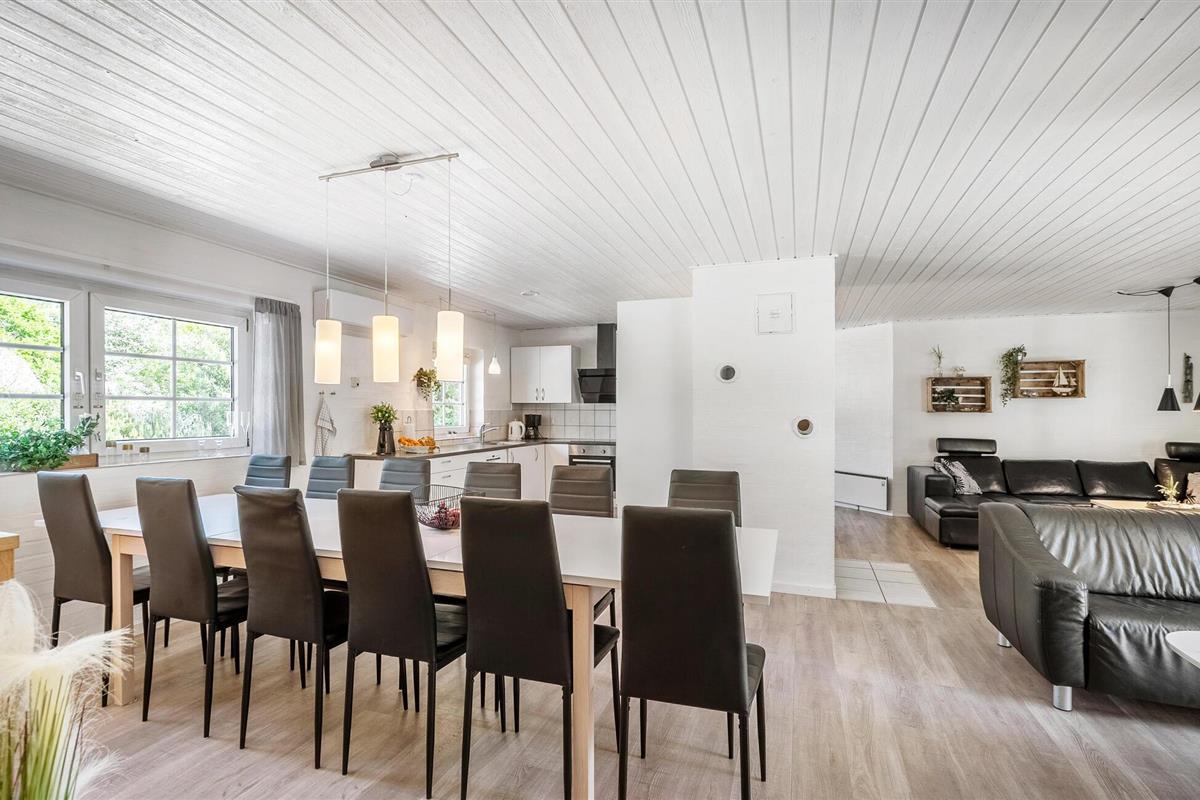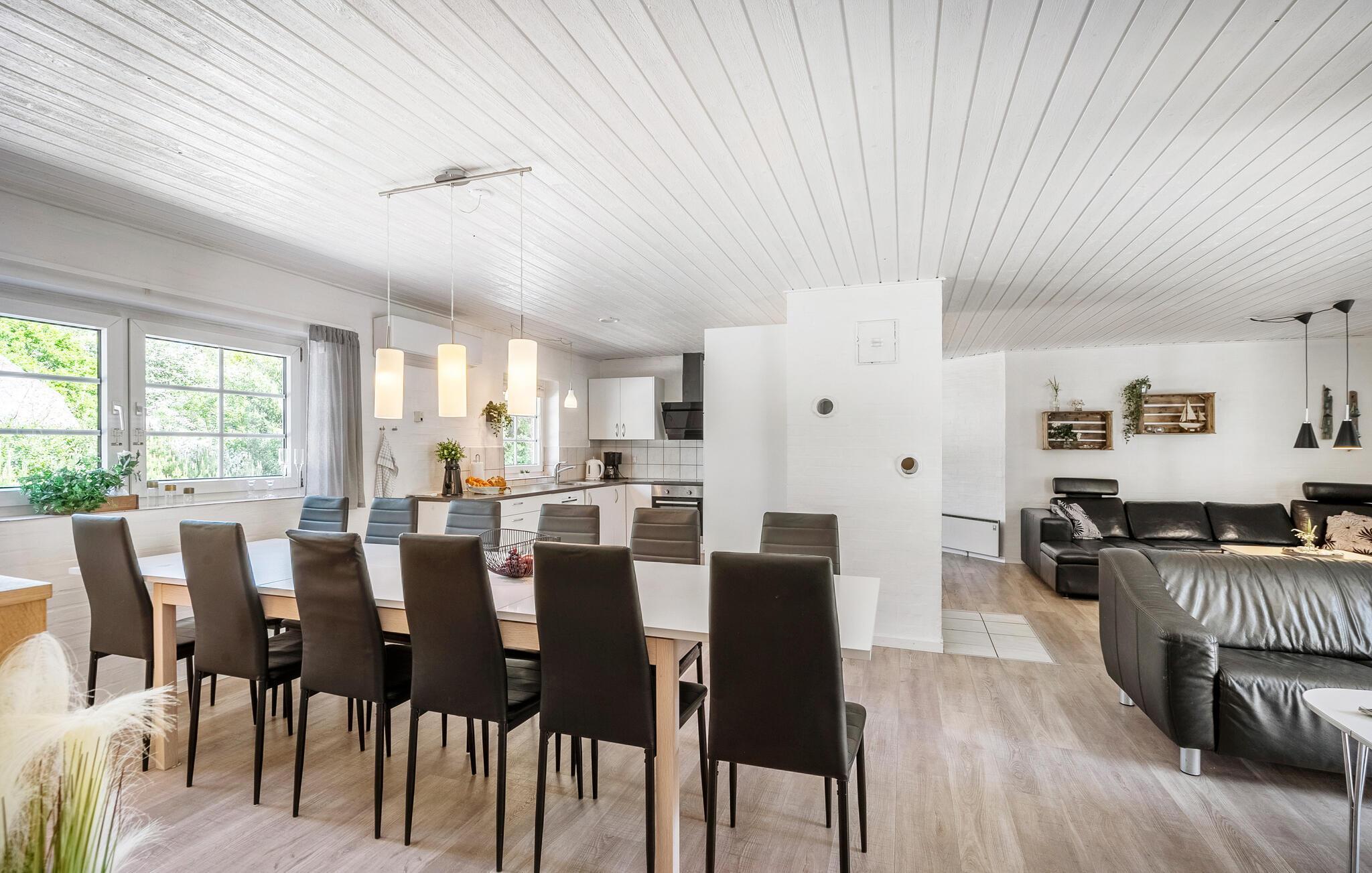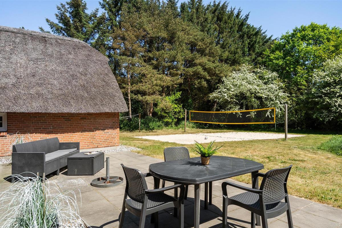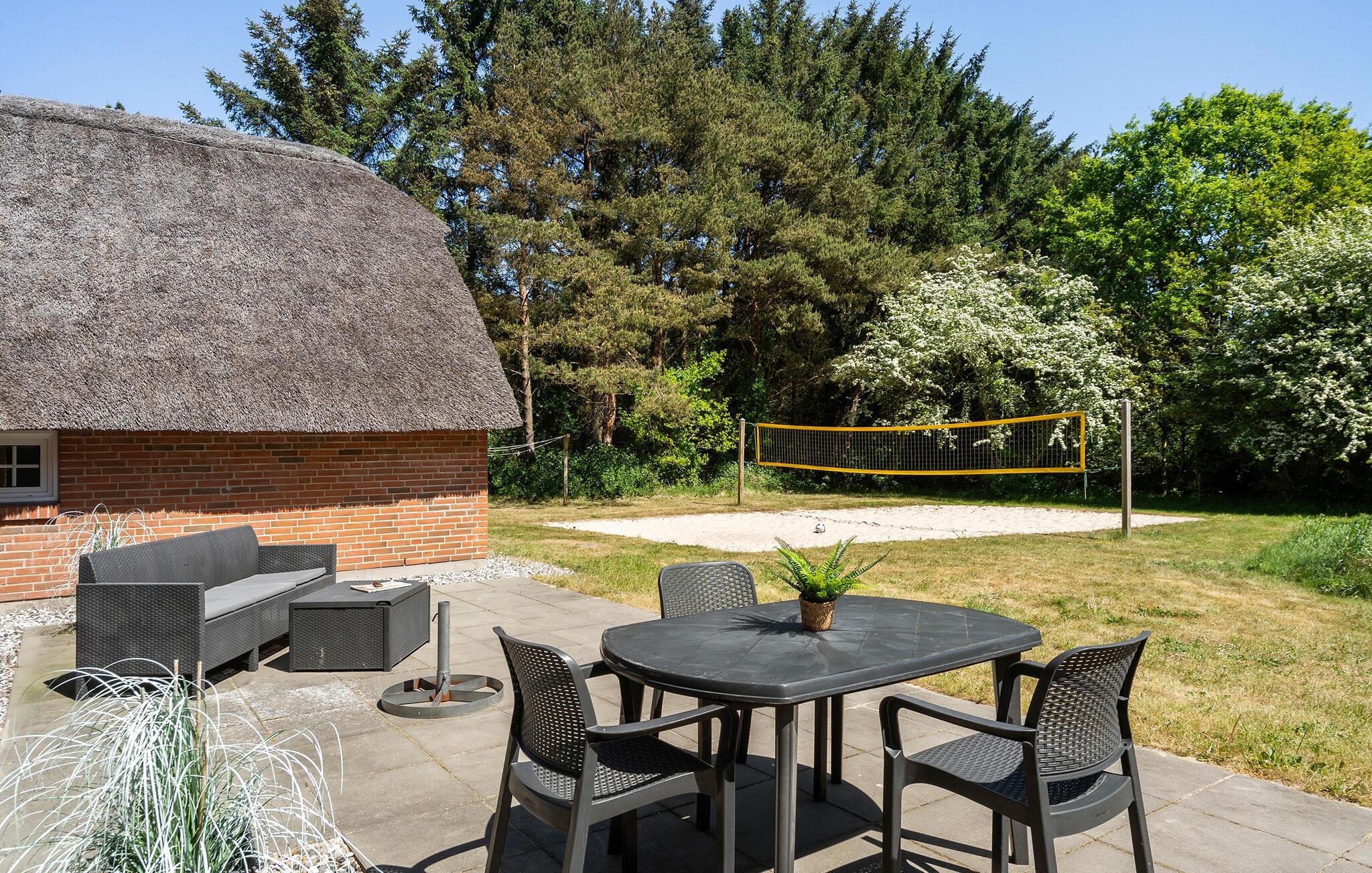 Dit lichte en comfortabele vakantiehuis met rieten dak biedt voldoende ruimte om optimaal te genieten van de charmante extra's, zelfs met een familie van vrienden. Verheug je op gezellige maaltijden aan de lange eettafel, leer je kinderen zwemmen in het binnenzwembad en trakteer jezelf op knusse momenten in de sauna of whirlpool. Kom samen voor spelletjesavonden of een film op de bank of trek je terug in je favoriete hoekje met een boek.