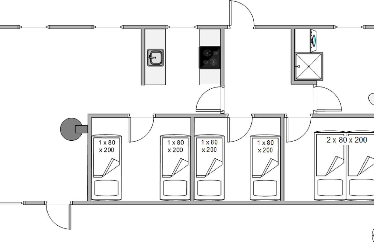 The heart of the home is the spacious living room with its open-plan kitchen, where you can cook together and enjoy evening meals at the dining table. The sofa offers a perfect spot to relax and put your feet up. During cooler months, the wood-burning stove provides comfortable warmth and a lovely atmosphere.