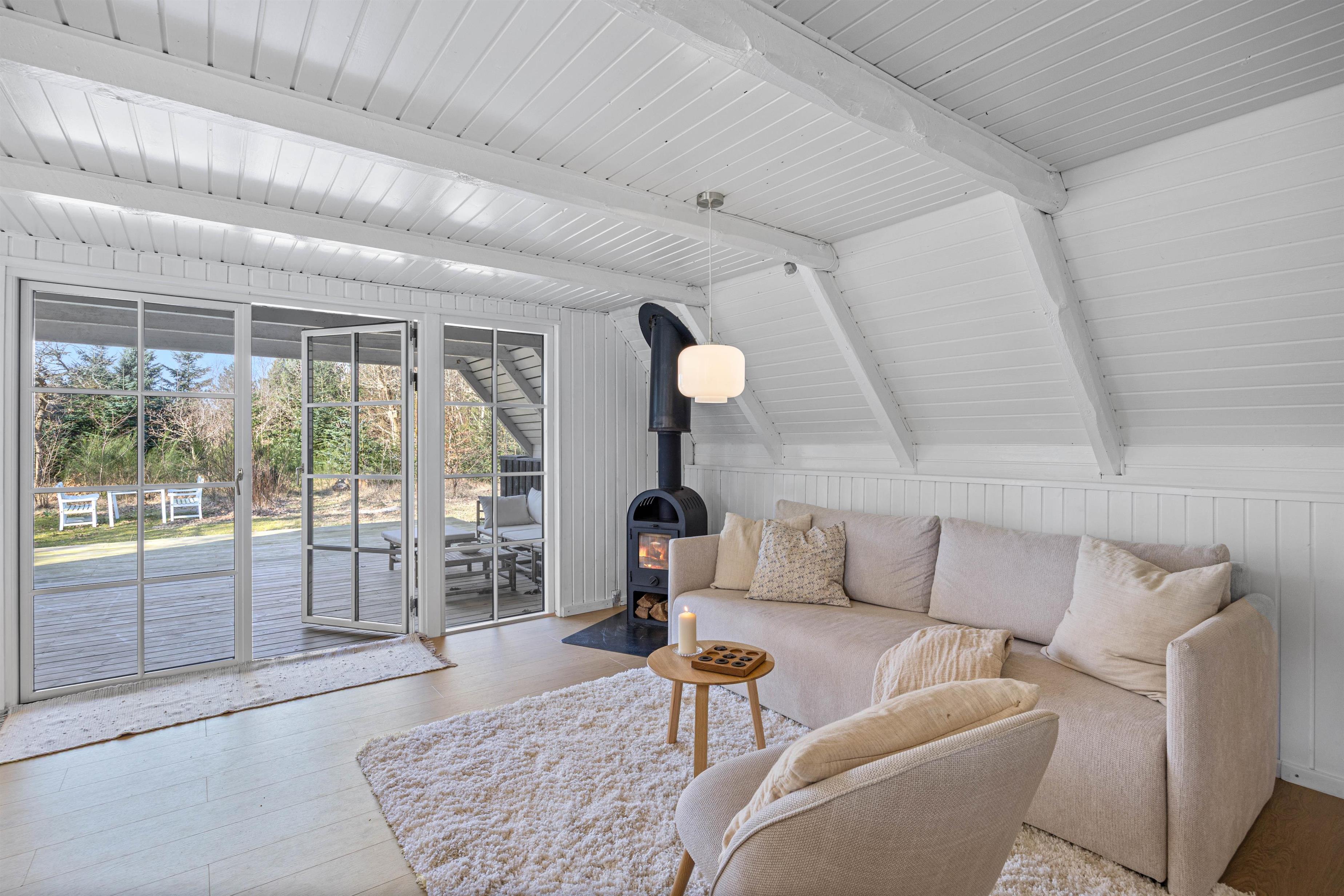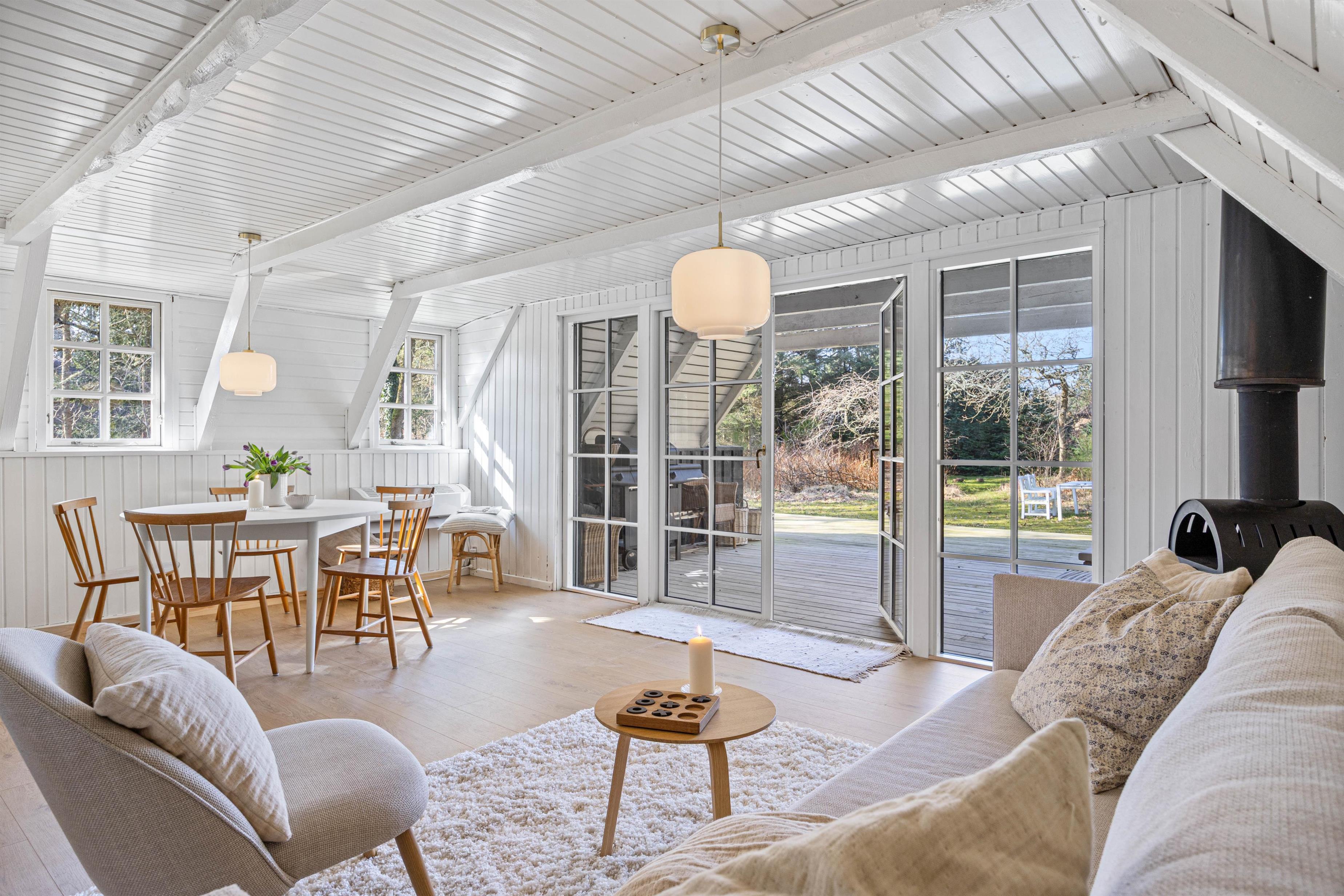 The open-plan design creates a perfect space for spending time together. Whether you're cooking or enjoying game nights, everyone can be involved thanks to the flowing layout. The dishwasher takes care of the cleaning up, leaving you free to focus on your holiday activities. For cooler days, the wood-burning stove adds extra cosiness, whilst an energy-efficient air-to-air heat pump maintains comfortable temperatures throughout.