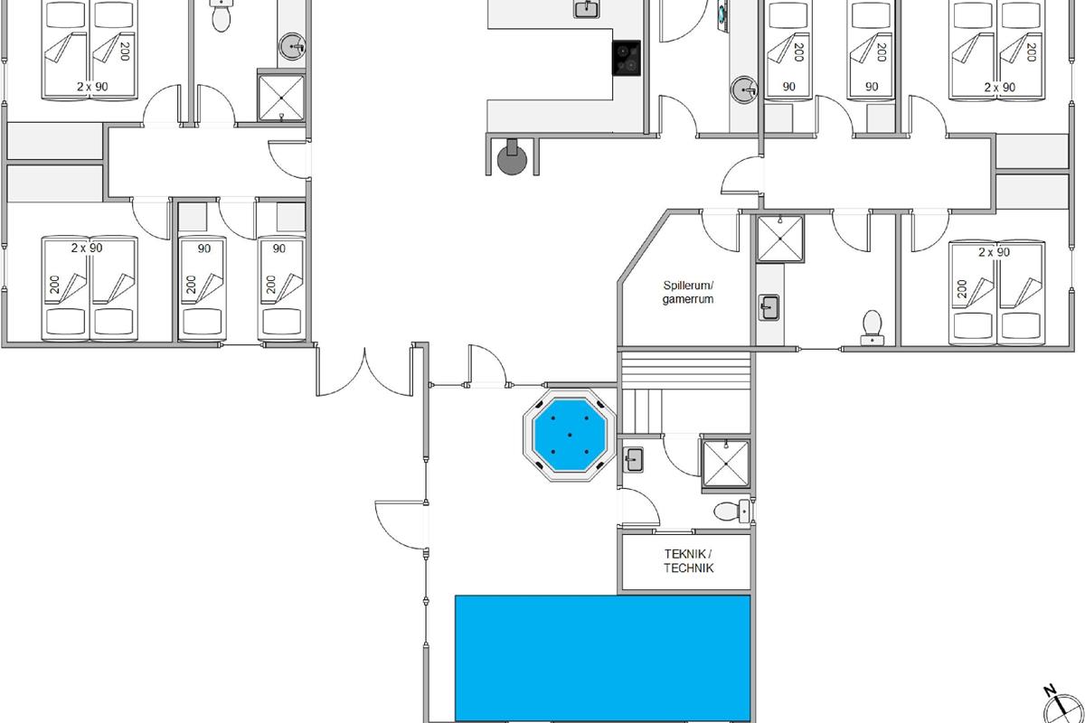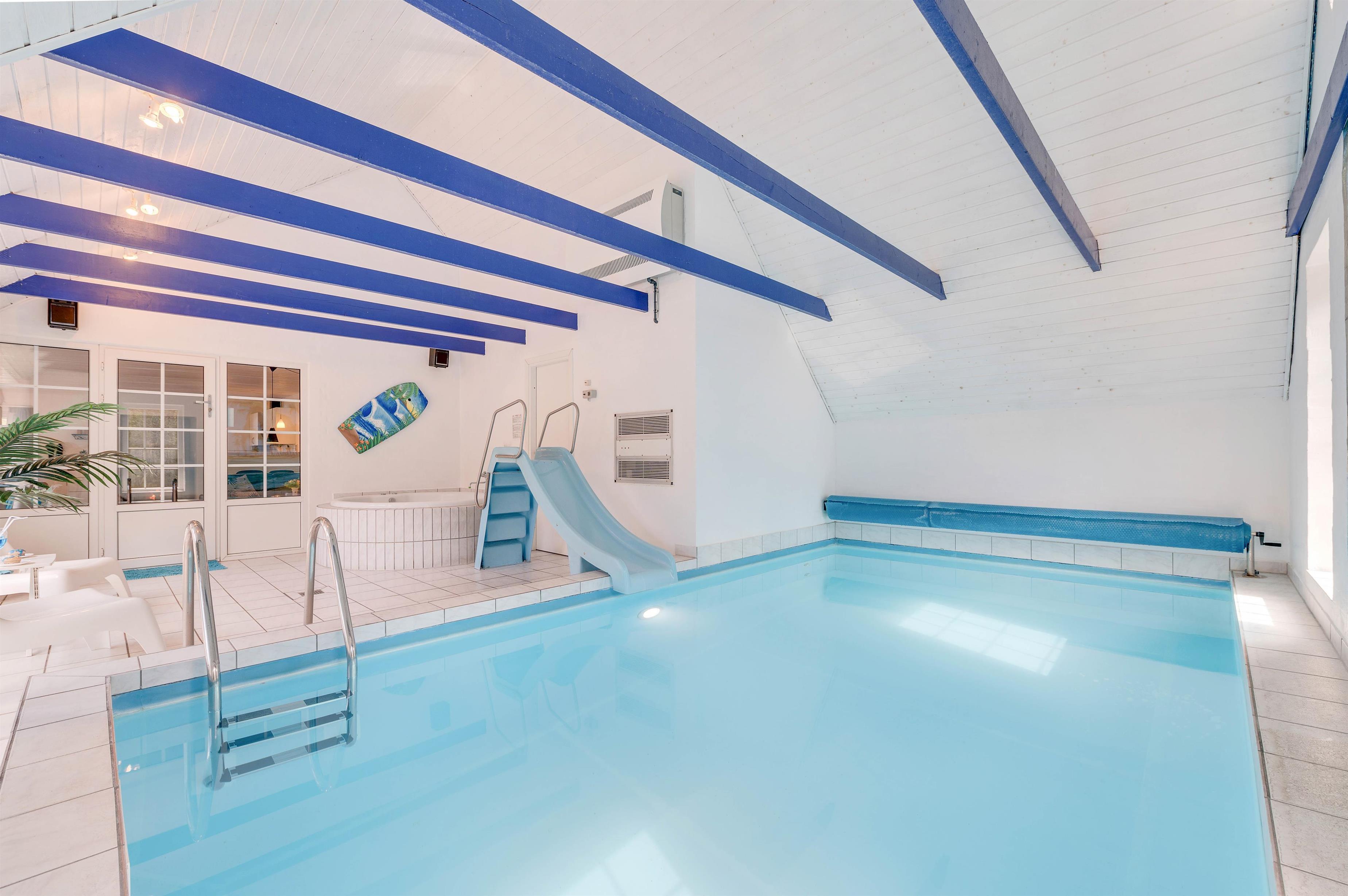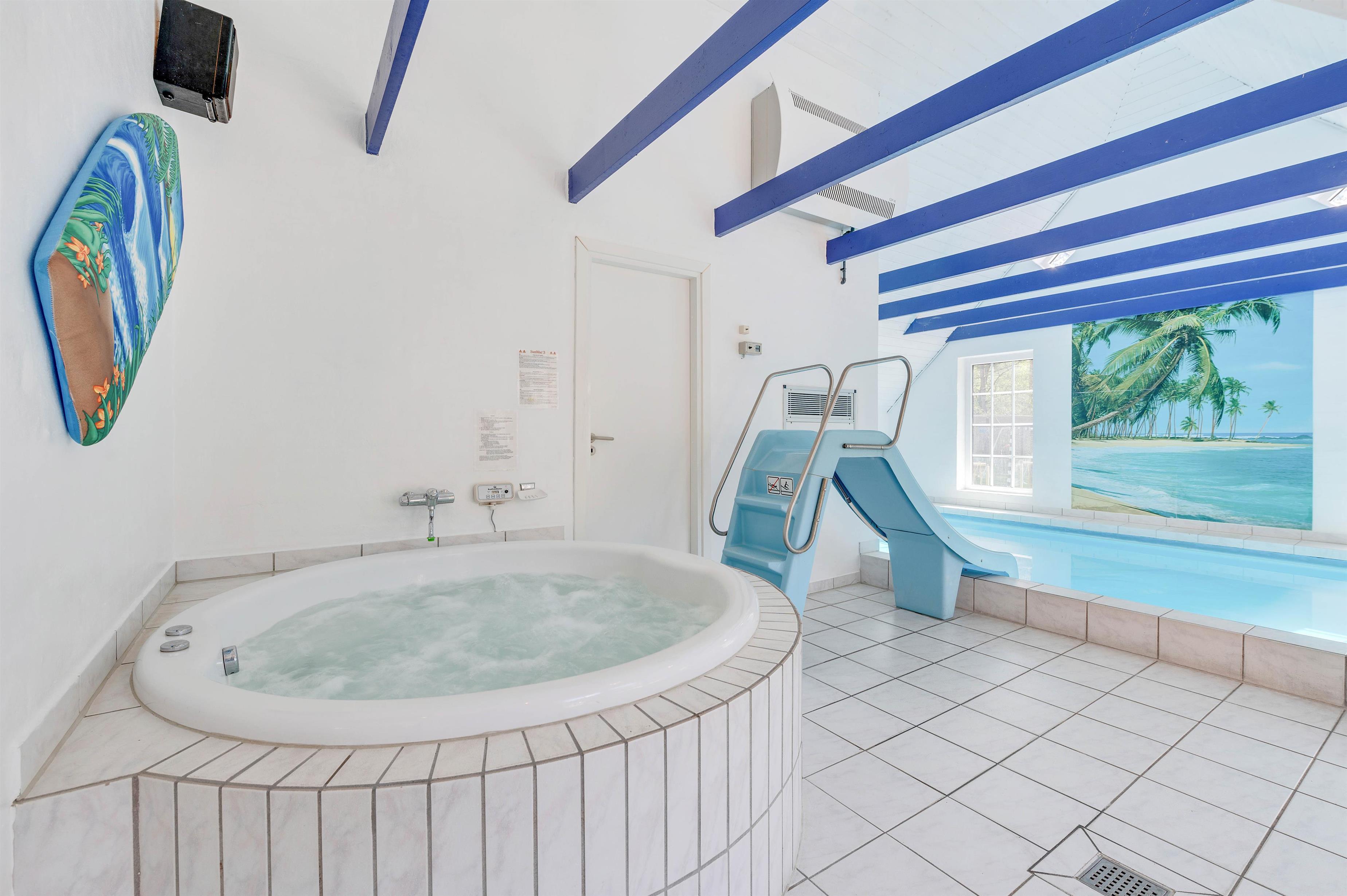 This beautiful holiday home at Bækbyvej 17 in Vester Husby features a whirlpool, sauna and swimming pool, and was renovated in 2021. The holiday home is bright and cheerfully furnished, equipped with all modern conveniences to enhance your holiday, including a washing machine, tumble dryer, dishwasher and flat-screen TV with satellite connection. There's also a gaming den with LED lighting, PlayStation, Wii and games. The holiday home offers 12 beds across 6 bedrooms, comprising 4 rooms with double beds and 2 rooms with twin beds.