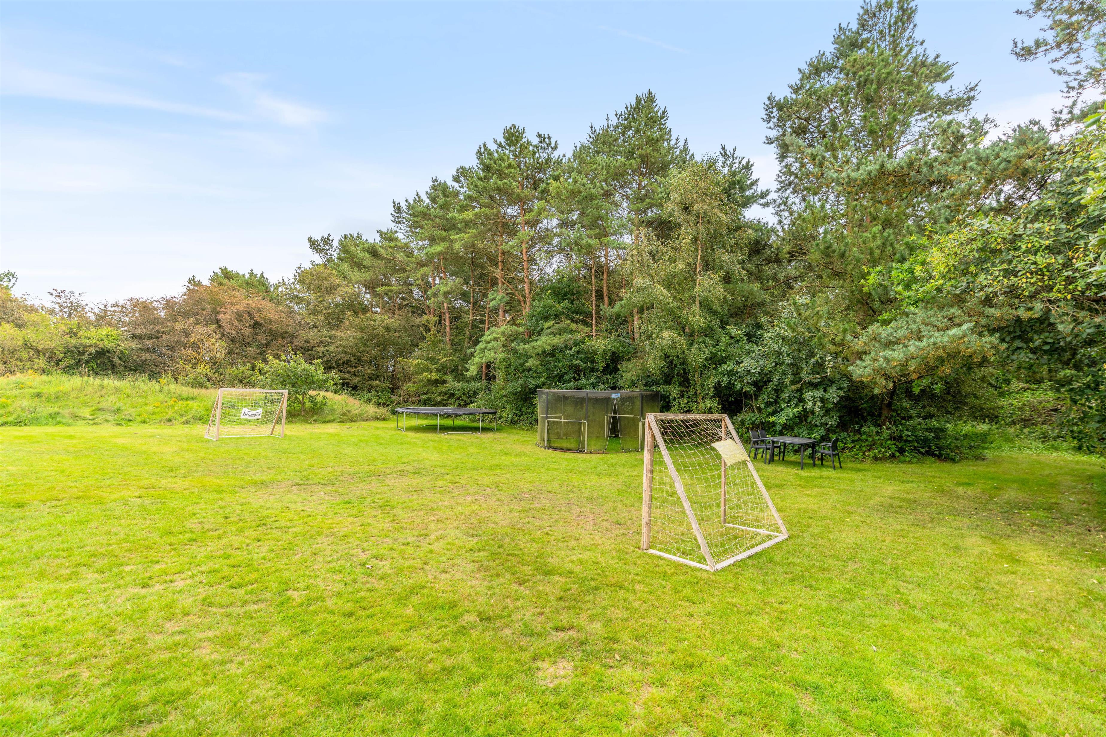 Both the living room and pool area offer access to the sheltered main terrace. This is an ideal spot for all meals, near the swings and sandpit. The new open terrace invites relaxation on sun loungers and lounge furniture, where you can enjoy a good cup of coffee or a chilled glass of wine while others play beach volleyball or football, or bounce on the trampoline.