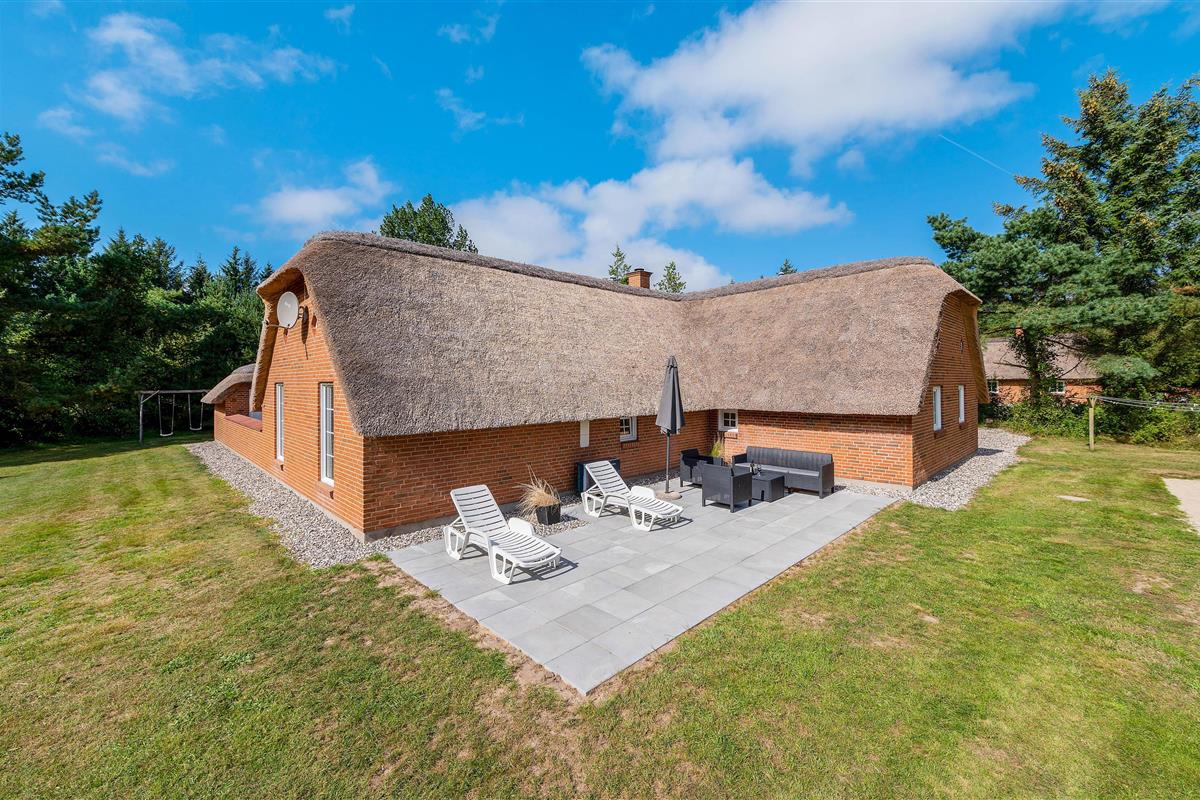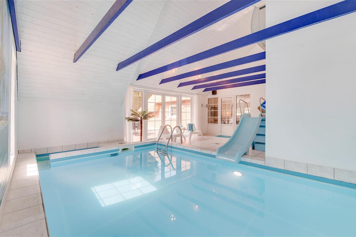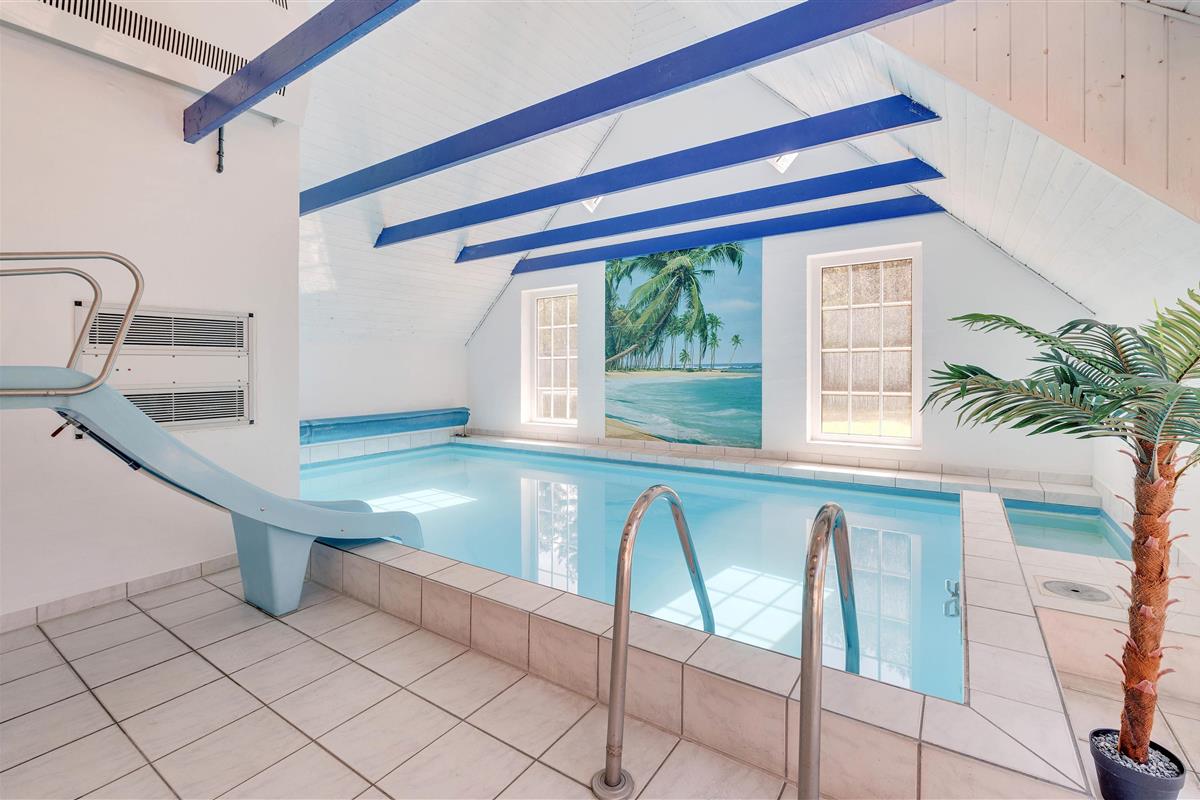The house has 3 bathrooms and the swimming pool features a swim trainer and slide. The spacious pool area includes a wellness zone and sauna, completing the holiday spa experience. The holiday home sits on a 5,500 square metre plot, close to the rushing North Sea with its vast white sandy beaches and a peaceful swimming lake. Two terraces allow you to enjoy the sunshine throughout the day.
