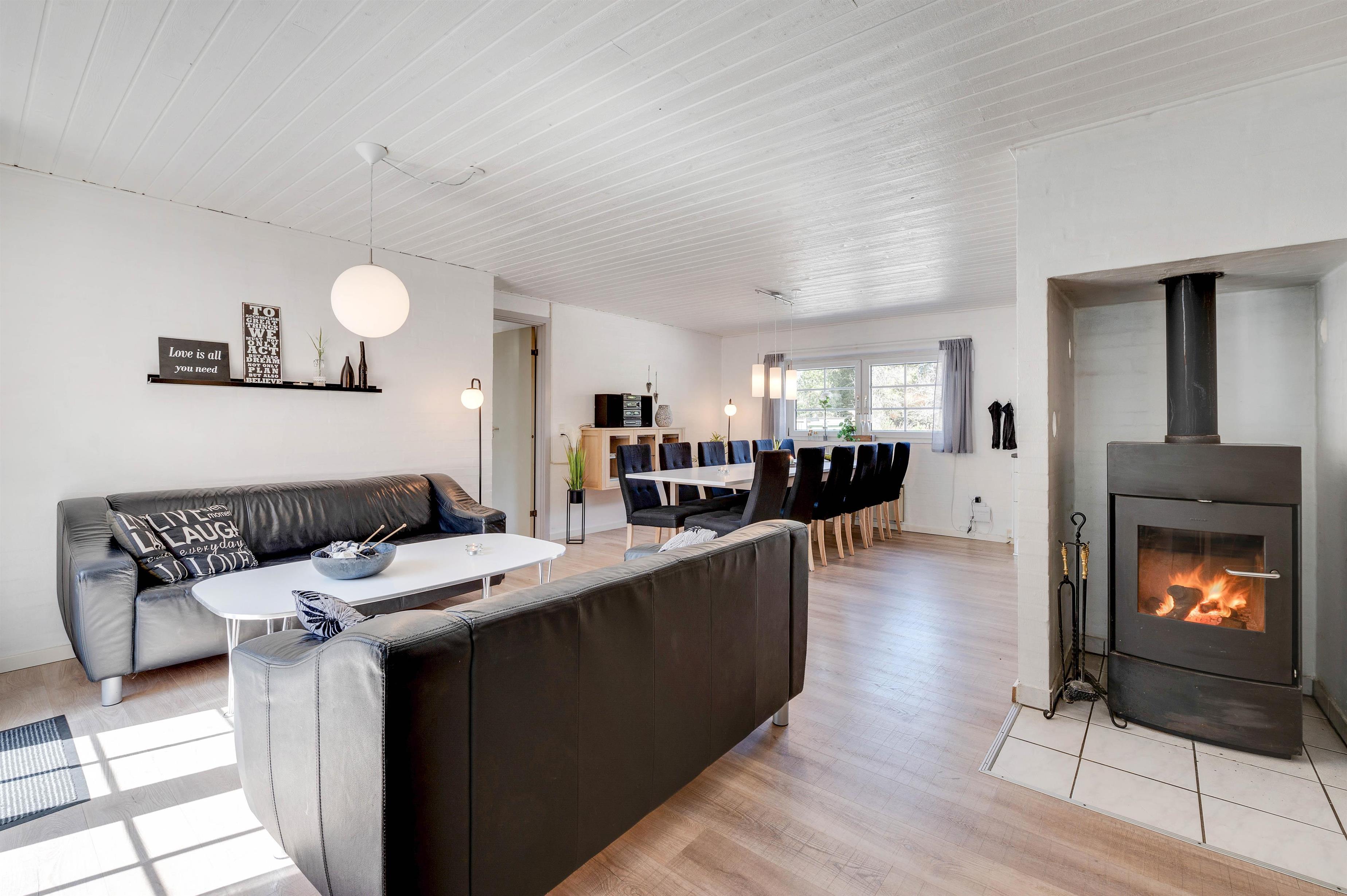 The large wood-burning stove in the centre of the living room invites you to relax in front of the flickering flames, visible from the open-plan kitchen. You'll certainly spend many cosy moments here. The large glass partition between the living room and pool area allows you to keep an eye on little ones while they swim. Thanks to the holiday home's heat pumps, energy consumption is lower than usual.