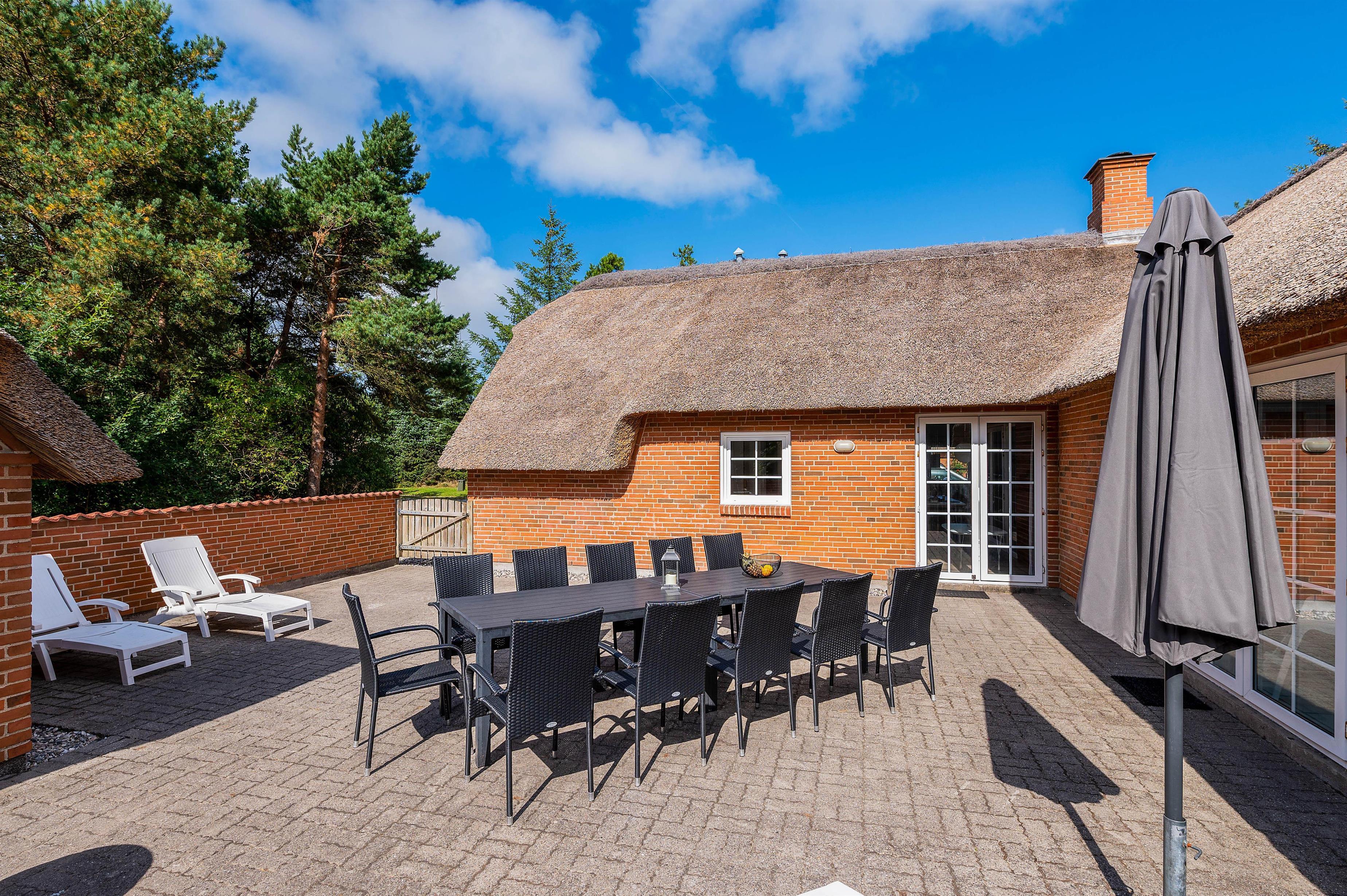 If you're dreaming of a beautiful holiday with family or friends in the dune landscape of West Jutland, this holiday home at Bækbyvej 17 in Vester Husby is definitely worth a closer look! The holiday home accommodates up to 12 people and features a wellness area, sauna and swimming pool. Your two dogs are also very welcome!