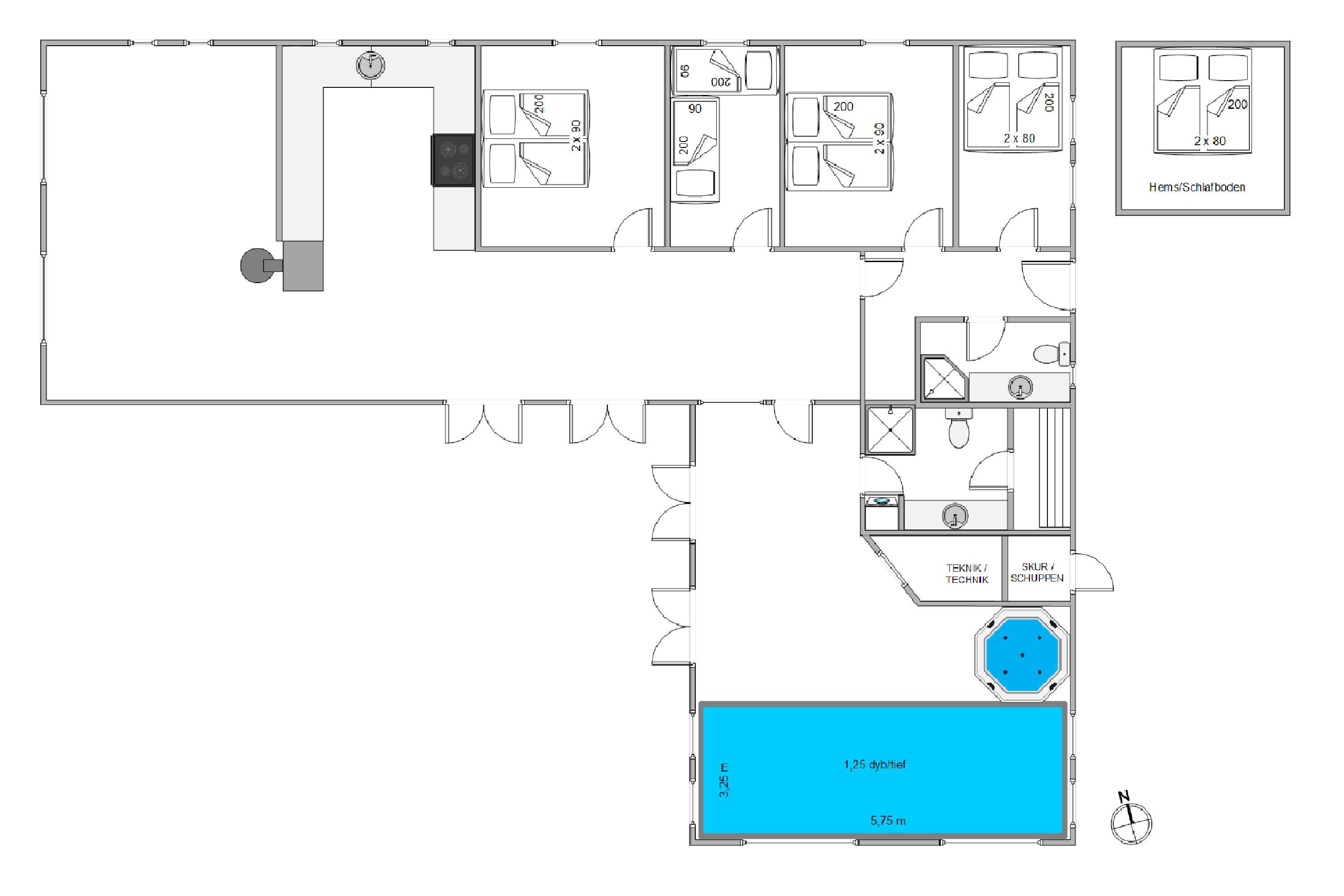 Just minutes from Vester Husby beach, this wonderful thatched roof holiday home with swimming pool, fixed hot tub and sauna was renovated in 2020. Spanning 196 square metres, it accommodates up to 10 people, and two dogs are also welcome at Gaffelbjergvej 83. If you're arriving by electric car, you can use the charging point at the holiday home.