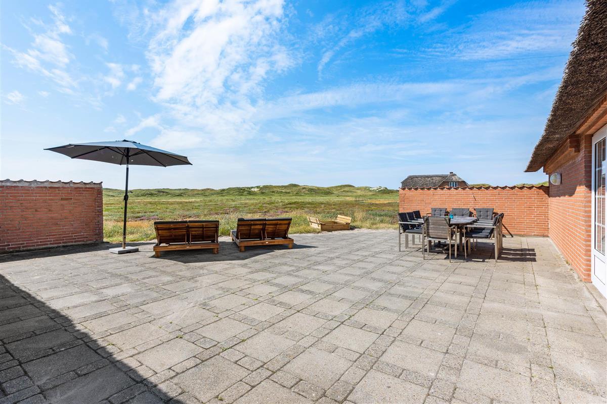 From the terrace, you'll enjoy magnificent views of the surrounding area. The open heathland and dunes offer spectacular vistas, accompanied only by the sound of larks singing and waves breaking. On stormy days, while securing loose items is advised, it's worth taking a walk to the nearby beach. It's simply fantastic to face the wind and experience nature's forces up close.