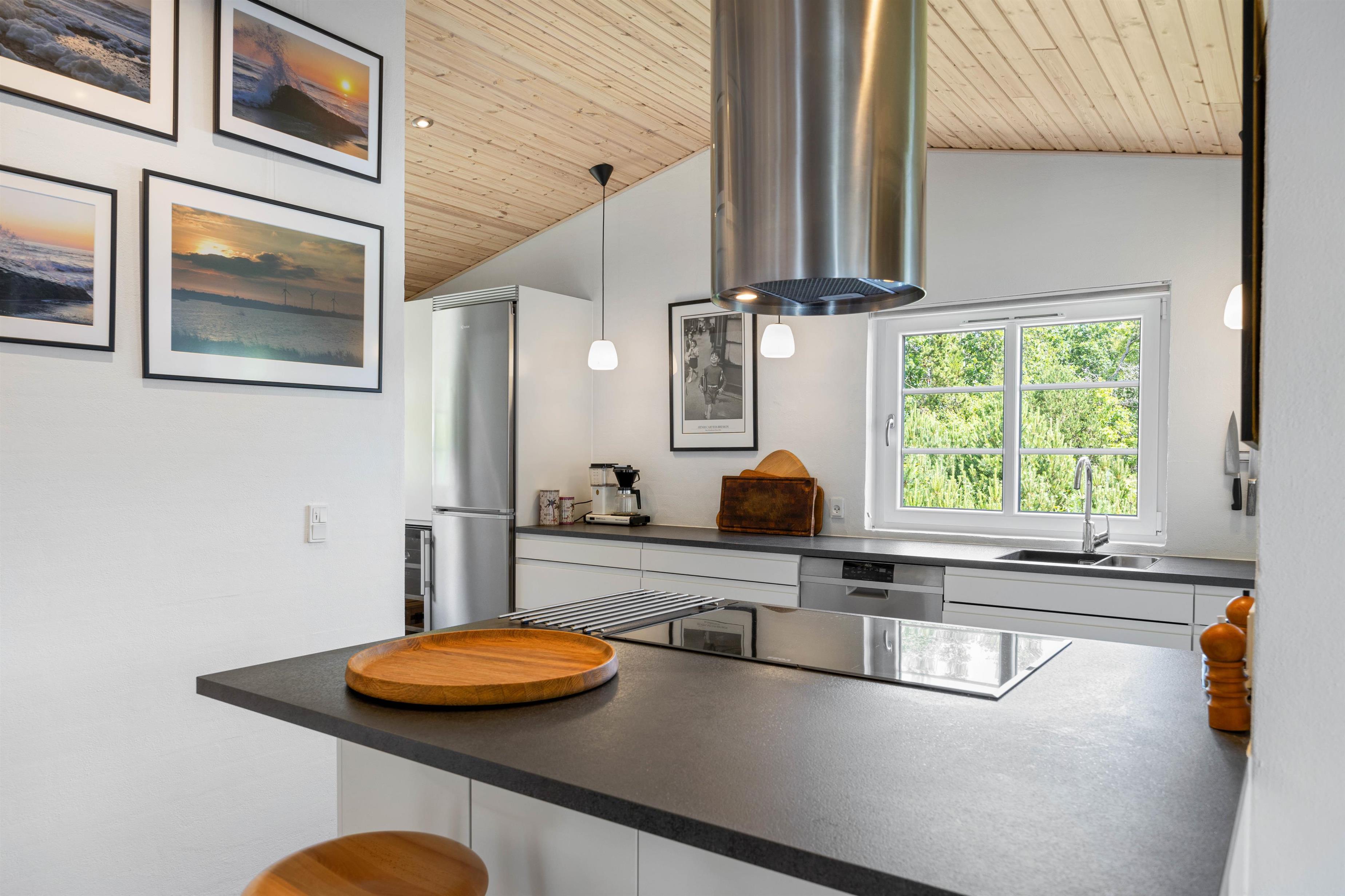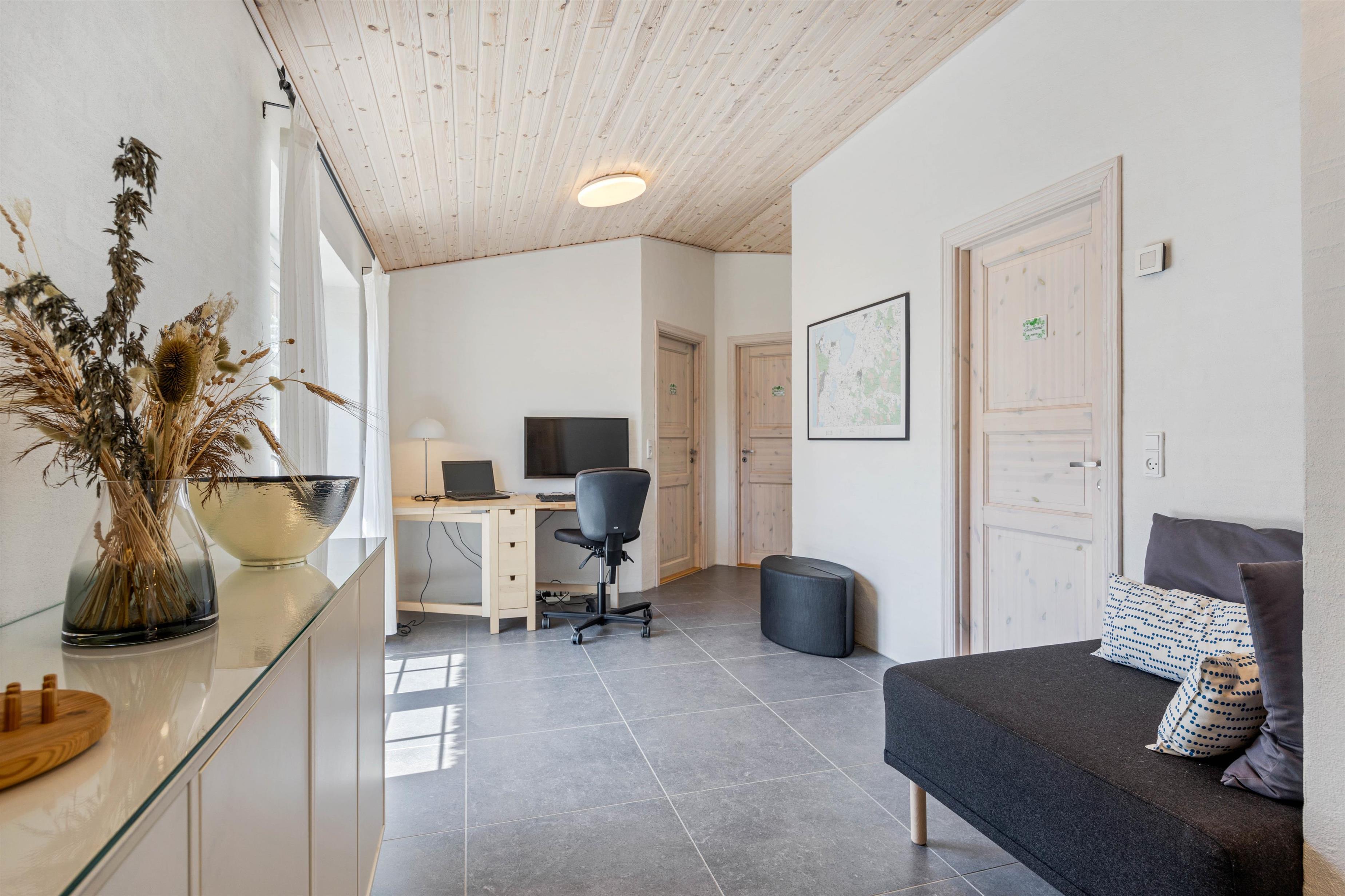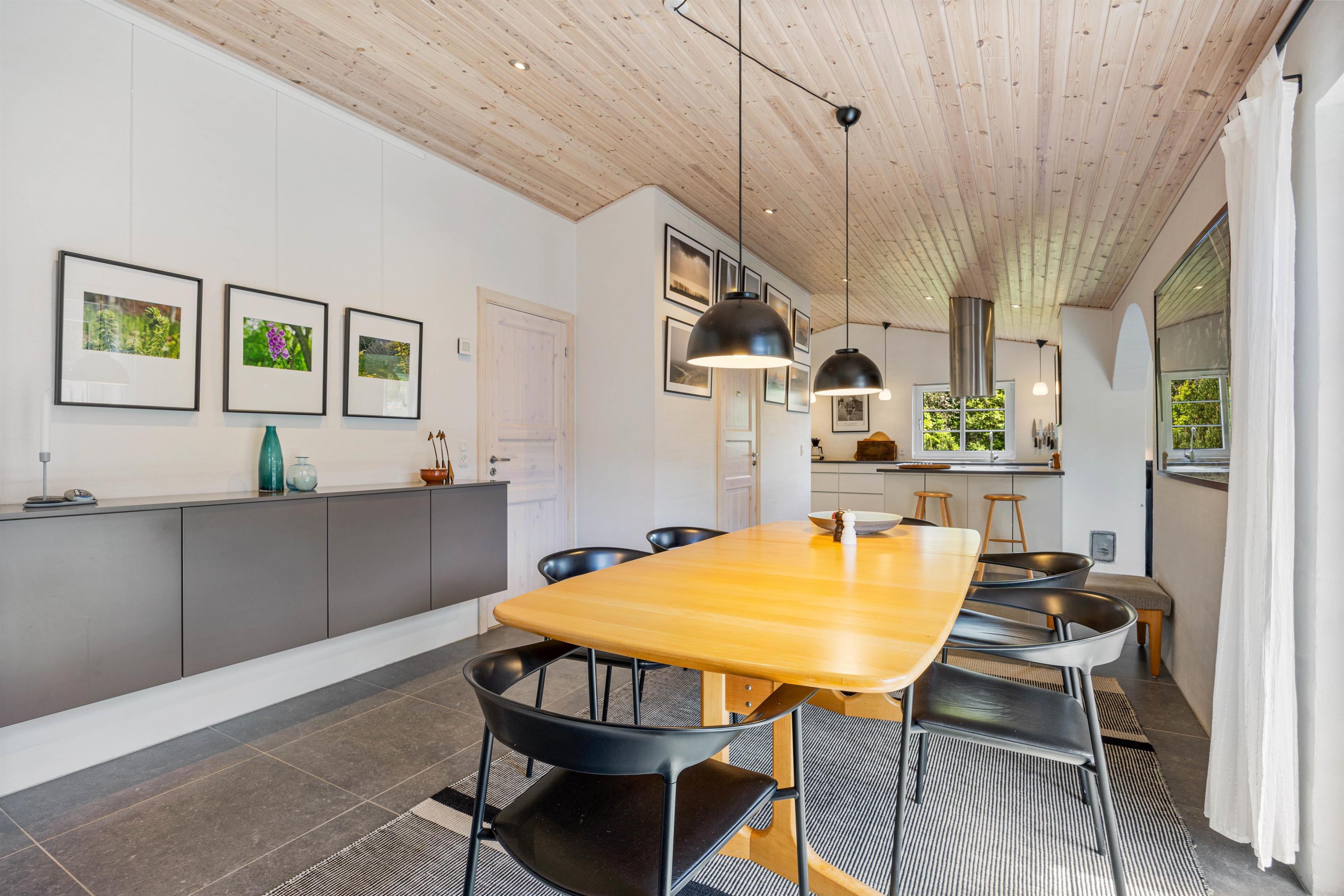 The holiday home in Husby accommodates up to six people and is perfect for families or groups of friends. The heart of the holiday home is its open-plan living space. Here you can spend quality time together, whether trying new recipes in the well-equipped kitchen, crowning the games night champion at the dining table, or simply relaxing on the sofa with a good book. During cooler evenings, the wood-burning stove creates a cosy and warm atmosphere.
