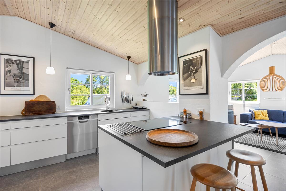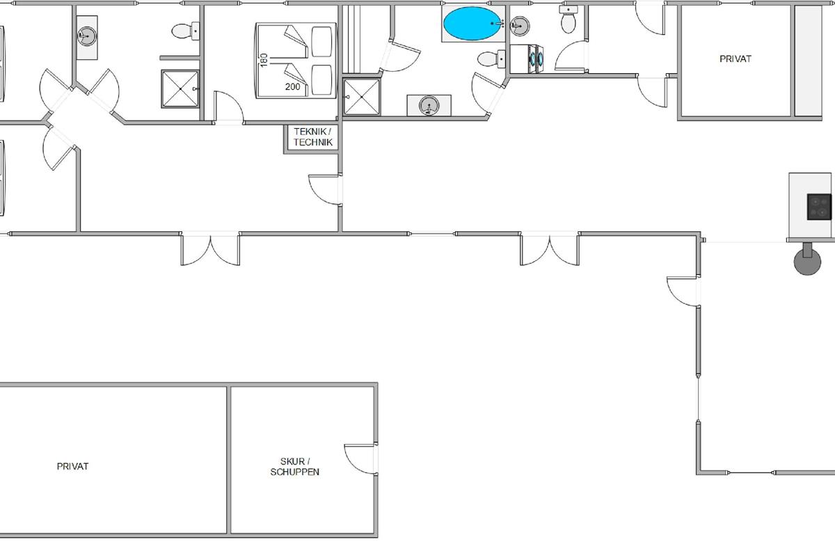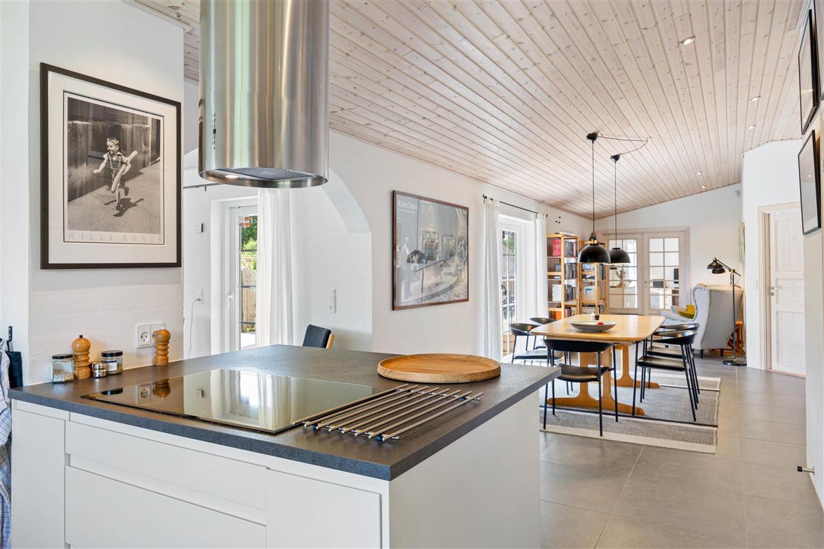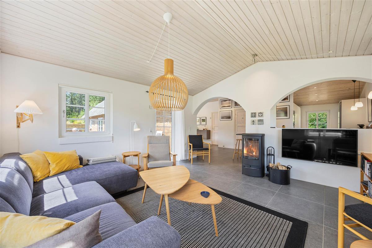 The holiday home in Husby accommodates up to six people and is perfect for families or groups of friends. The heart of the holiday home is its open-plan living space. Here you can spend quality time together, whether trying new recipes in the well-equipped kitchen, crowning the games night champion at the dining table, or simply relaxing on the sofa with a good book. During cooler evenings, the wood-burning stove creates a cosy and warm atmosphere.
