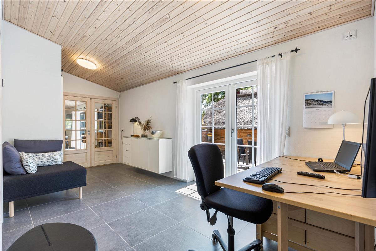 The holiday home in Husby is perfectly located for various activities. The beach is approximately 0.75 miles (1,200 metres) away, ideal for refreshing morning runs or extended walks. Søndervig is about 1.2 miles (2 km) away, offering a well-stocked supermarket and boutique shops perfect for browsing. Children will surely enjoy a day at the Lalandia water park.