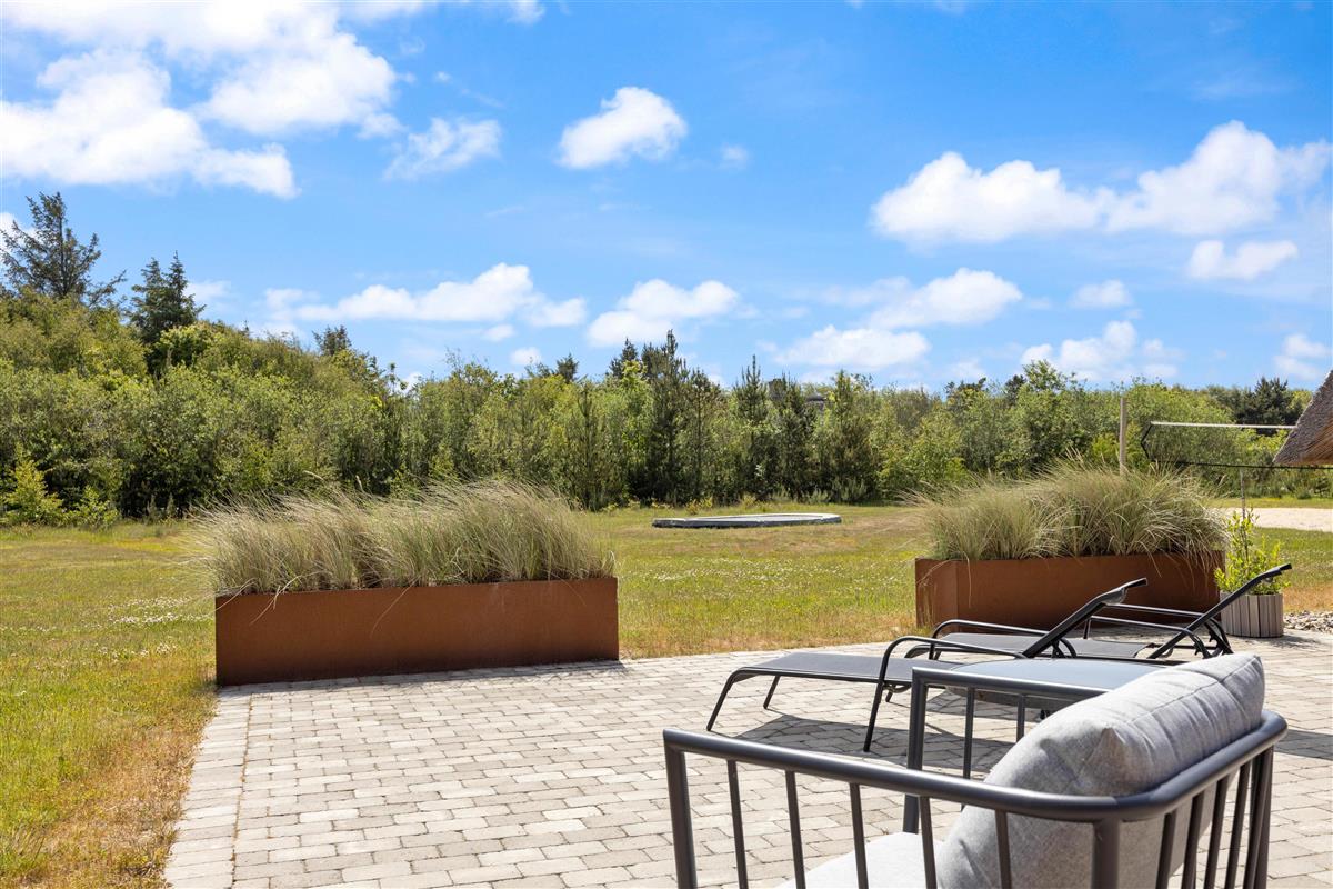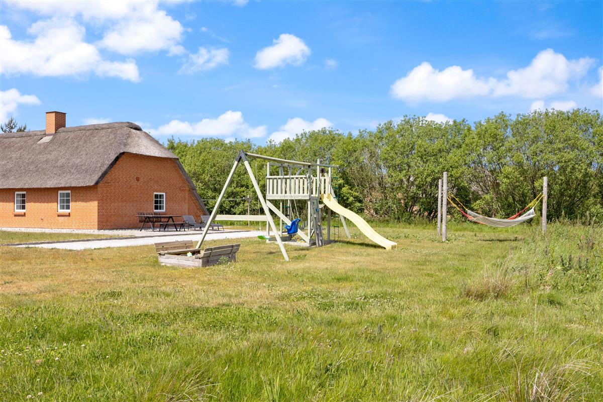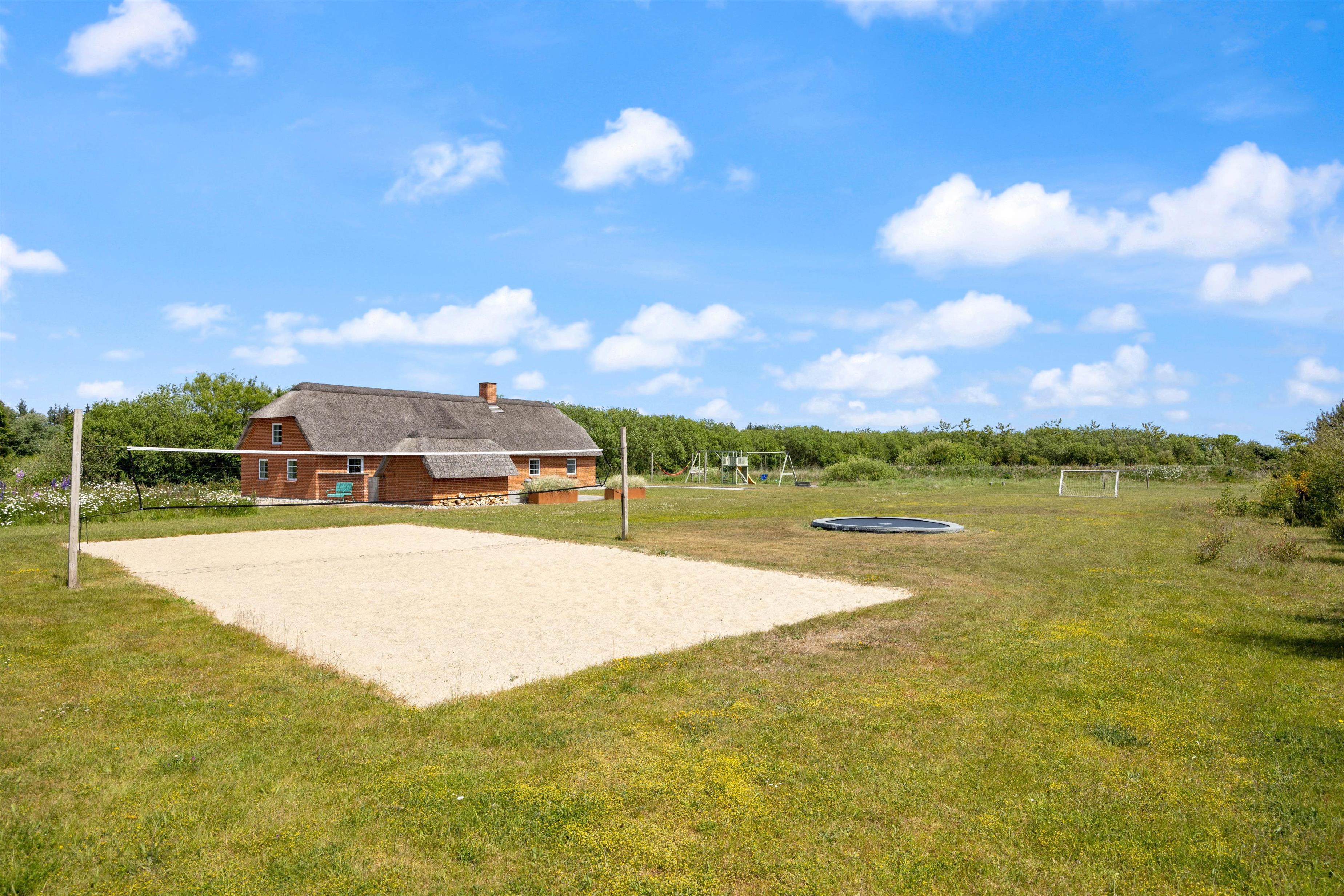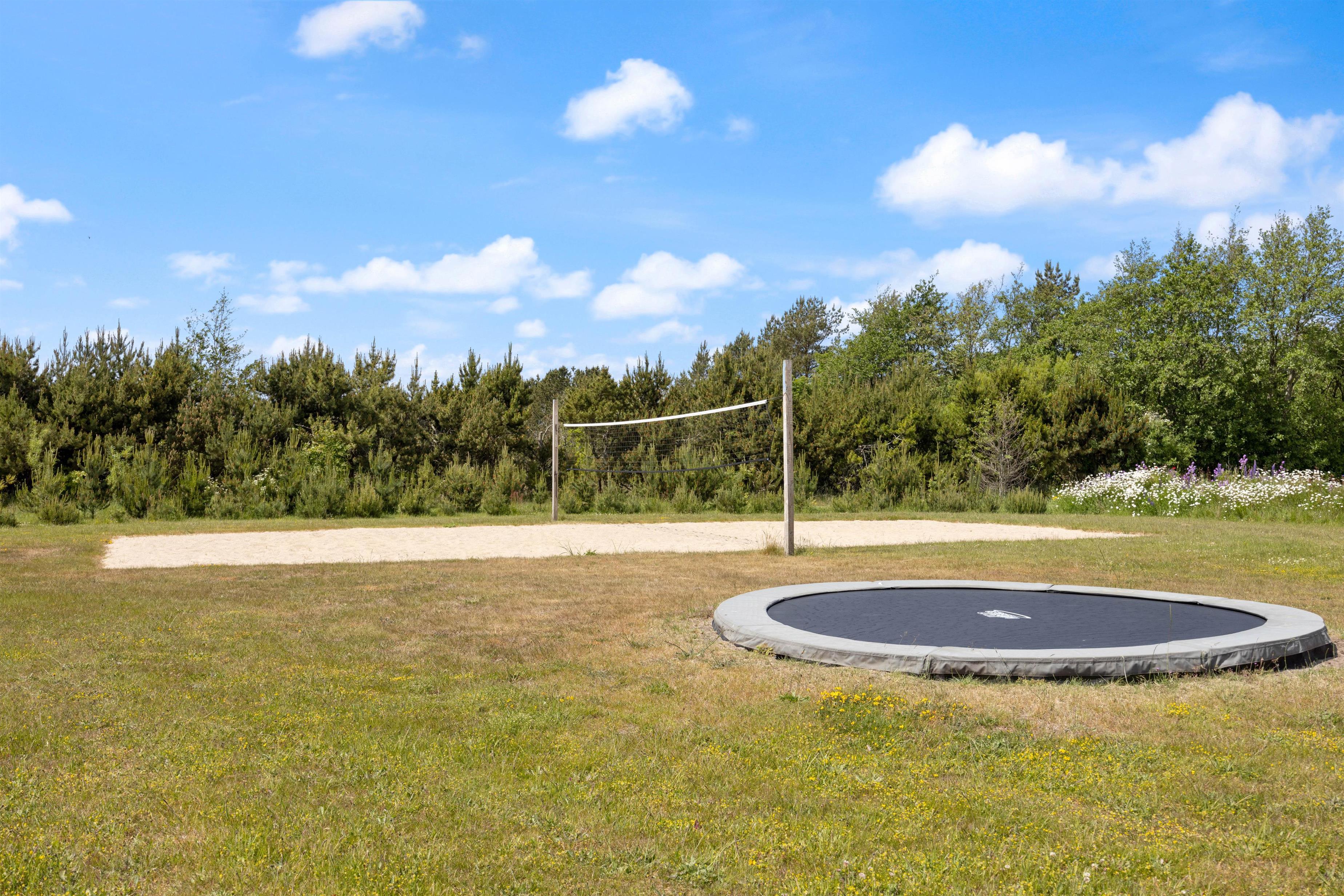 The holiday home at Grævlingevej 35 sits on expansive natural grounds of over 8,300 square metres with extensive lawn areas, perfect for beach volleyball, pétanque and football. A sandpit, trampoline, and swing set will keep your children thoroughly entertained.
