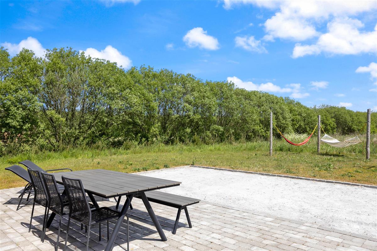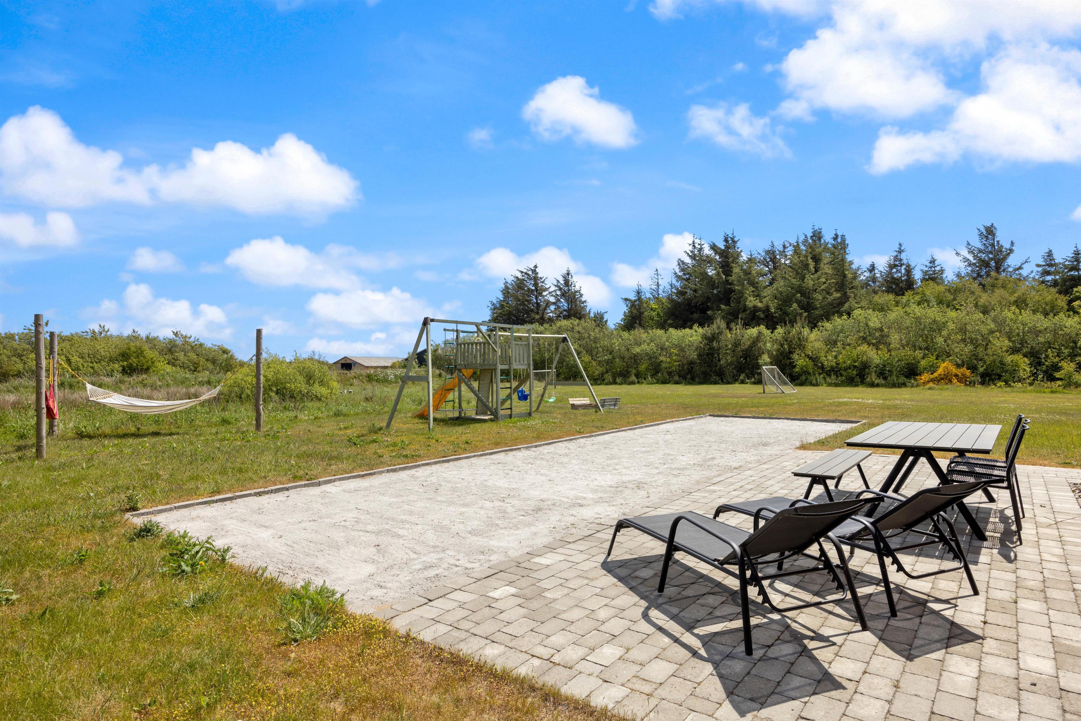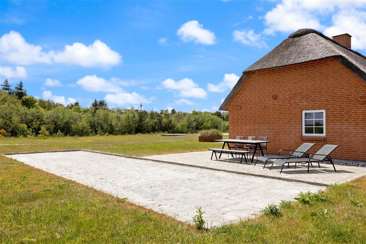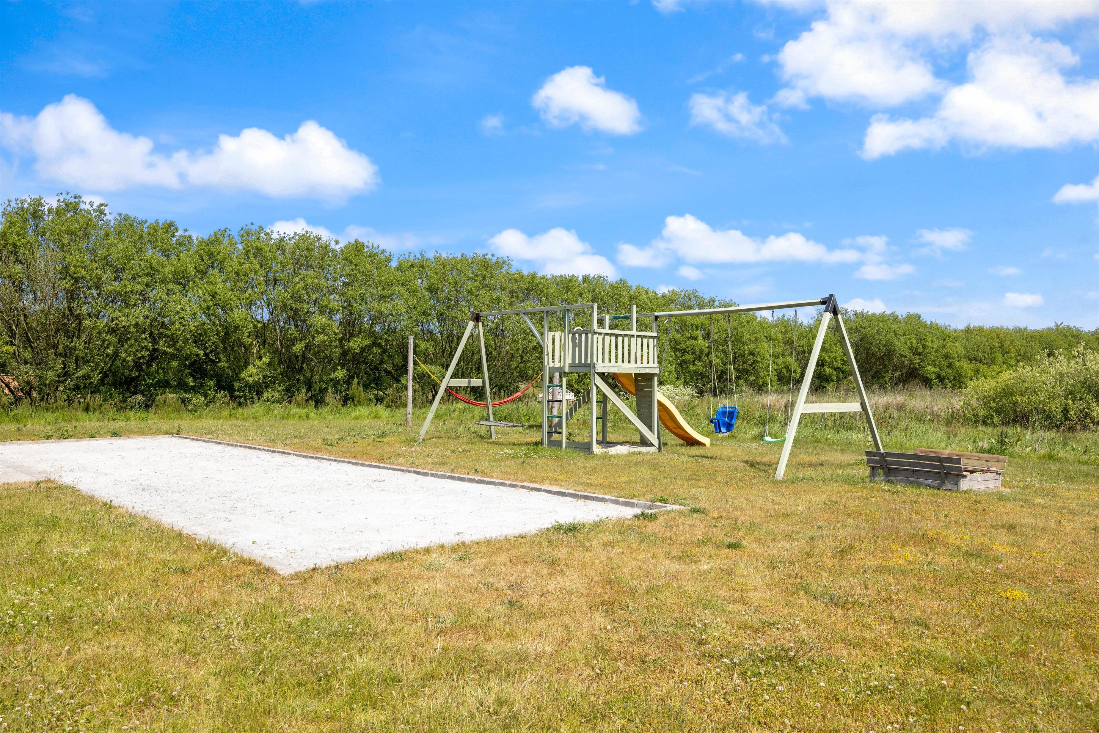 The holiday home at Grævlingevej 35 sits on expansive natural grounds of over 8,300 square metres with extensive lawn areas, perfect for beach volleyball, pétanque and football. A sandpit, trampoline, and swing set will keep your children thoroughly entertained.
