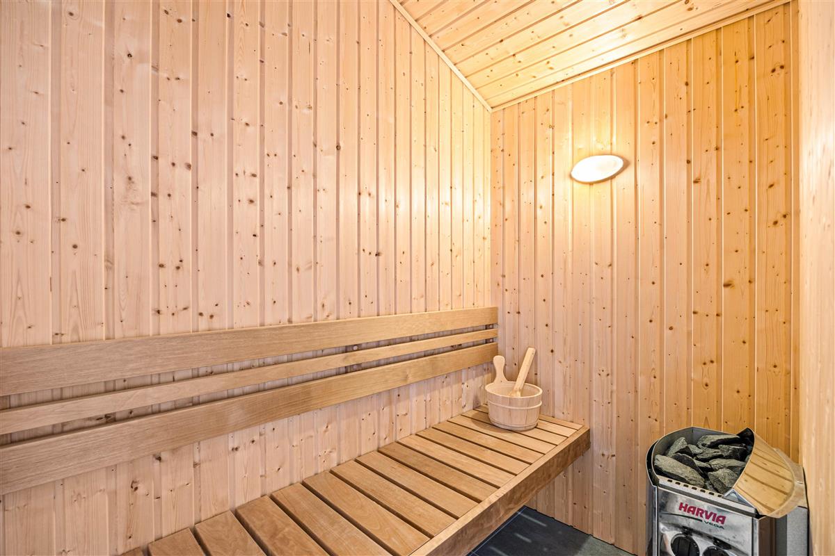 There are two bathrooms with underfloor heating, one of which features a wellness area. Here you'll find a two-person whirlpool and a compact sauna where you can warm up after an exciting day out.