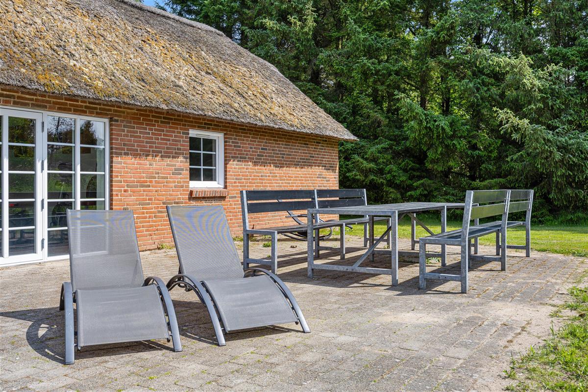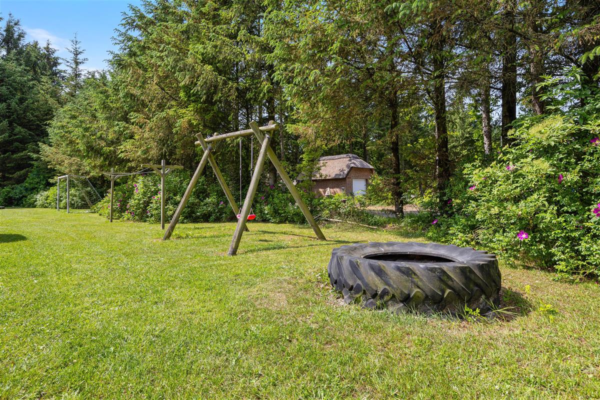Zum Ferienhaus gehört ein großzügiges Grundstück von 4039 m², dass viel Platz für Aktivitäten im Freien bietet. Ihr habt eine geschlossene Terrasse, auf der ihr euch entspannt zurücklehnen könnt, da hier keiner allein auf Entdeckungsreise gehen kann. Eine offene Terrasse lädt ebenfalls zum Verweilen ein. Ein Grill sorgt dafür, dass köstliche Barbecue-Abende in diesem schönen Garten Realität werden. Gartenmöbel stehen bereit, um herrliche Sonnenstunden oder lauschige Abende zu verbringen. Eine Schaukel und ein Trampolin lassen die Herzen der jüngeren Gäste höherschlagen.
