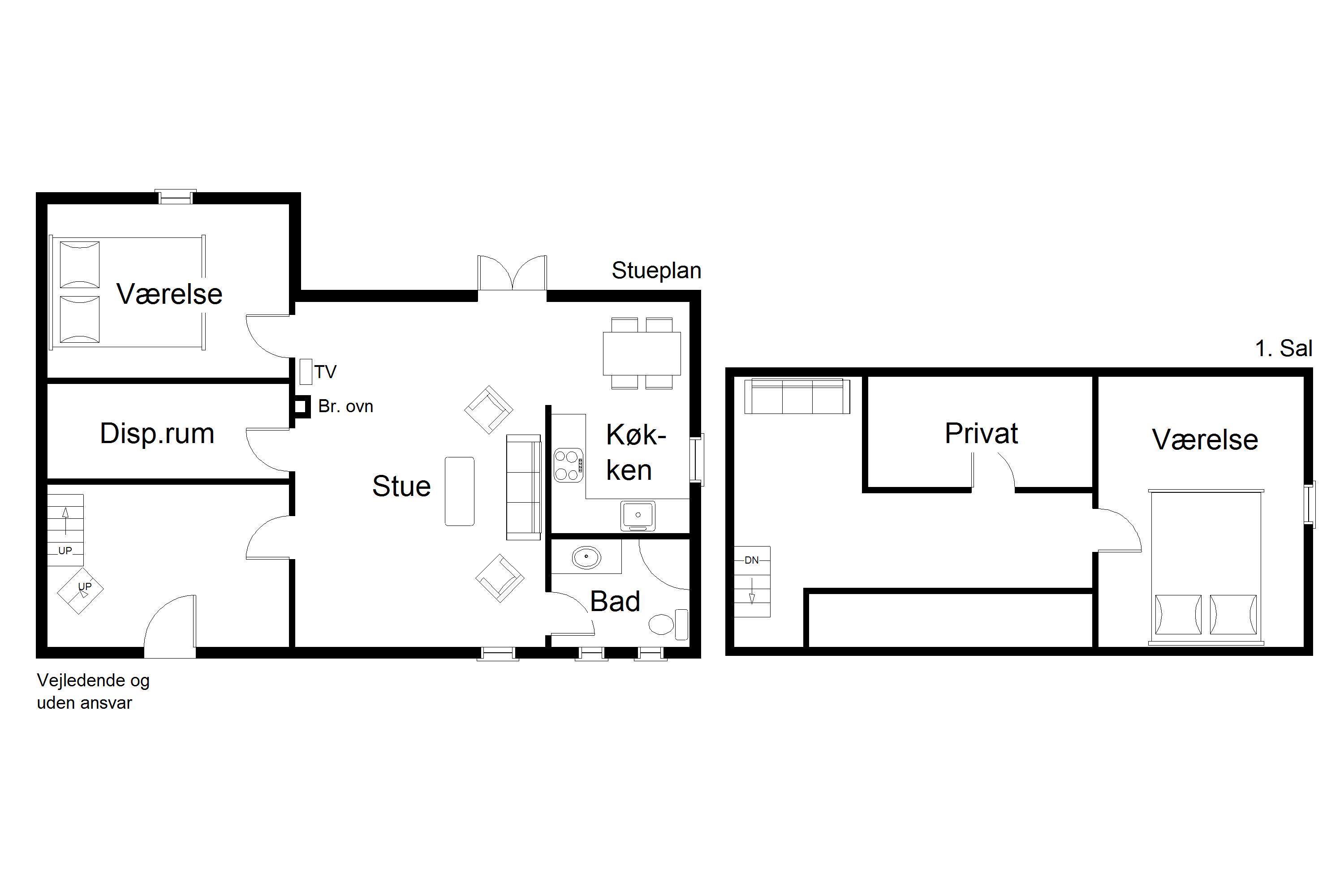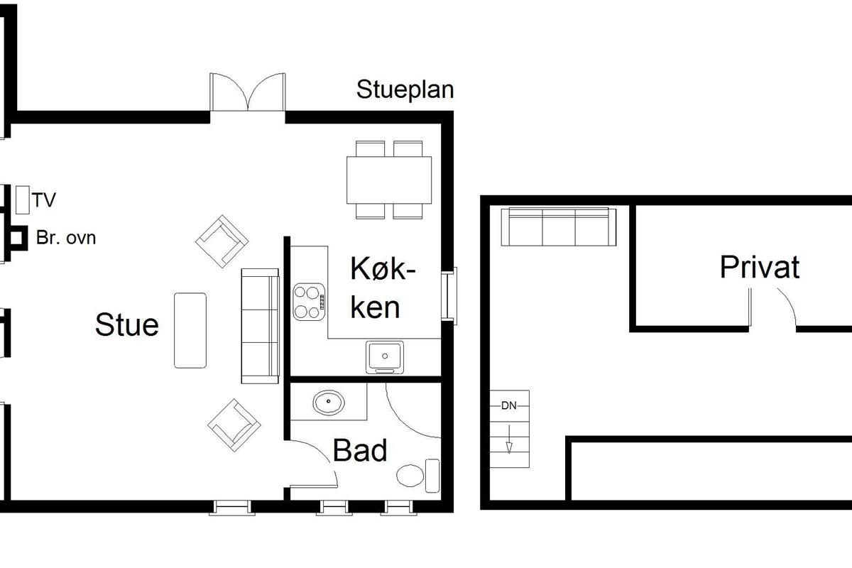 Layout: Entrance hallway. Living/dining room with open kitchen and beautiful fireplace and large TV. From here you can access the beautiful south-facing terrace. A total of 2 double bedrooms: one on the ground floor and one on the 1st floor. Bright, functional bathroom with shower cubicle.