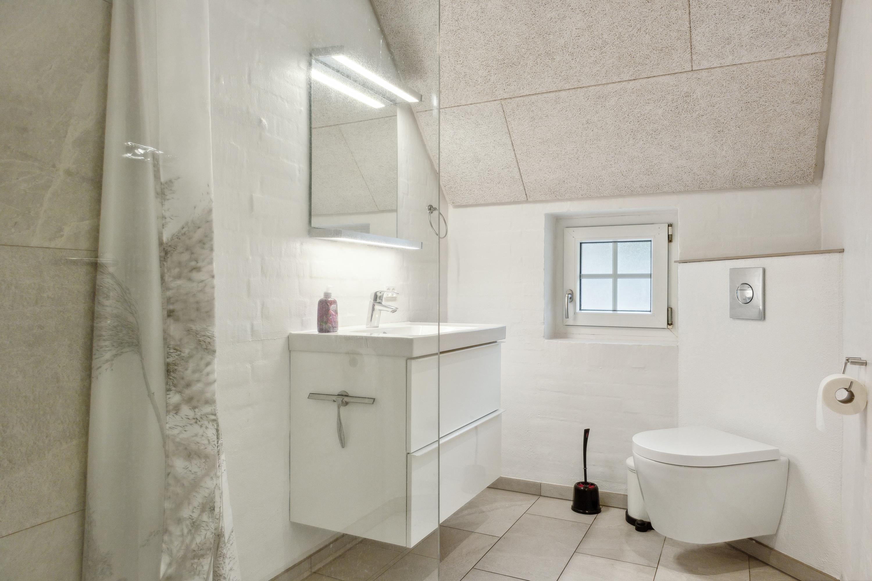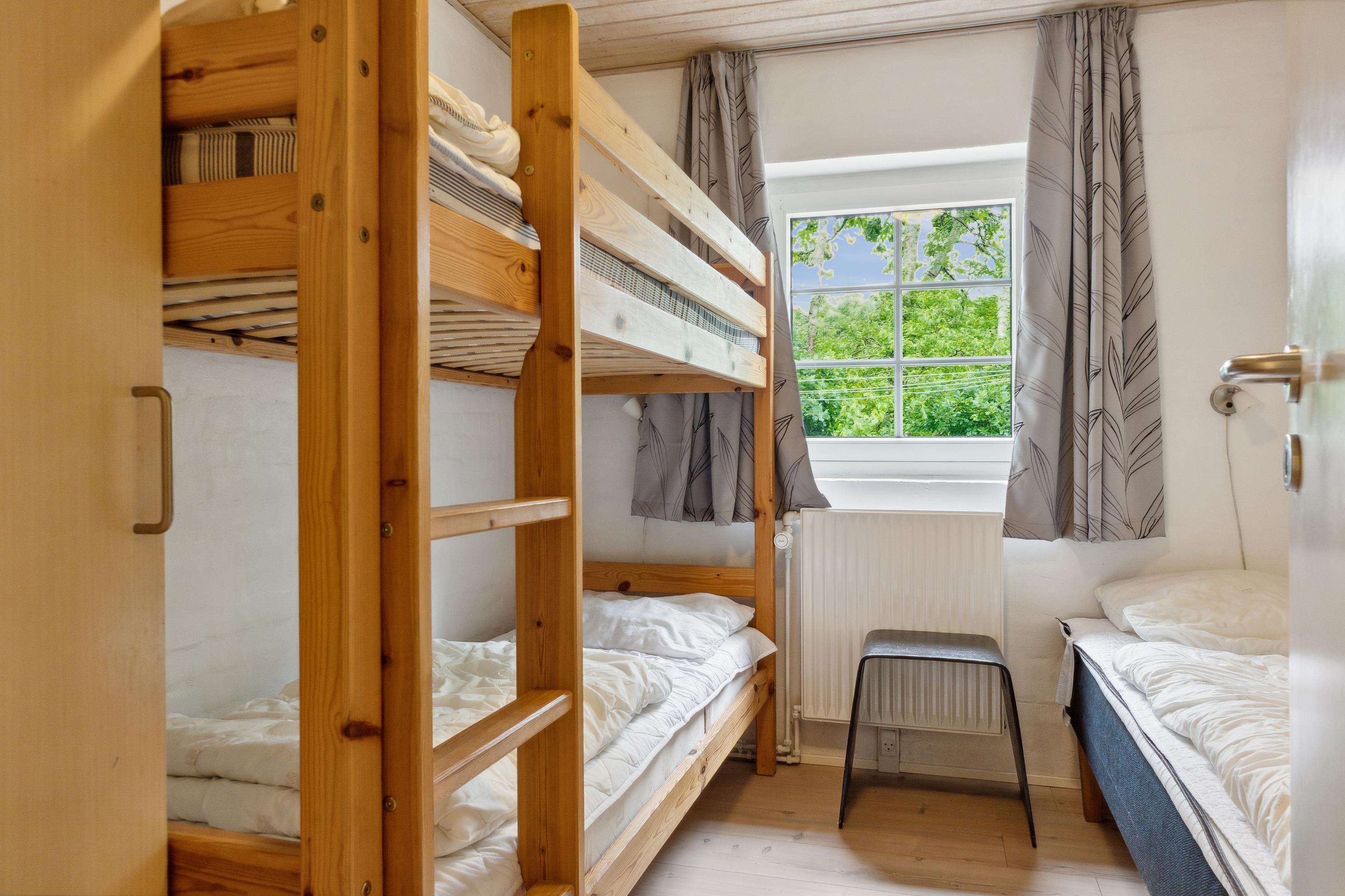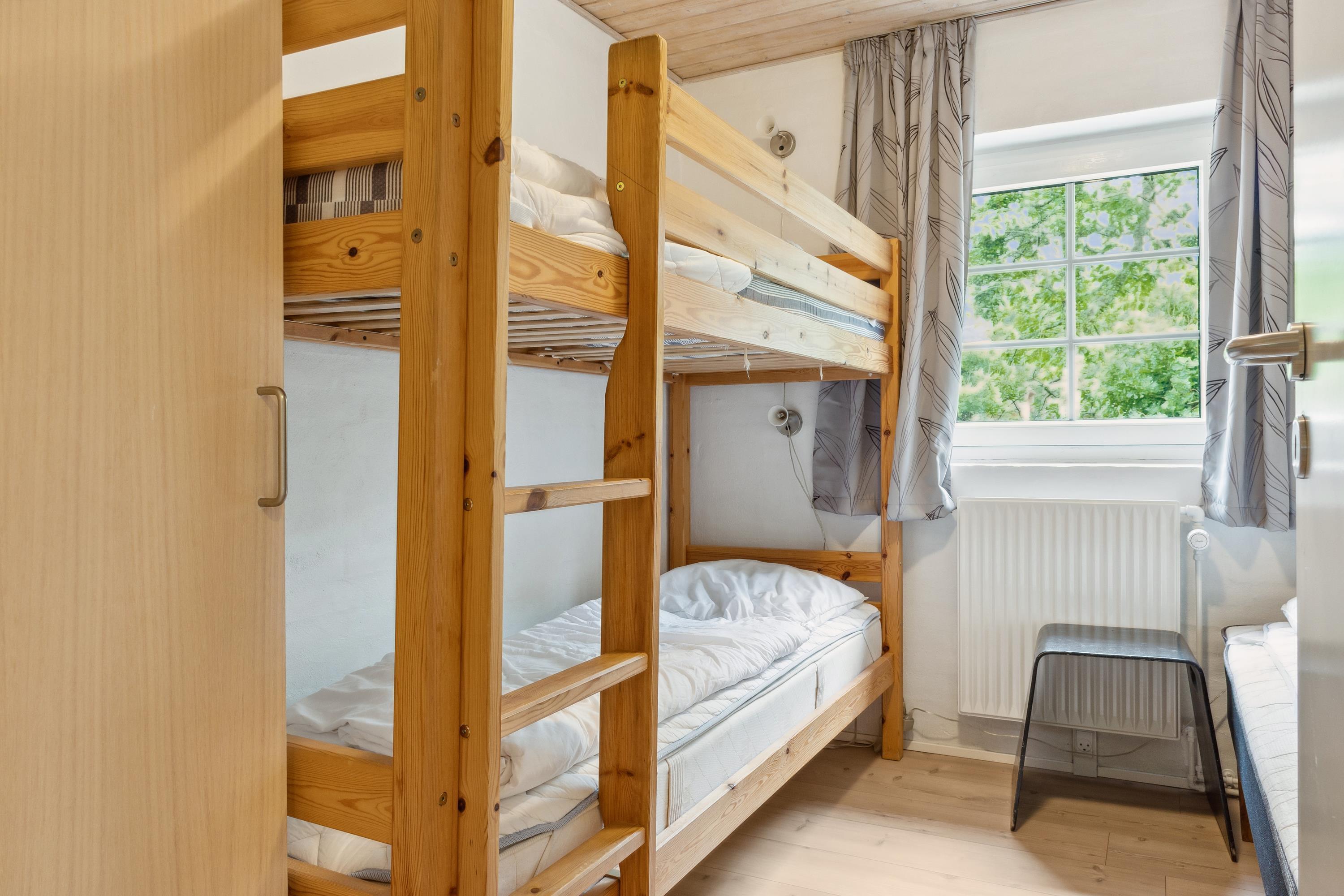 The house is perfect for two large families because it has two separate wings with their own sleeping areas. Each section has three rooms, two with a double bed each and one with a bunk bed plus a single bed. In all rooms you have plenty of storage space and closet space. In both departments there are beautifully renovated bathrooms with showers and underfloor heating. The heart of the house is the living room. With the large dining table, a good fireplace and a nice sofa group with TV, there is plenty of space and hygge for everyone. There is also direct access to the well-equipped, open-plan kitchen and terrace. In the spacious entrance hallway you have plenty of space for jackets, sports equipment and shoes and in the small utility room you will find a washing machine and dryer.