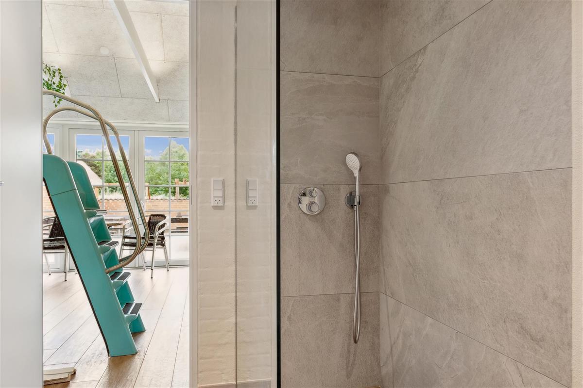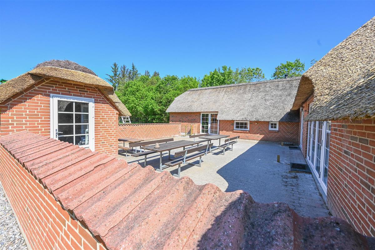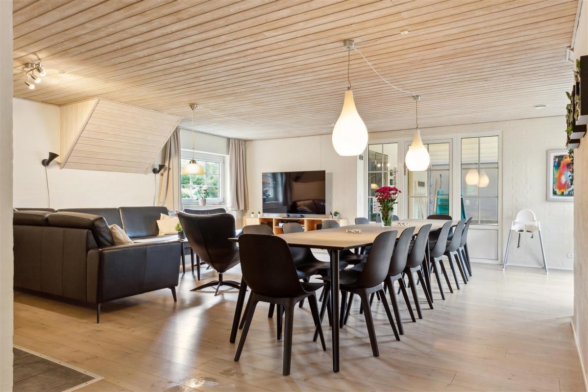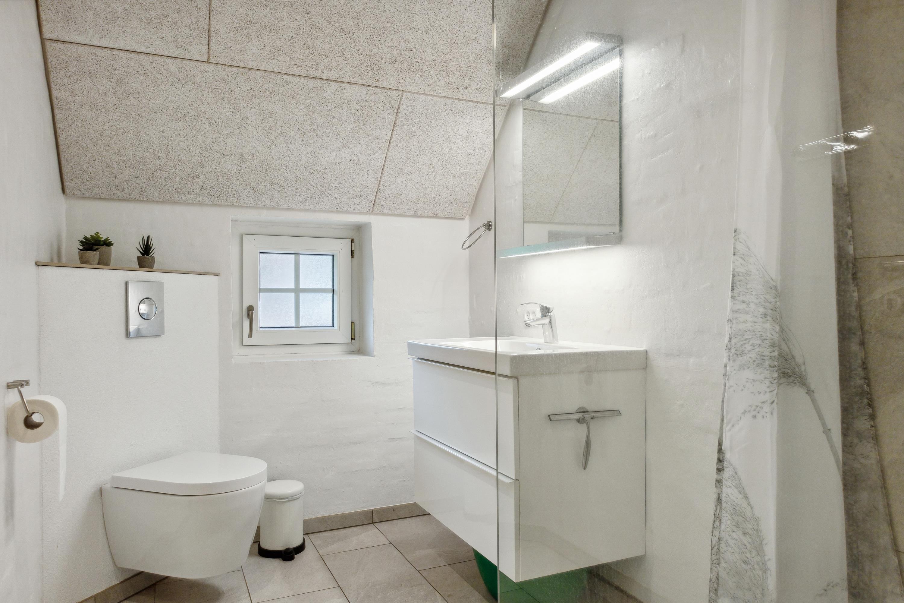 The house is perfect for two large families because it has two separate wings with their own sleeping areas. Each section has three rooms, two with a double bed each and one with a bunk bed plus a single bed. In all rooms you have plenty of storage space and closet space. In both departments there are beautifully renovated bathrooms with showers and underfloor heating. The heart of the house is the living room. With the large dining table, a good fireplace and a nice sofa group with TV, there is plenty of space and hygge for everyone. There is also direct access to the well-equipped, open-plan kitchen and terrace. In the spacious entrance hallway you have plenty of space for jackets, sports equipment and shoes and in the small utility room you will find a washing machine and dryer.
