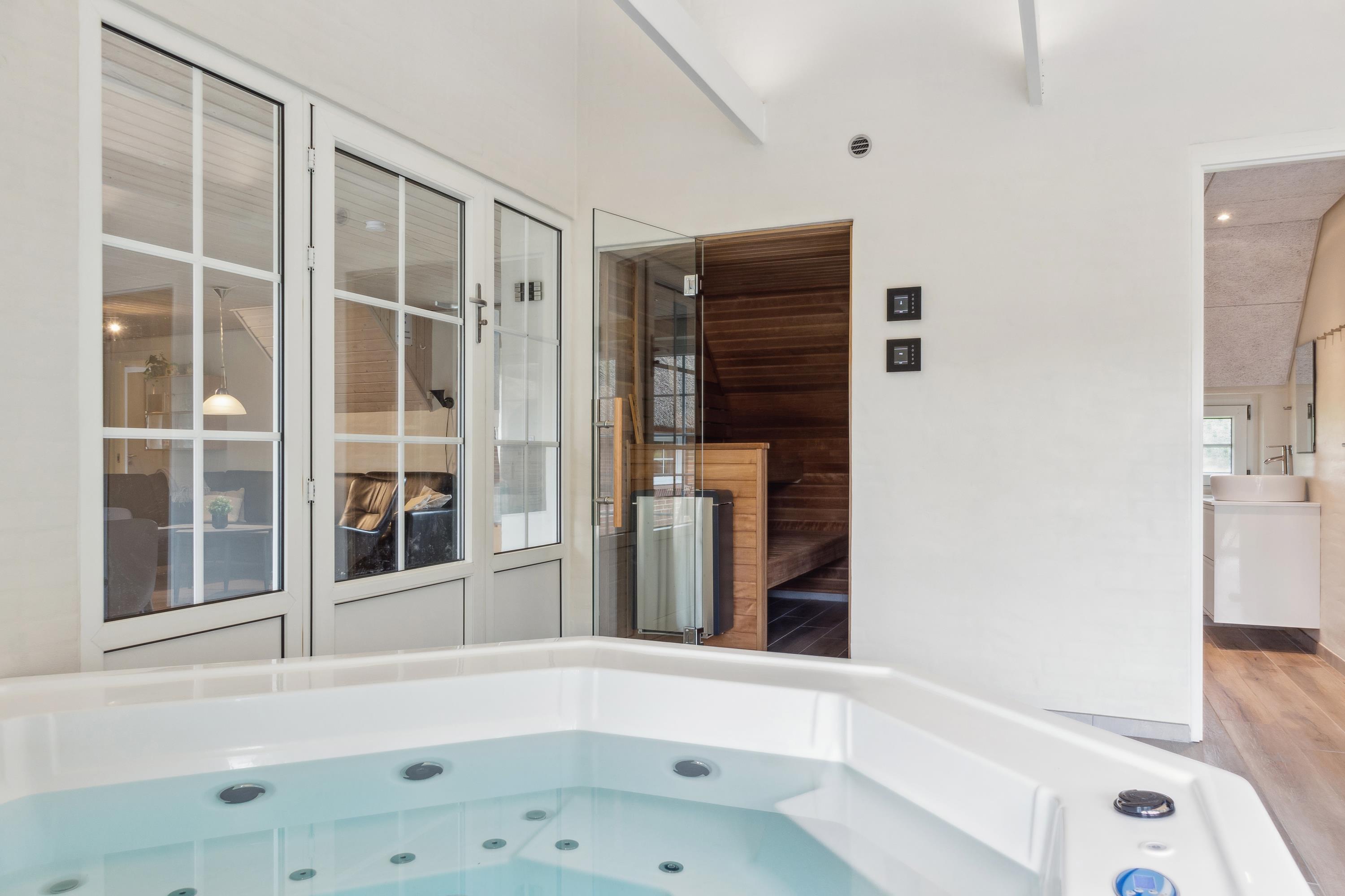 Perfect for a family celebration "with everyone" or for two families of friends who want to have a relaxing holiday with a focus on wellness. Infrared sauna – with respiratory-friendly Himalayan salt stone, Finnish sauna, saltwater swimming pool with slide, counter-current system, and large whirlpool.