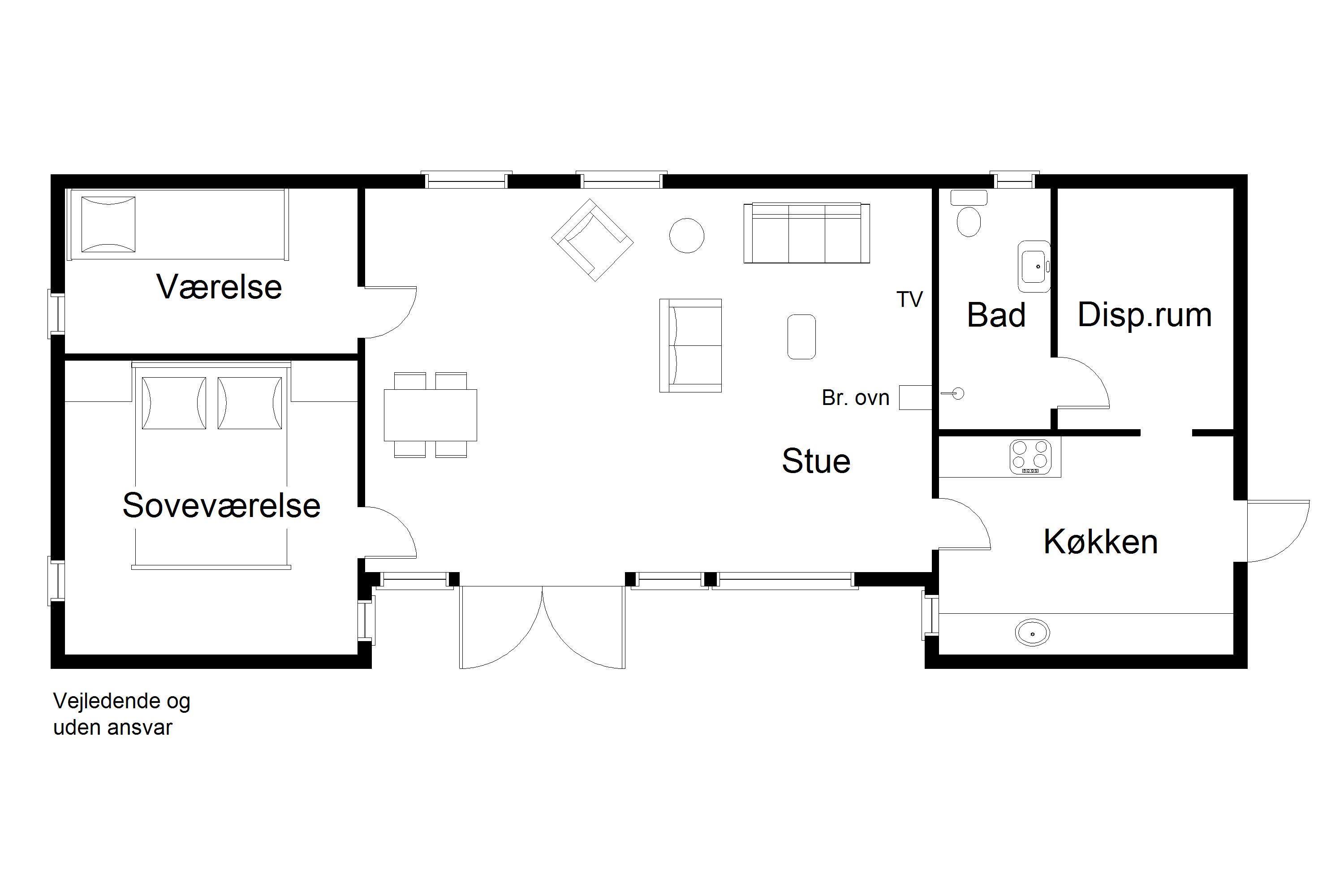 Layout: Cosy living/dining room with exposed roof beams, wooden floor and good fireplace. A total of 2 bedrooms: one with a double bed, one with a single bed. Functionally furnished, nice kitchen, bathroom with shower niche.