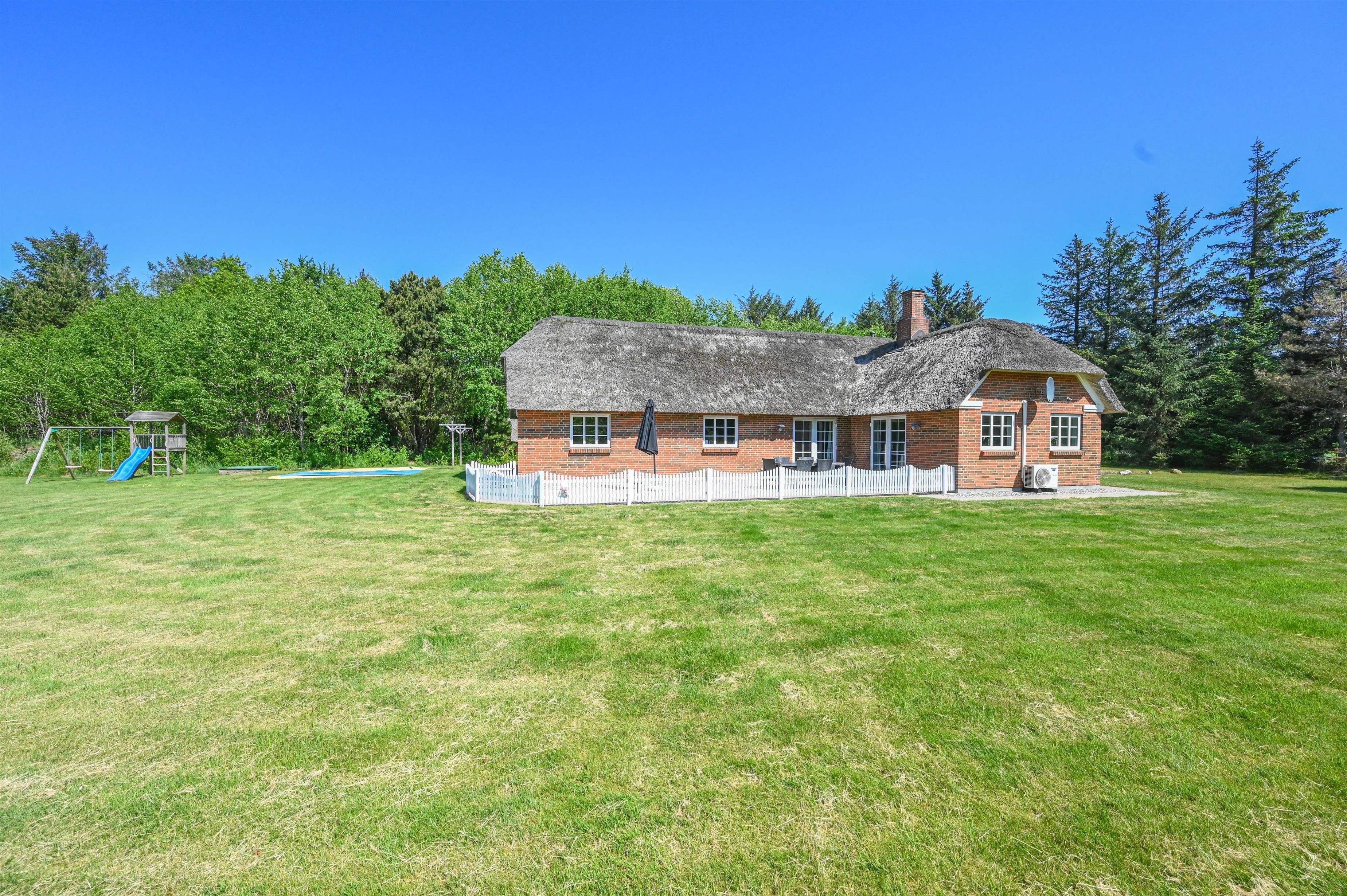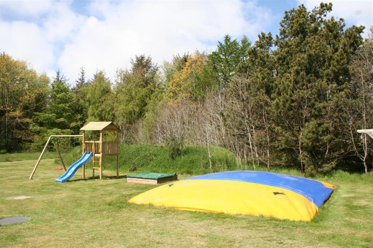 You have plenty of space here. Your holiday home has a living space of 124 square metres and is located on a spacious, 7,800 square metre large, partly natural property. The beautiful terraces are partially fenced and the undisturbed garden is a paradise for children and adults. Here everyone romps and plays together. A huge bouncy cushion, 2 football goals, a sandpit and a play tower with slide and swings are waiting for you.