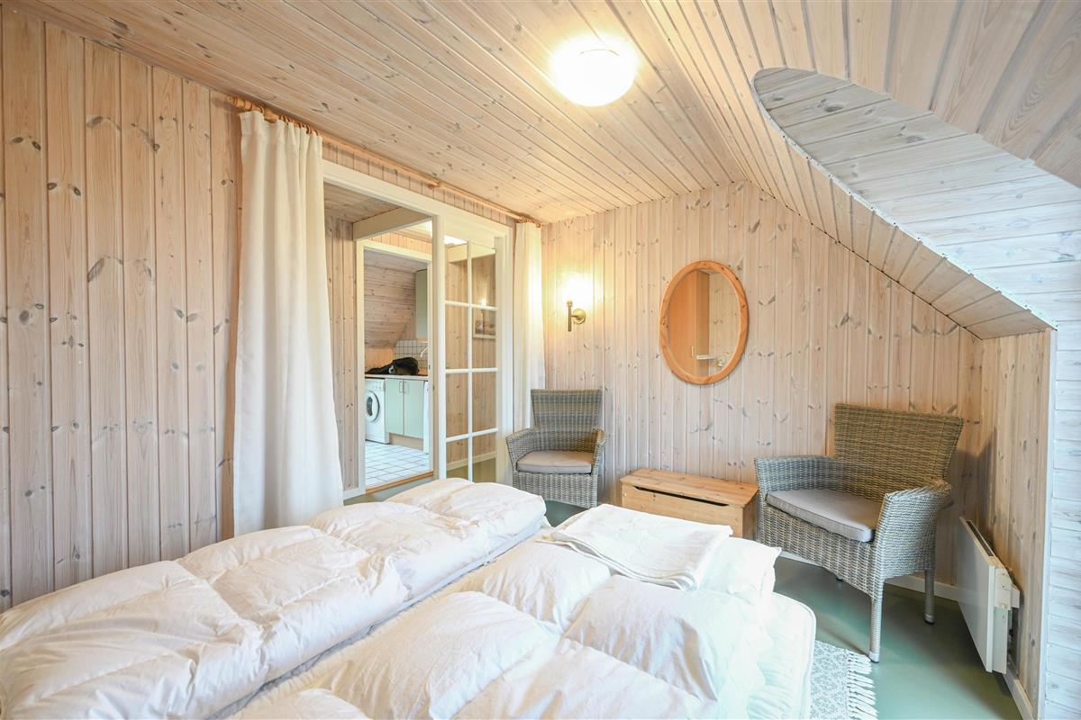 Layout: Large entrance area / utility room. Cosy living room with lots of wood, open kitchen and beautiful fireplace integrated into the wall. A total of 3 bedrooms, two with double bed and one with 2 single beds. There is an extra playroom for the children. Nice bathroom with shower and underfloor heating.